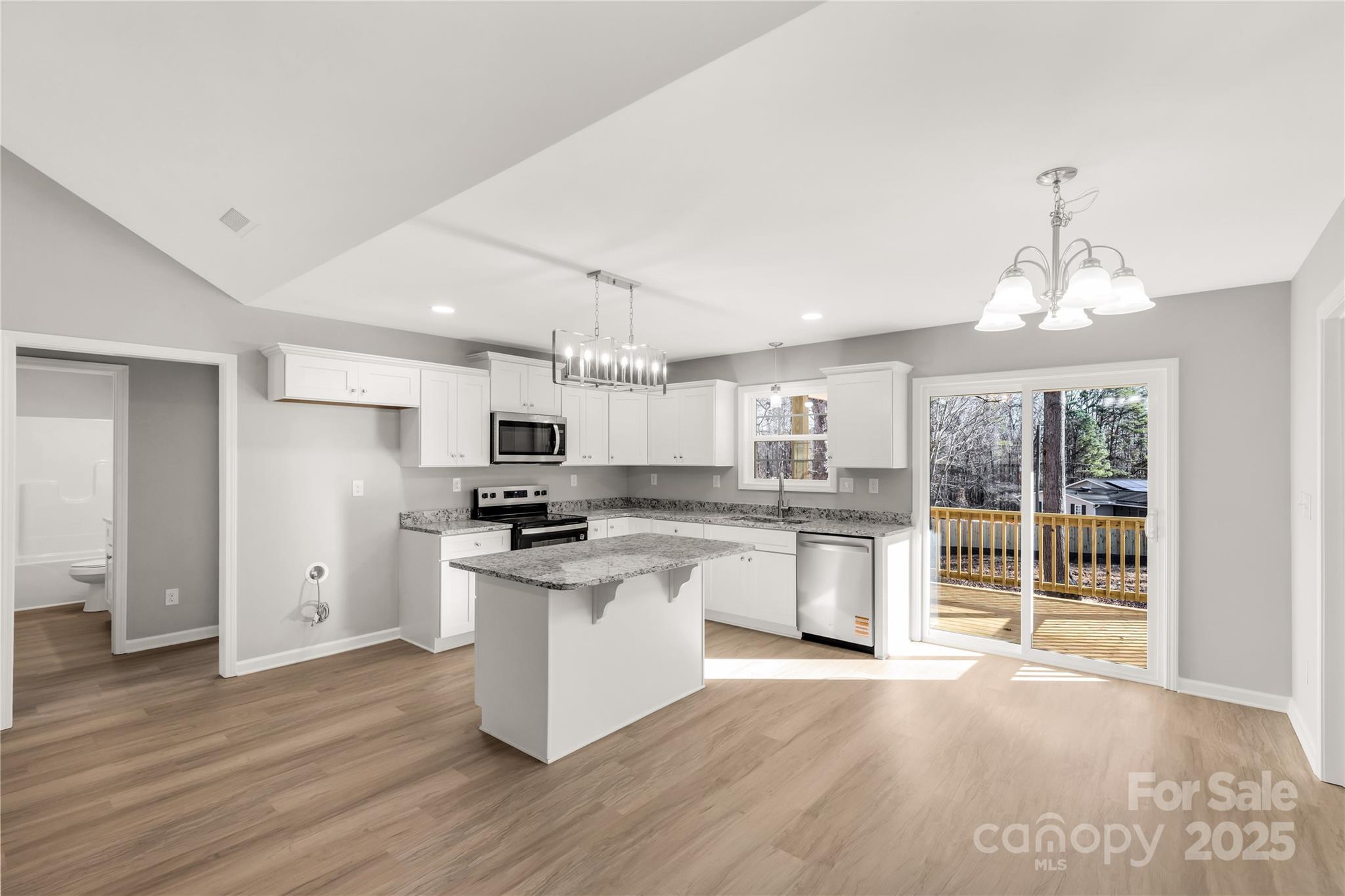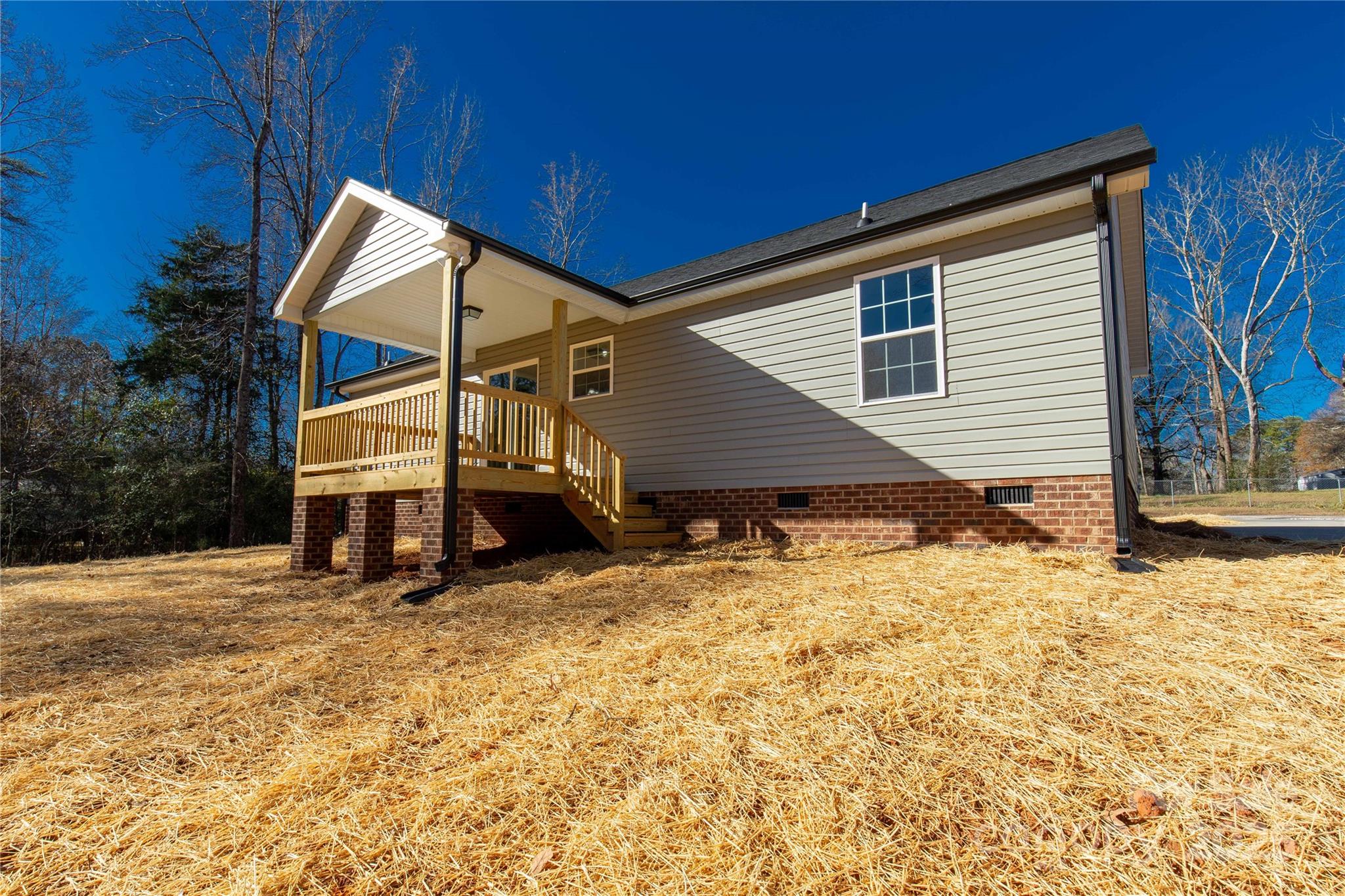 This thoughtfully designed new home blends modern style with comfortable, everyday living. Featuring a smart split-bedroom floor plan, it offers three bedrooms and two full baths, providing both shared living space and private retreats. The primary suite is privately positioned and includes a well-designed en-suite bath and a spacious walk-in closet. The open-concept living area creates a natural flow, with a bright living room that connects seamlessly to a contemporary kitchen highlighted by white cabinetry and granite countertops. A separate laundry room with extra storage adds convenience and functionality. Outdoor spaces include a welcoming front porch and a covered rear deck—ideal for relaxing or entertaining. This home delivers a balanced combination of style, comfort, and practicality. It is an excellent opportunity to enjoy a beautifully built home designed for modern living.
