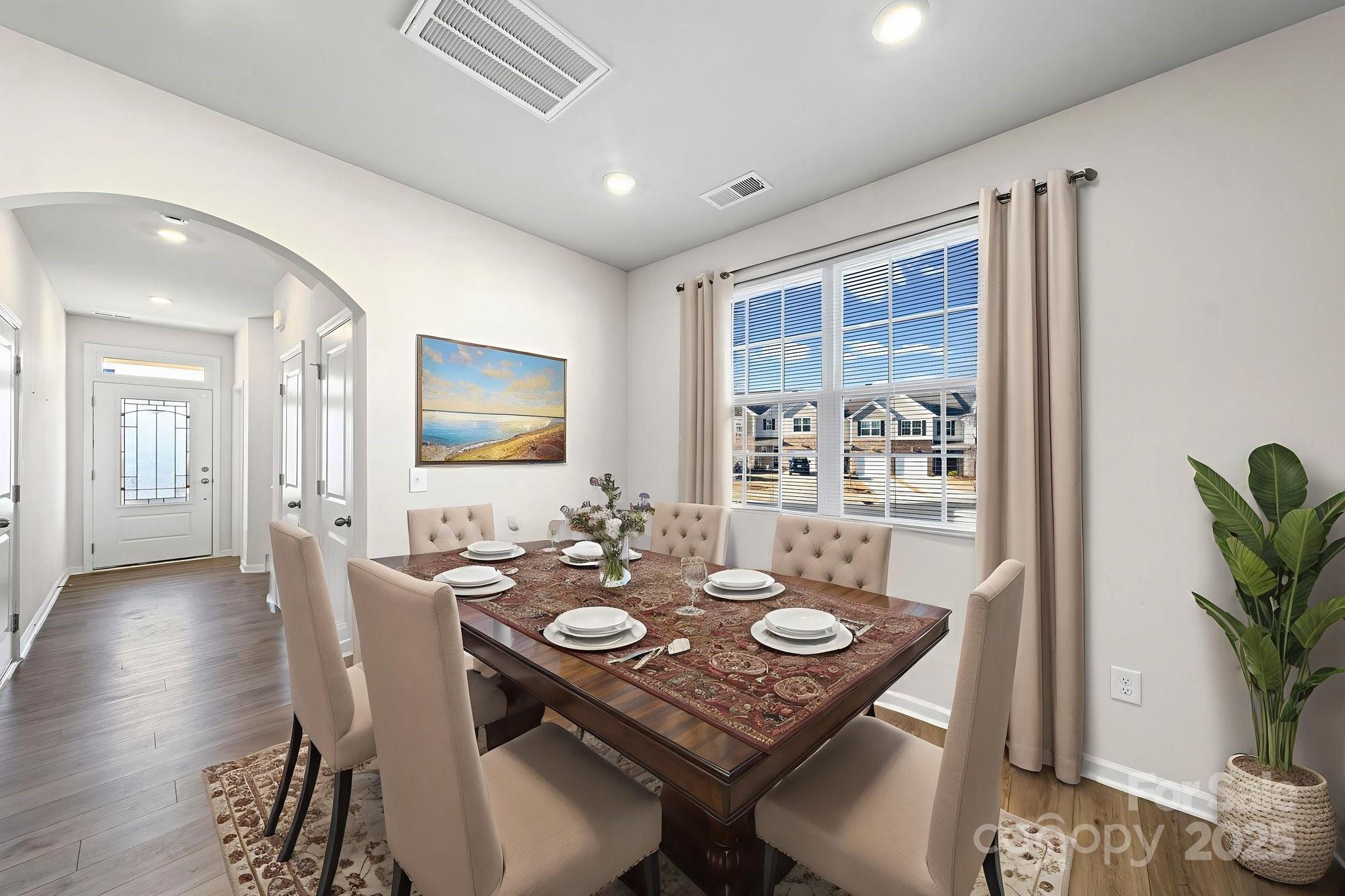 Tucked at the end of Moss Pine Way where it meets Everly Commons, this true corner end-unit townhome offers something most townhomes simply don’t—space, quiet, and privacy.