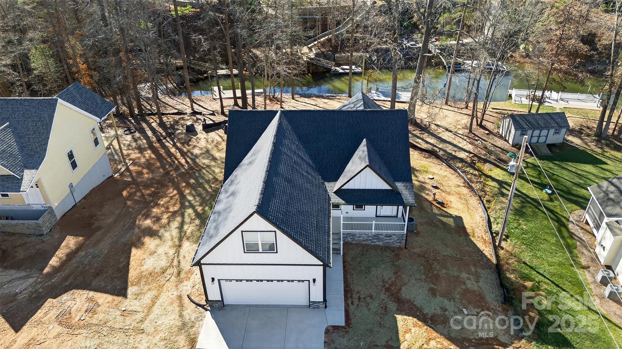 Stunning new construction waterfront home on Lake Norman featuring a private floating pier. Located in desirable Sherrills Ford, just minutes from shopping and dining, this 3-bedroom, 2.5-bath home offers an open-concept kitchen and living area designed for modern lake living. The upper-level bonus room provides flexible living or entertainment space. The walkout finished basement features sliding glass doors, a spacious living room area, bar, and flex room ideal for a home office, gym, or guest space. Enjoy peaceful lake views from the screened porch and expansive deck overlooking the water. The backyard offers room to add a swimming pool. No restrictions, making this property ideal for investors or buyers seeking a vacation rental opportunity. A 2-car garage completes this exceptional waterfront home.
