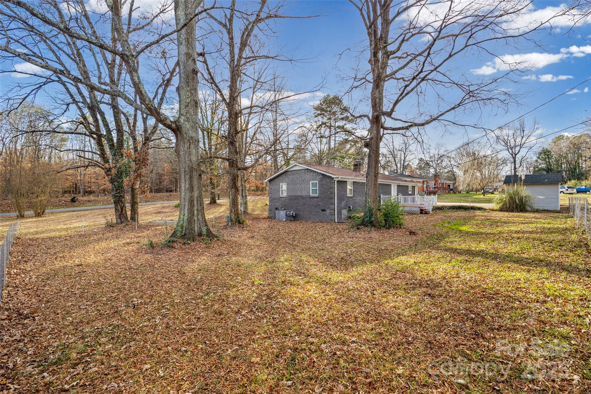 Nestled in a wooded backdrop with a generous lot (.65 acres) and a fenced yard, this updated ranch home is the perfect combination of modern finishes and charm! You are welcomed by the covered front porch, into an open and light-filled floor plan. Solid surface flooring runs throughout the home (no carpet), and the paint is a fresh coat of neutral! The kitchen boasts quartz counters, a large walk-in pantry, stainless steel appliances, and enough space for an oversized kitchen dining area. The primary suite has a stunning walk-in tiled shower with large niche, rain showerhead, and plenty of closet space. All bedrooms have overhead fans, and the home has designer lighting throughout. Another bedroom also has an ensuite remodeled half bath for convenience, and the additional full bathroom has a modern vanity and tiled shower/tub combo. Retreat to the backyard and enjoy a cup of coffee or unwind at the end of the day on the deck with the treed backdrop. Outside you'll also find a storage shed (approx 10x11'), and ample parking. This community has easy access to the Charlotte Douglas International Airport and uptown Charlotte, and is in close proximity to the Charlotte Premium Outlets and convenient to tons of shopping and restaurants - Welcome Home!