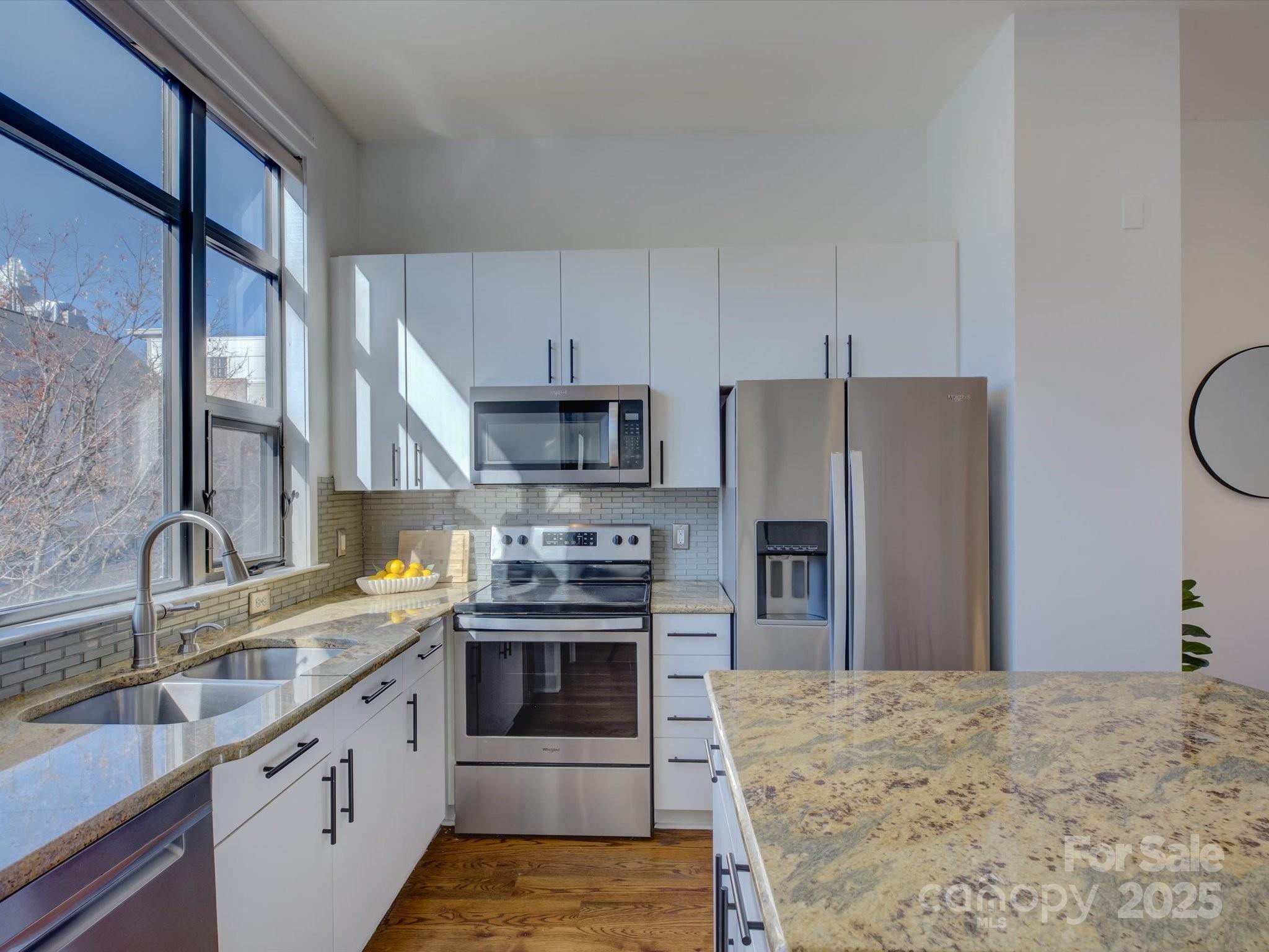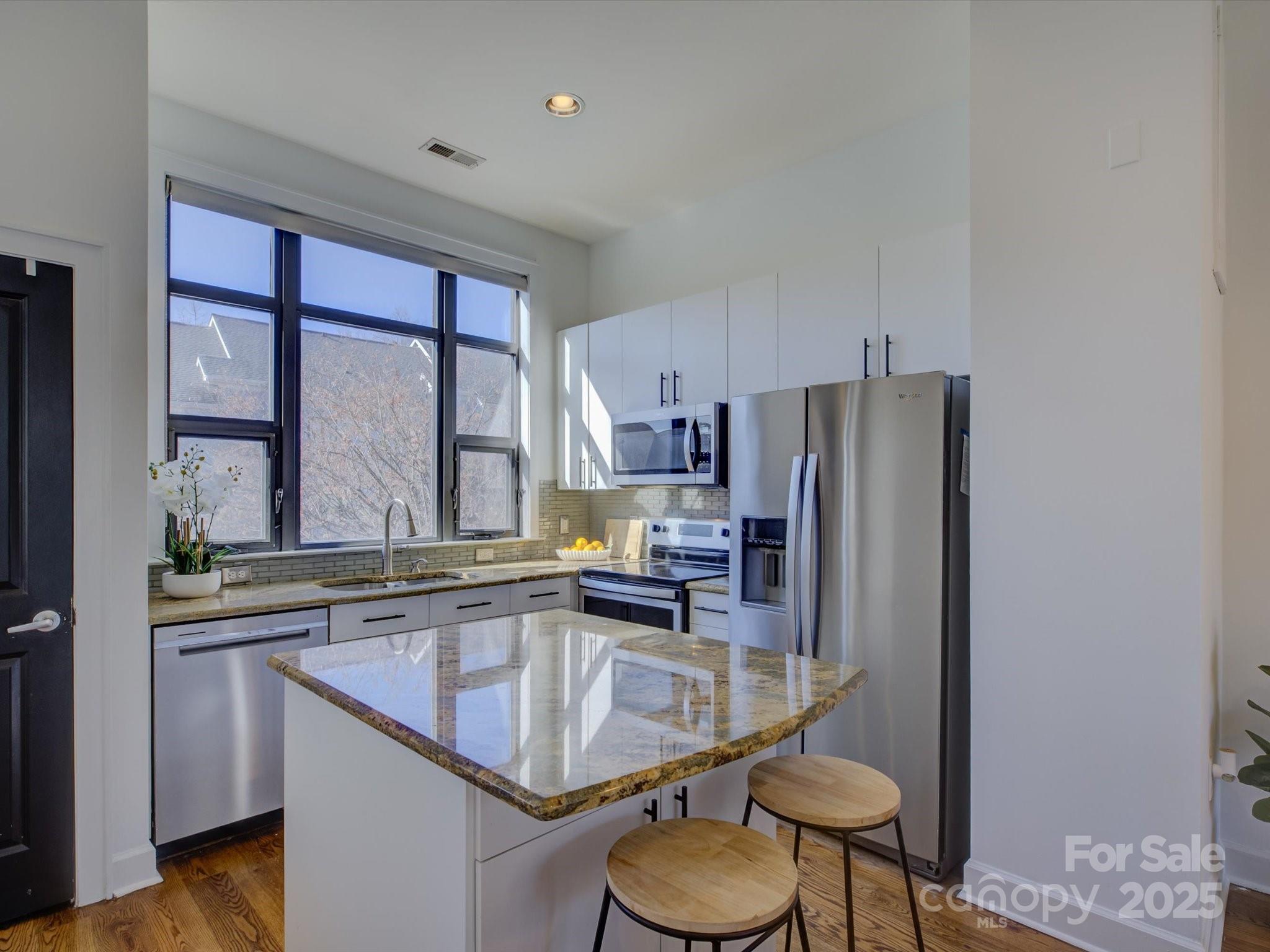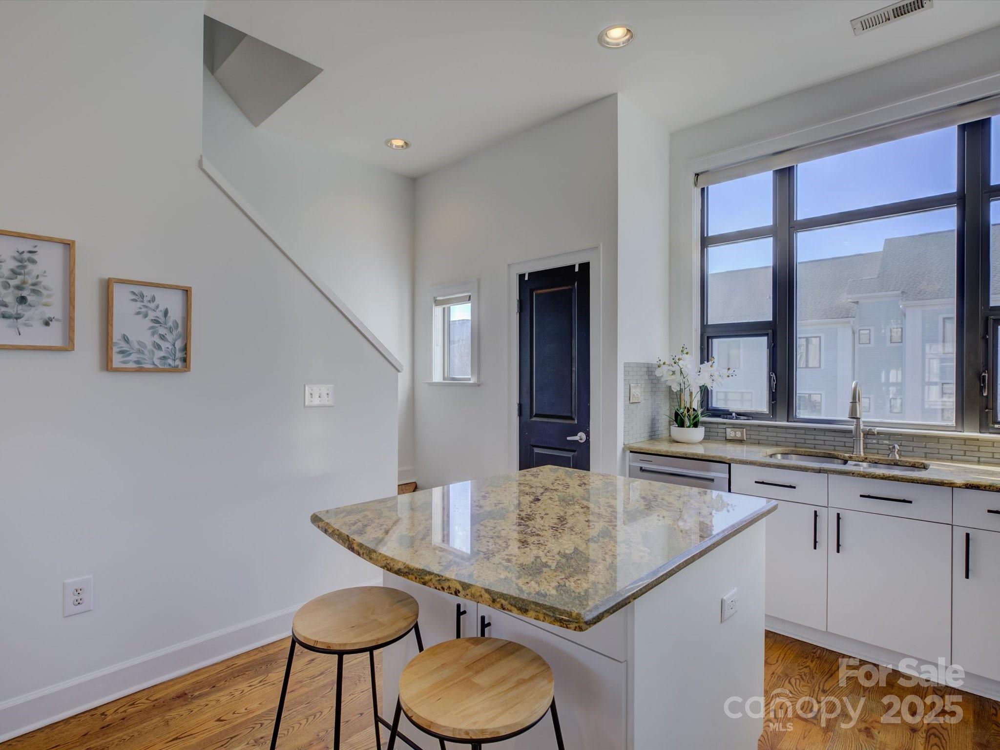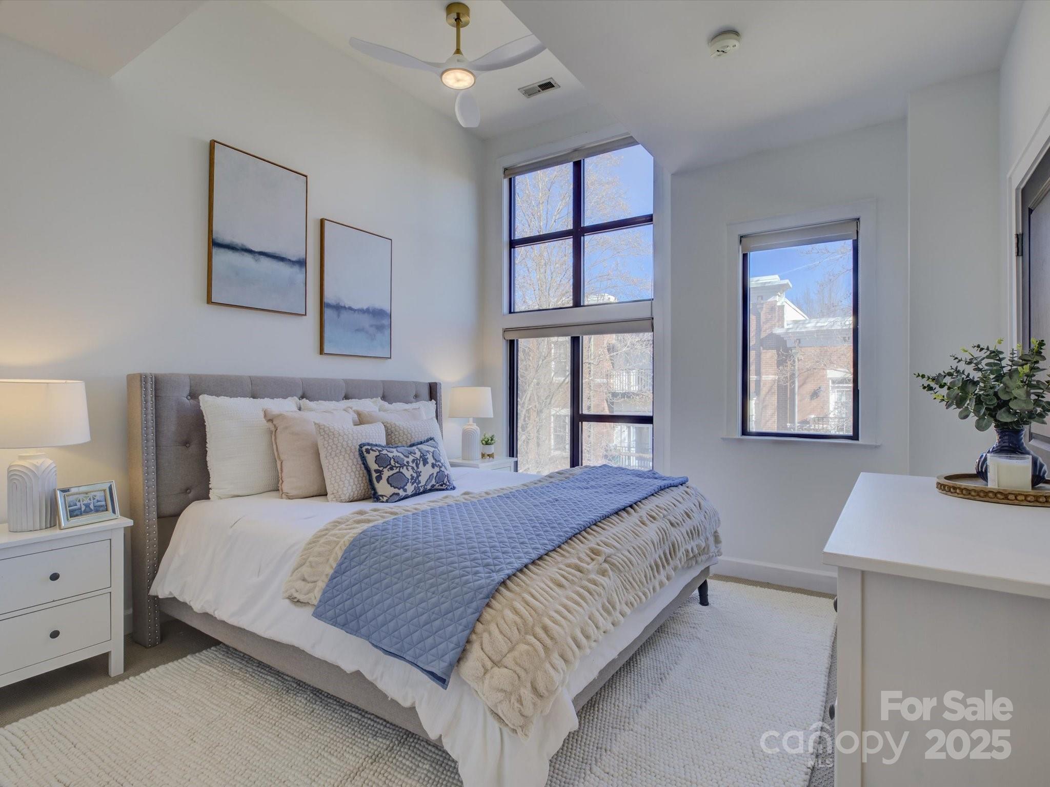 Light, bright, and beautiful uptown easy living in the heart of Charlotte! Prime First Ward location offering the neighborhood feel, yet so close to trendy restaurants, cafes, breweries, shopping, professional sports games, concerts, and more! Just blocks from the Light Rail, greenway, Elizabeth, and Midwood! This spacious walk up condo is truly a lock and leave opportunity. Move-in ready with fresh interior paint, a lovely updated kitchen including newer stainless steel appliances with en trend countertops & backsplash, high ceilings, and newer fixtures! This modern, open floor plan is fantastic for entertaining and features flexible living options. The oversized upper level primary bedroom has an additional flex space/bonus room with it's own closet (currently shown as a nursery). The lower level boasts a separate bedroom with another full bath, as well as a study, work out area, or second living space! Great sought-after private outdoor patio space! Awesome 2024 Trane HVAC and roof replaced by the HOA in 2021! You will be impressed!