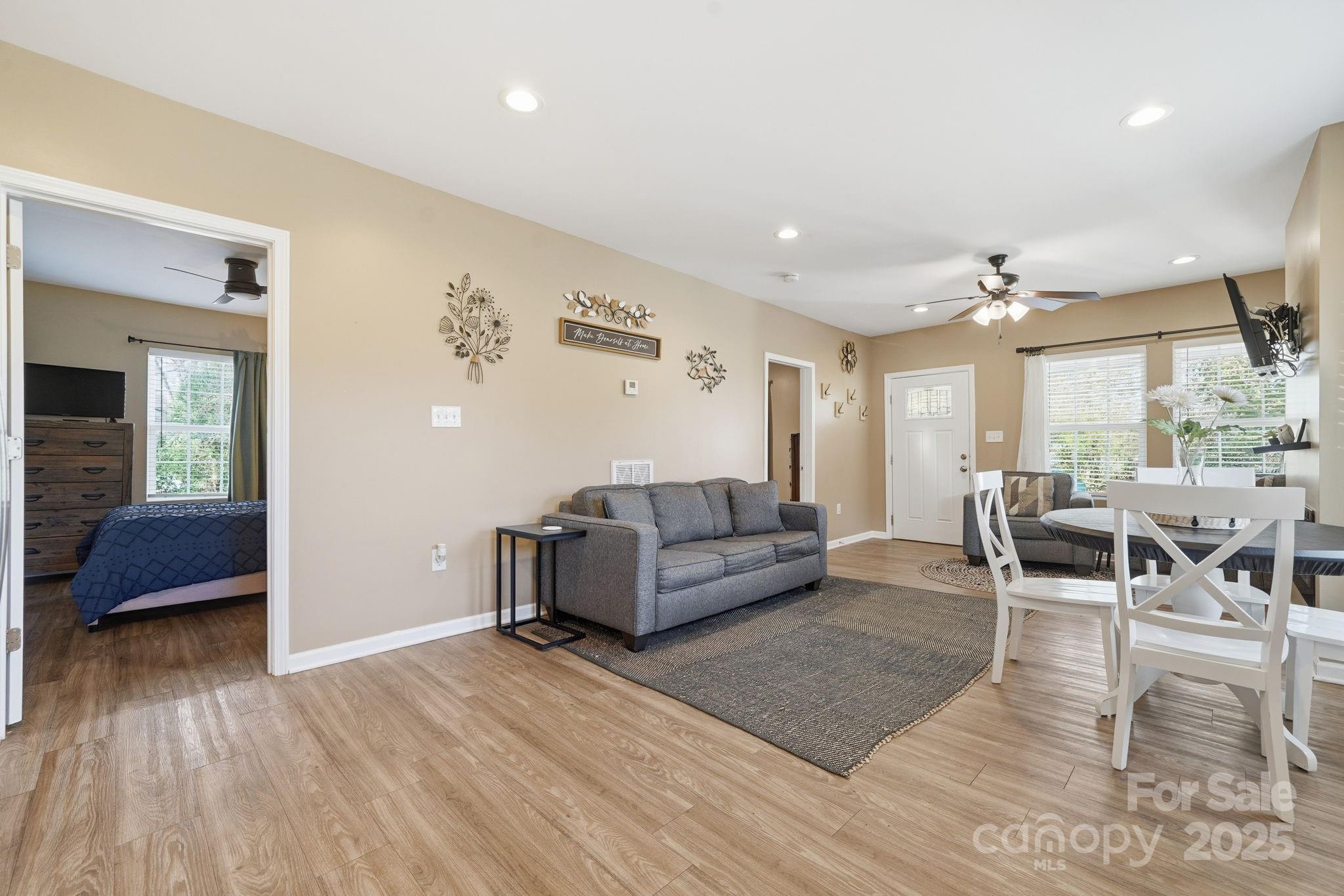 Welcome home to this beautifully updated ranch in lovely Belmont, NC! Ideally located just minutes from Belmont Abbey College and beloved local spots such as The String Bean, Sammy’s Pub, Stowe Park, and the historic Belmont Downtown District. Spend weekends browsing charming boutiques and breweries, strolling through the stunning Daniel Stowe Botanical Garden, or catching a show at the Belmont Abbey Amphitheater or Trail Race Marina—there’s always something nearby to enjoy. Relax on the inviting rocking chair front porch before stepping inside to an open-concept layout where the living and dining areas flow seamlessly into the kitchen. Stylish LVP flooring runs throughout, and the beautifully updated kitchen features quartz countertops, a tile backsplash, and stainless steel appliances—perfect for cooking and entertaining. The home offers three generously sized bedrooms, all with ceiling fans, and two fully updated bathrooms. Outside, enjoy a spacious wooded lot that provides both privacy and versatility. Conveniently located just a short drive from Charlotte Douglas International Airport and Uptown Charlotte’s endless dining, sports, and entertainment options, this home delivers the perfect blend of comfort, accessibility, and lifestyle. With modern upgrades, a desirable location, and move-in-ready condition, this property is also a fantastic investment opportunity in one of the Charlotte metro area’s most sought-after communities.