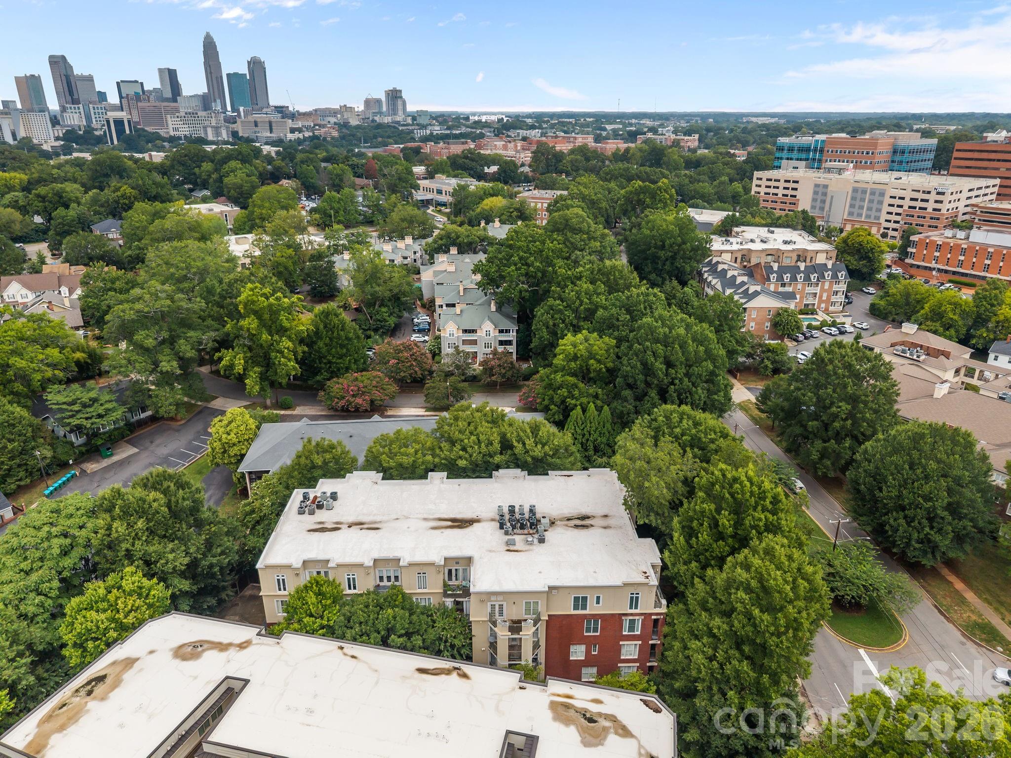 Charming 2 bedroom top story unit on Queens Road in the heart of the sought-after Myers Park neighborhood! Very close proximity to renowned hospitals and easy commute to Uptown! Hardwood floors in main living area crown molding, fireplace w/gas logs, half bath on main, updated kitchen with stainless appliances, Two private outdoor terraces—one on each floor (one off the Primary BR and the other off the LR), Vinyl Plank style flooring added in hall and in bedrooms on 2nd level. The primary bedroom boasts a walk-in closet, en-suite bathroom. Secure gated garage parking with rare 2 assigned spaces for unit 19 , storage closet, secured building with elevator, …Fantastic location with abundant dining and entertainment options , with theaters, parks, and cultural attractions.