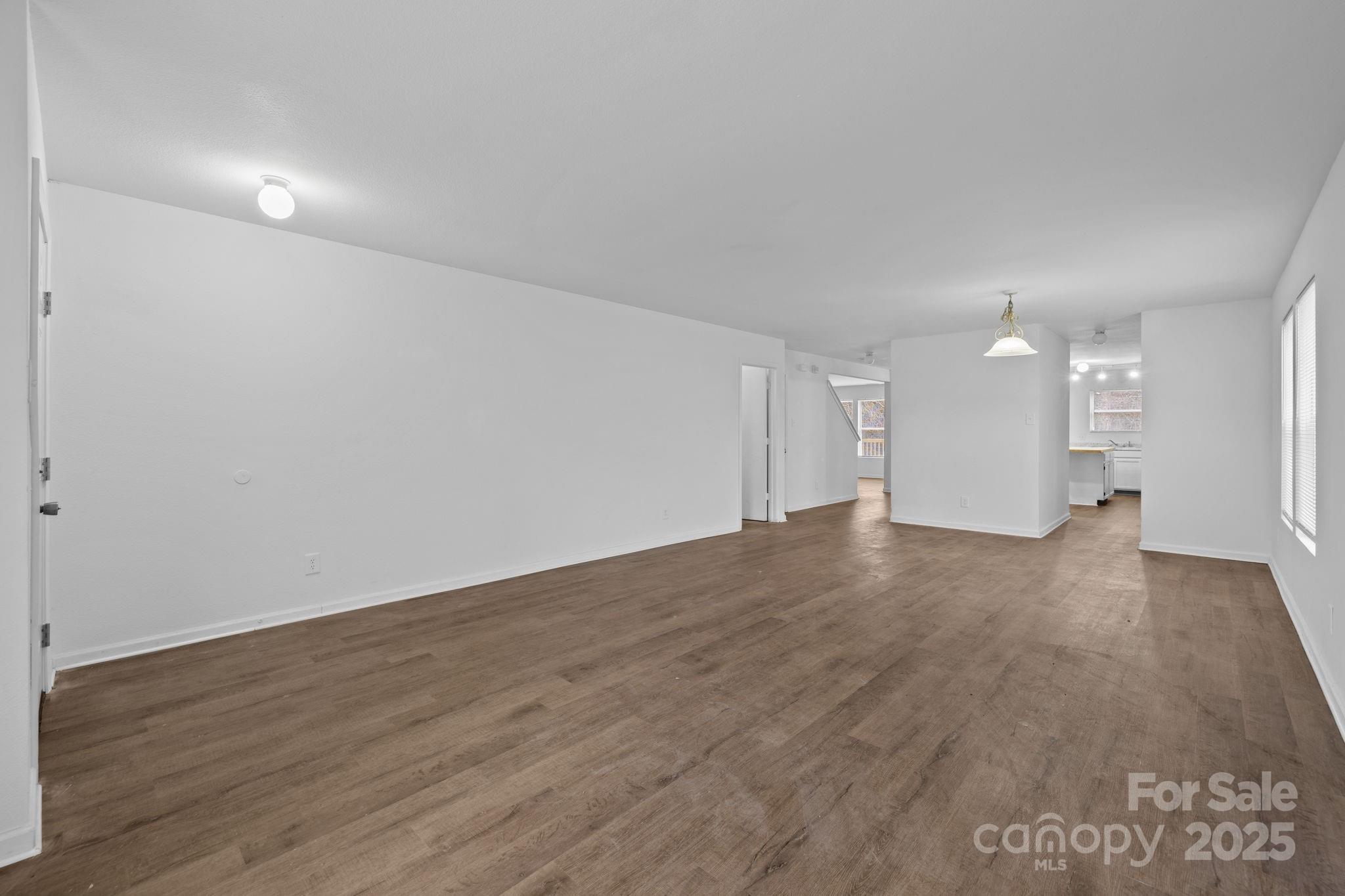 The main level features vinyl flooring throughout and includes a living room, dining room, and a spacious family room with a gas log fireplace. The kitchen offers ample cabinet space and a pantry, with convenient access to the main living areas, making it ideal for everyday living and casual entertaining.