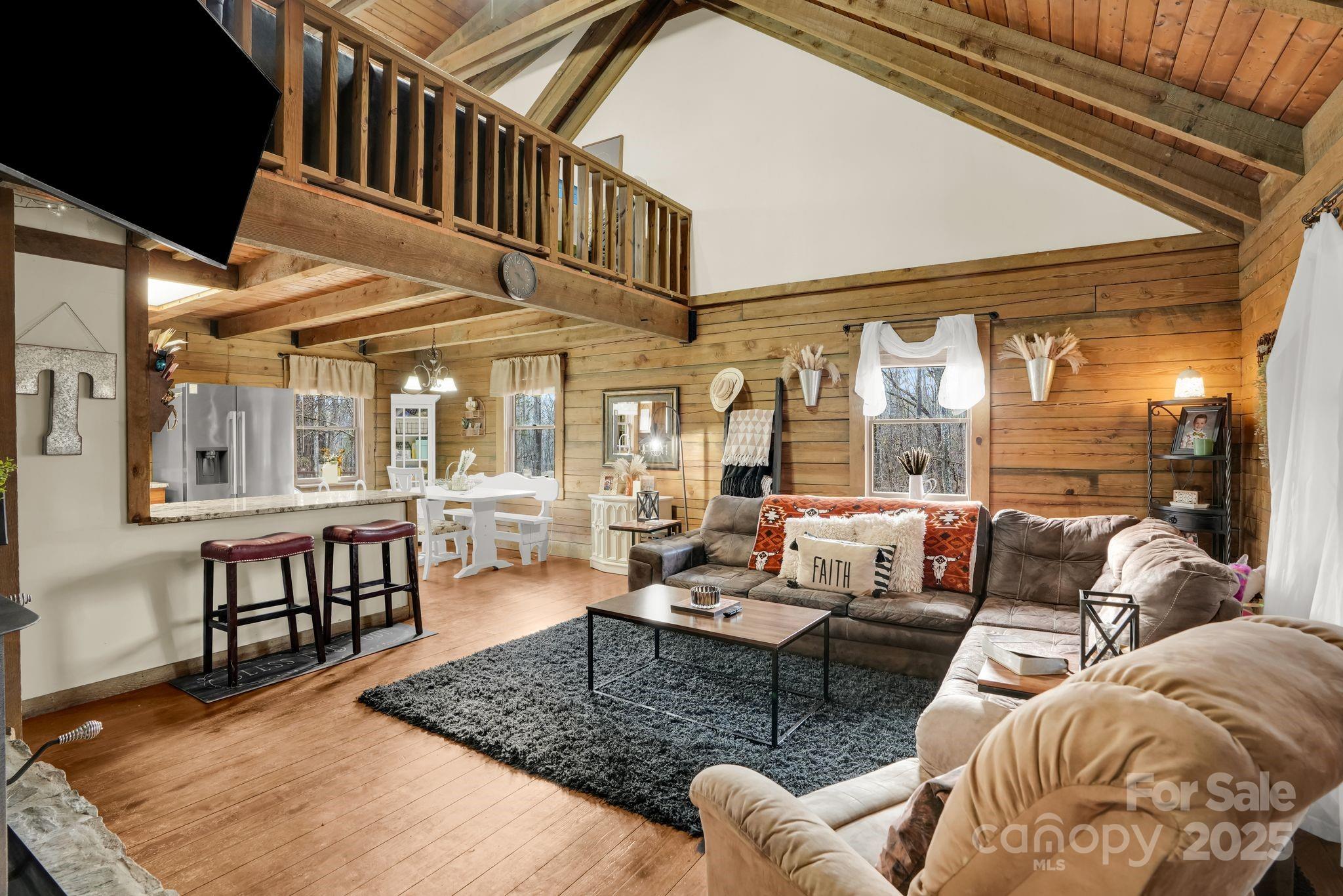 Welcome to your private retreat in the woods. Nestled on 10 picturesque acres with a peaceful creek, this stunning log cabin offers the perfect blend of rustic charm, privacy, and everyday comfort. Inside, you’ll find 3 bedrooms and 2 full bathrooms, with hardwood floors throughout the entire home and a breathtaking two-story stone fireplace that anchors the living space and creates a true lodge-style feel. Vaulted ceilings and an expansive loft/flex area provide endless possibilities—whether you need a home office, game room, or additional living space. Step outside and enjoy the quiet sounds of the running creek, wooded privacy, and ample space to explore, relax, or entertain.