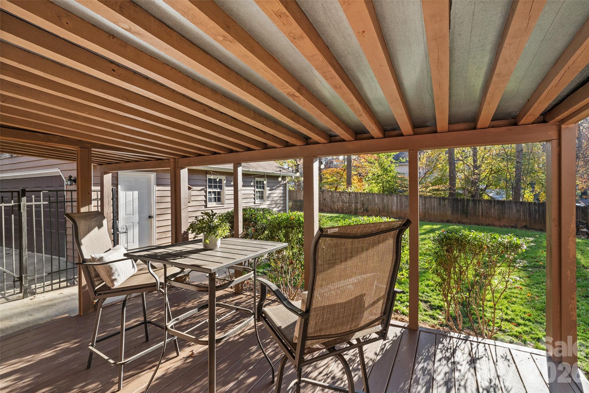 One of the home’s major upgrades is already complete with a BRAND-NEW ROOF, offering added peace of mind to its next owner! Tucked away in the quiet, tree-lined Bainbridge neighborhood, this well maintained home showcases a thoughtful blend of comfort, functionality, and style. The bright, open floor plan welcomes you with vaulted ceilings and classic column accents, creating a spacious main living area ideal for everyday living and easy entertaining. Just off the living room, the dining area features built-in cabinetry, perfect for storing serve ware or displaying decor - adding both charm and practical storage. The kitchen includes warm wood cabinetry, stainless steel appliances, and a clear view of the fully fenced backyard. A side entrance off the kitchen doubles as a mudroom and pantry, providing extra storage and a great drop zone space for daily use. The primary suite includes a walk-in closet and an ensuite bath with dual vanities and a tiled shower. Two additional bedrooms and a full hall bath complete the convenient wing style layout. Outside, a covered porch overlooks the fully, fenced yard, with additional patio space and a fire pit area, ideal for gatherings or quiet evenings at home. The detached, oversized two car garage provides excellent versatility, with room for a home gym or workshop, along with a separate storage room at the rear for yard equipment or seasonal items. Set on just over half an acre, this property offers space, privacy, and a move in ready home in a desirable neighborhood!