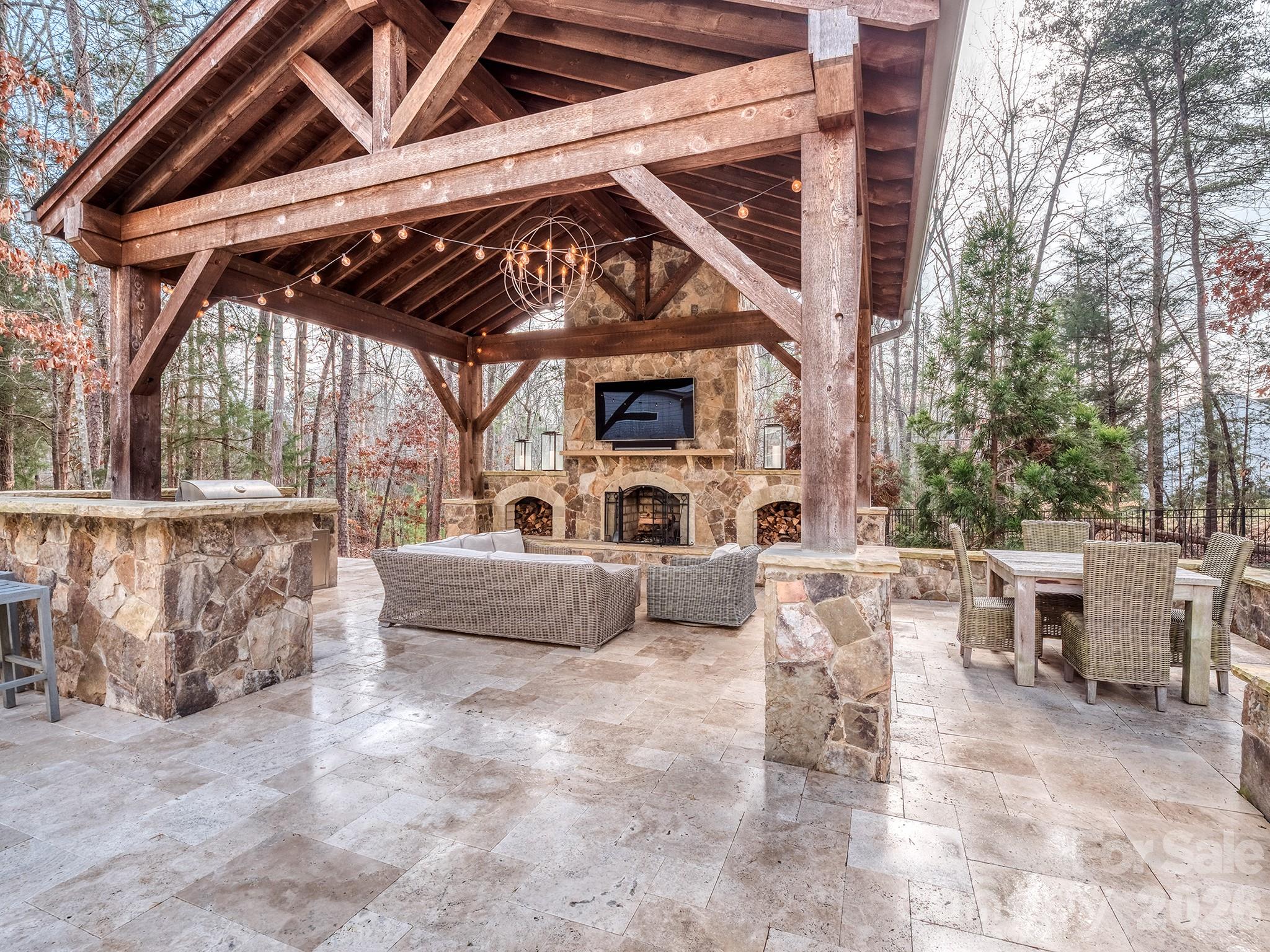 Step outside to an entertainer’s dream. The expansive cabana and outdoor living area is anchored by a wood-burning outdoor fireplace and heated salt water pool and jacuzzi, perfect for year-round gatherings. An additional exterior gas fireplace with in-line gas elevates the space even further, creating multiple inviting areas to entertain outdoors.