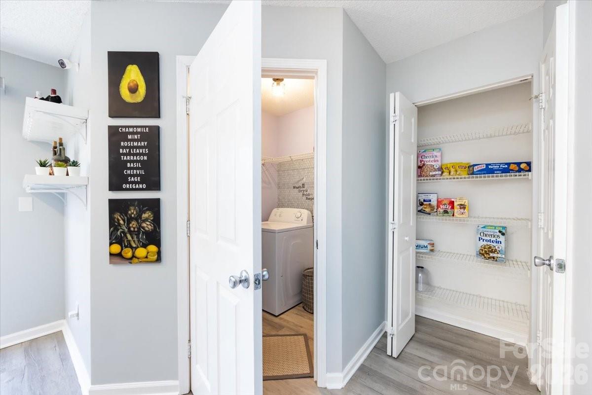 Super cute move in ready townhome within the heart of Steele Creek! Recent updates include luxury vinyl plank flooring, no carpet!! The light bright kitchen features granite counter tops, farmhouse style sink, stainless appliances and kitchen island. Primary bathroom has been beautifully upgraded with new vanity, LED back lit mirror and huge custom shower. Primary closet is exceptional with room for all your clothes! Secondary bedroom also features an ensuite and generous walk-in closet. Fresh paint and new lighting throughout! Newer windows and notarized shade in living room picture window. Close to Lake Wylie, Carowinds, great shopping and dining! Minutes to I485 and I77. Patio area is fenced in with storage closet.
