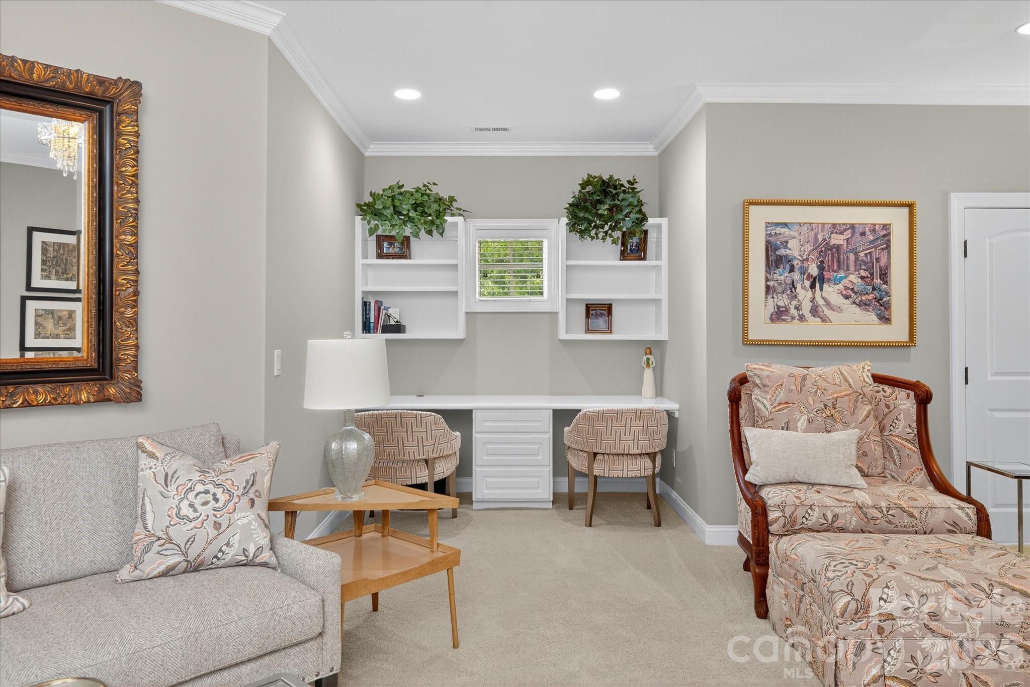 Exceptional brick home on 13th tee box of Country Club of the Carolinas w/ a private backyard oasis. Heated pool, spa & travertine pavers create resort-style retreat. Main level features:10' ceilings, oak floors, office w/ vaulted ceilings, wet bar & built-ins. Spacious primary suite on main w/ vaulted ceilings, 2 walk-in custom closets & dual vanities. Main-level guest suite w/ full bath. 2 story great room opens to chef’s kitchen w/ oversized granite island. Upstairs offers 3 bedrooms, 3 full baths & private living room suite. Expansive basement includes a bar w/ dishwasher, family room w/ fireplace, full bath & over 1600 sq ft of unfinished space—already stubbed for plumbing & has HVAC—perfect for a gym, guest suite, or flex rooms. 2022 roof, whole-home water filtration, irrigation, landscape lighting, screened porch w/ fireplace, covered patio w/ fireplace & 4-car garage. Golf course views in a premier country club setting complete this entertainer’s dream right on the state line.