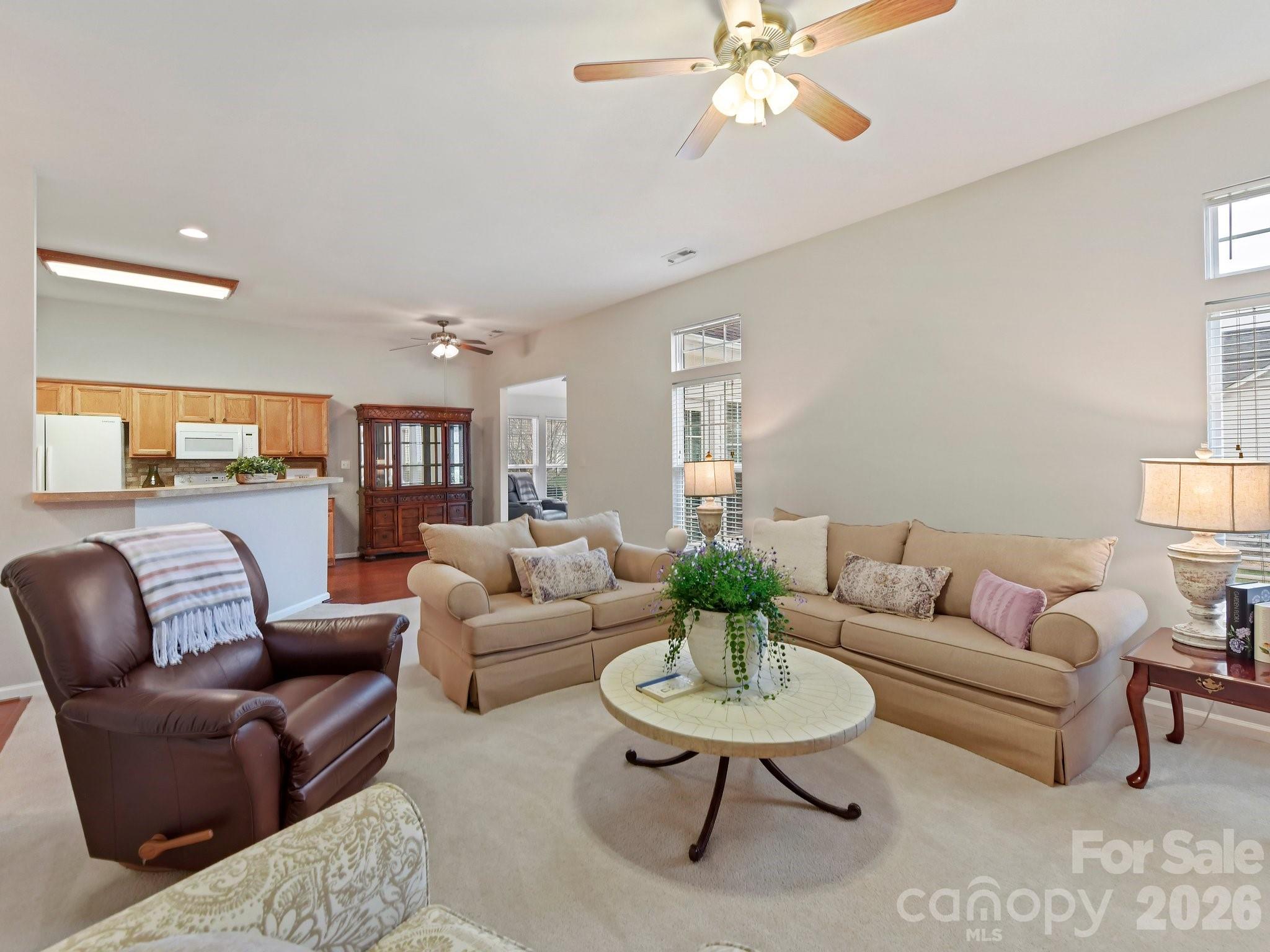 Beautiful well cared for ranch home! The floor plan has been carefully executed for easy living, and is such a gift for the new owners. The backyard is flat and one of the largest in the community. Plenty of space for a swing set, soccer nets or new pups! Freshly painted with designer paint, laminate hardwoods, and nice carpet ready for new buyers. This home offers open living for the owners. A large open space for the great room, a large fresh sun room filled with natural light for the whole family to enjoy together. The kitchen is in the center of the home, complete with a breakfast area. The dining room is spacious, and a wonderful area to spend time with family and visitors. The owners suite is spacious for any furniture, and the owners bath has a designer shower with lovely designer tile. The open owners walk in closet offers plenty of room to get ready for each day. Bedroom 1 and 2 are the perfect place for the rest of the family to enjoy. The neighborhood is filled with many families, and Coventry offers two pools, a playground area, and walking trails for all to enjoy. Coventry is close to the interstate, great shopping, and so much more. Come and see!