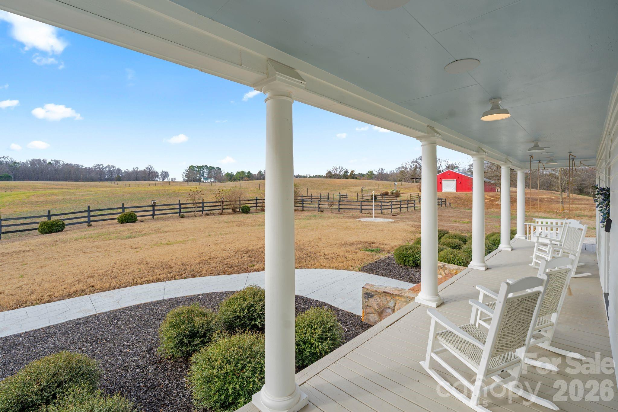 Enjoy peaceful mornings on the front or back porch, both offering serene, picturesque views. Outdoors, the property shines with 18 acres of fenced pasture, a 42’ x 100’ T-breezeway barn, elegant stone walkways, and a patio with pergola—ideal for relaxing or hosting unforgettable gatherings.