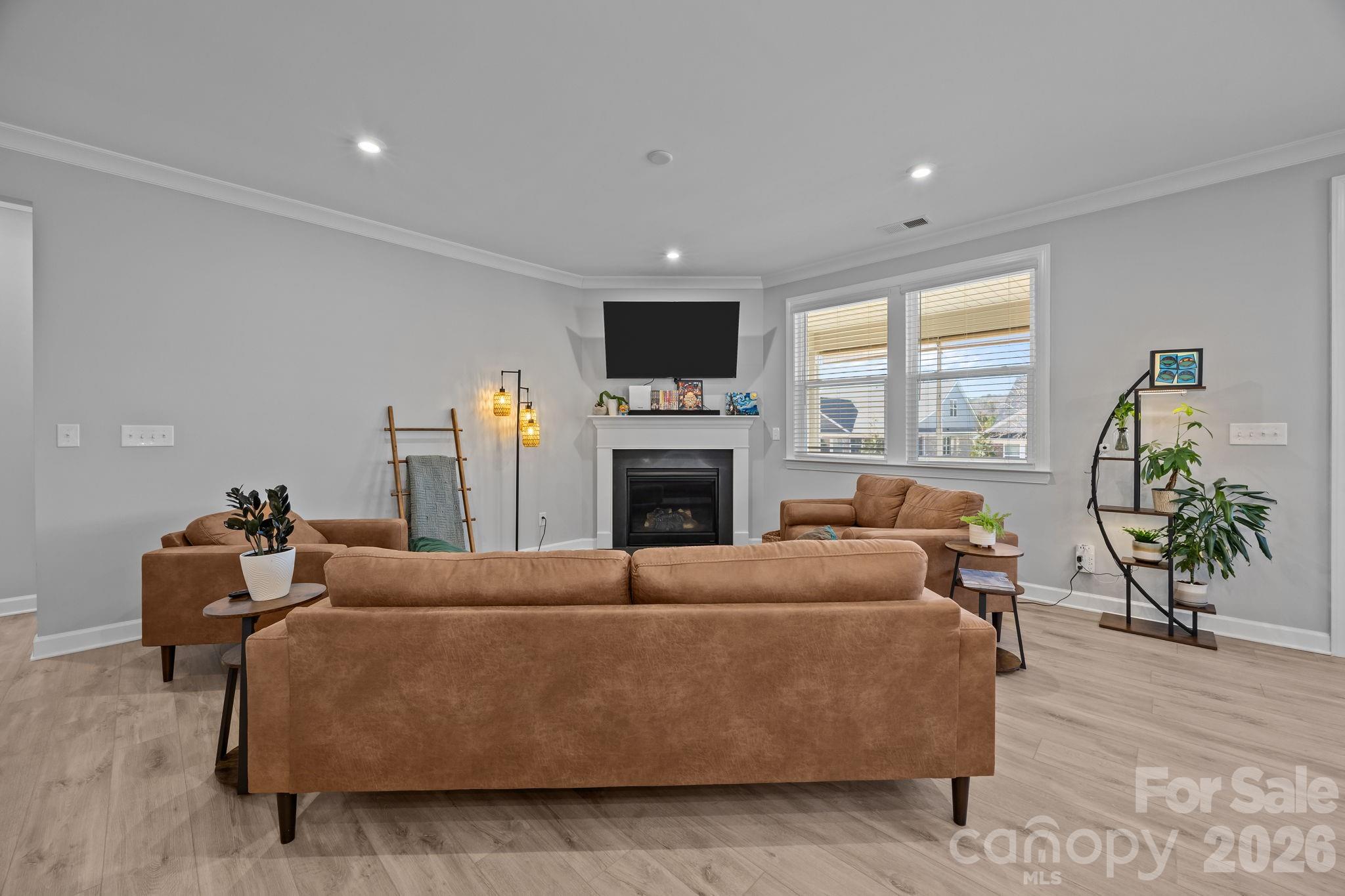 Inside, you’ll love the open, easy flow with numerous builder upgrades, beautiful trim details, quartz countertops, stainless steel appliances, and a cozy gas log fireplace. There’s tons of storage throughout, plus a flex space on the main level that works perfectly as a home office or study.