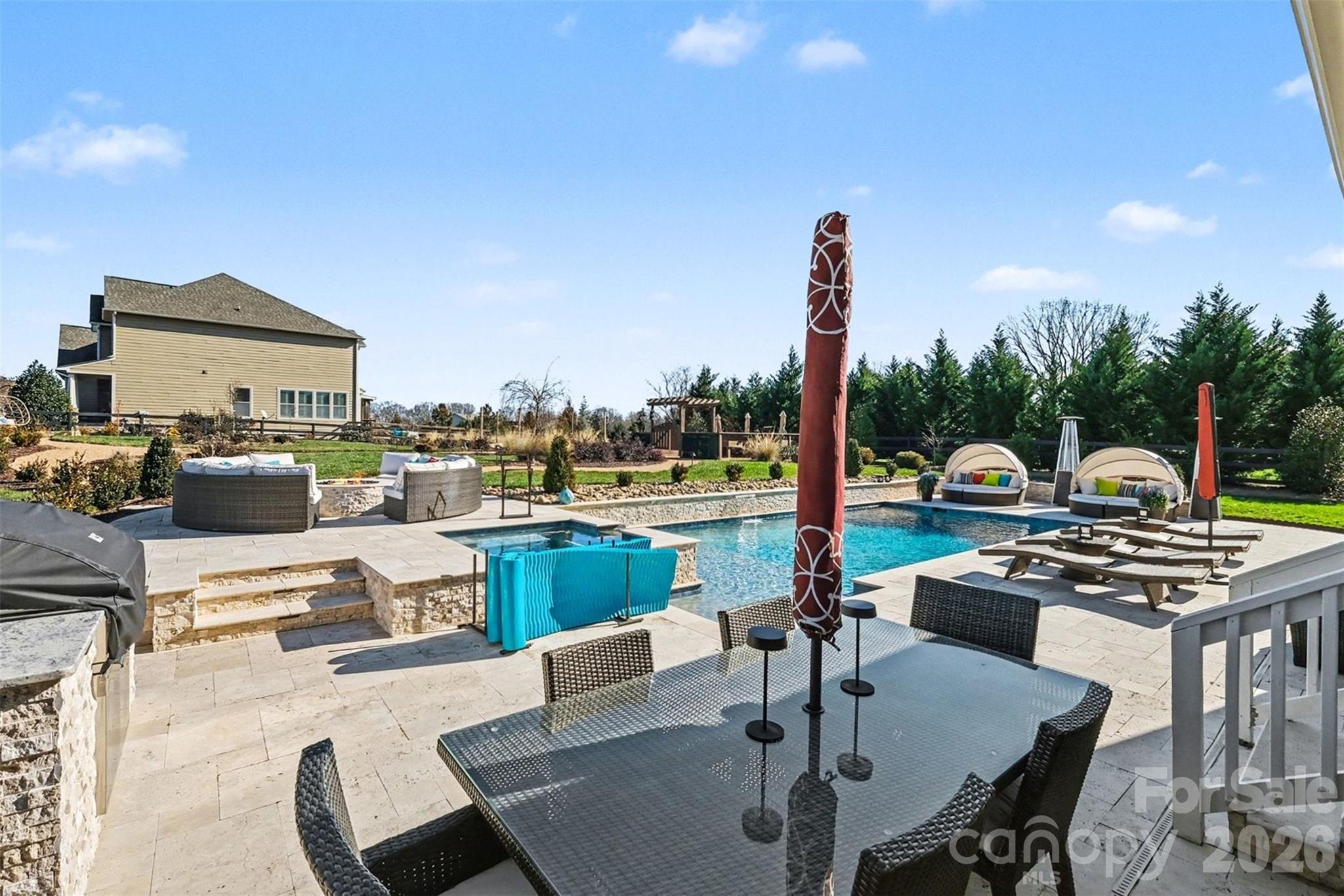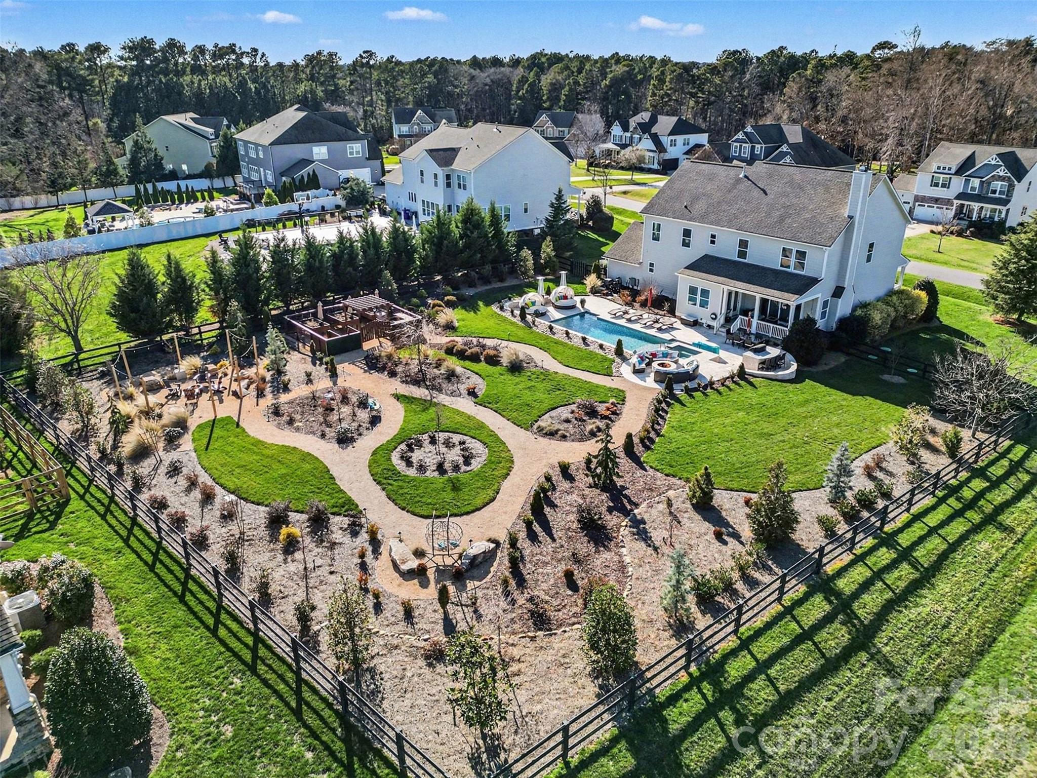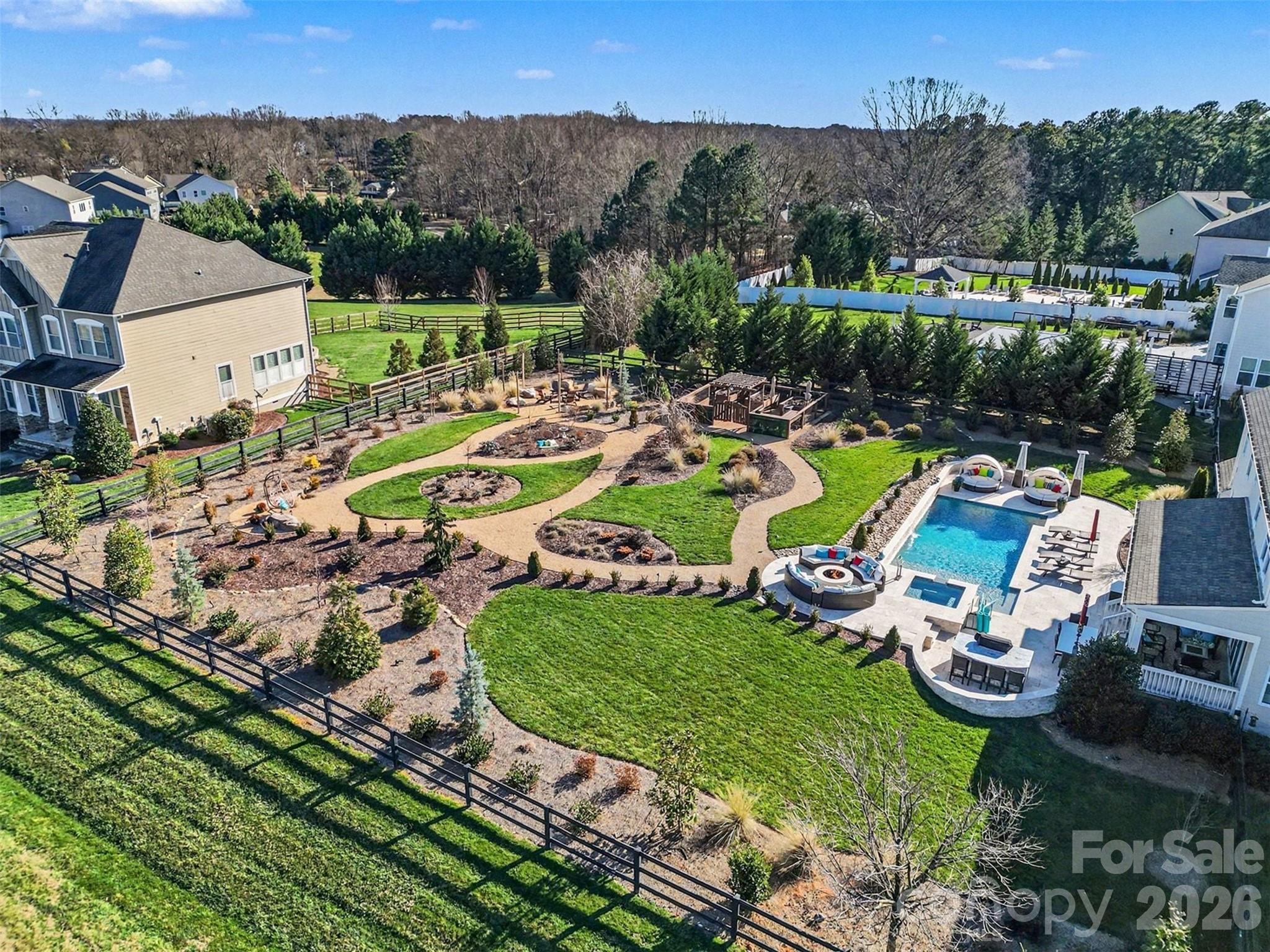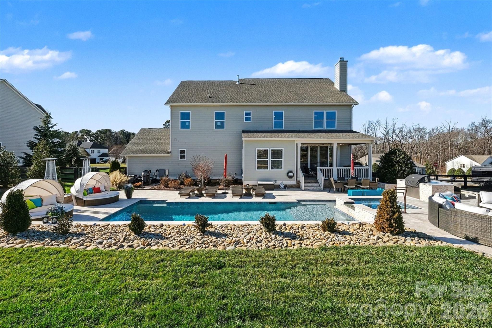 Built in 2016, this 4 BR, 3.5 BA two-story residence delivers an exceptional blend of modern comfort, curb appeal, and resort style outdoor living. Set on a desirable corner lot, the home features bright, open living spaces, and elevated finishes with modern amenities. The covered back porch leading to the professionally designed backyard makes this property truly unforgettable. A stunning in-ground saltwater pool (w/PebbleTech) and spa serve as the centerpiece, surrounded by an outdoor built in gas grill and countertop with seating, two fire pits (gas & wood), garden area, and multiple entertainment areas ideal for gatherings of any size. Accent lighting and a beautiful array of plants and trees, including Fruit trees, enhance the feel of your own backyard oasis. With its updated amenities, functional floor plan, chef's kitchen featuring a 4 burner gas cooktops and large island with seating, 3 car garage (includes cabinets and racks) and curated outdoor environment, this Lake Norman home offers a combination of luxury and convenience, ready for the next owner to enjoy.