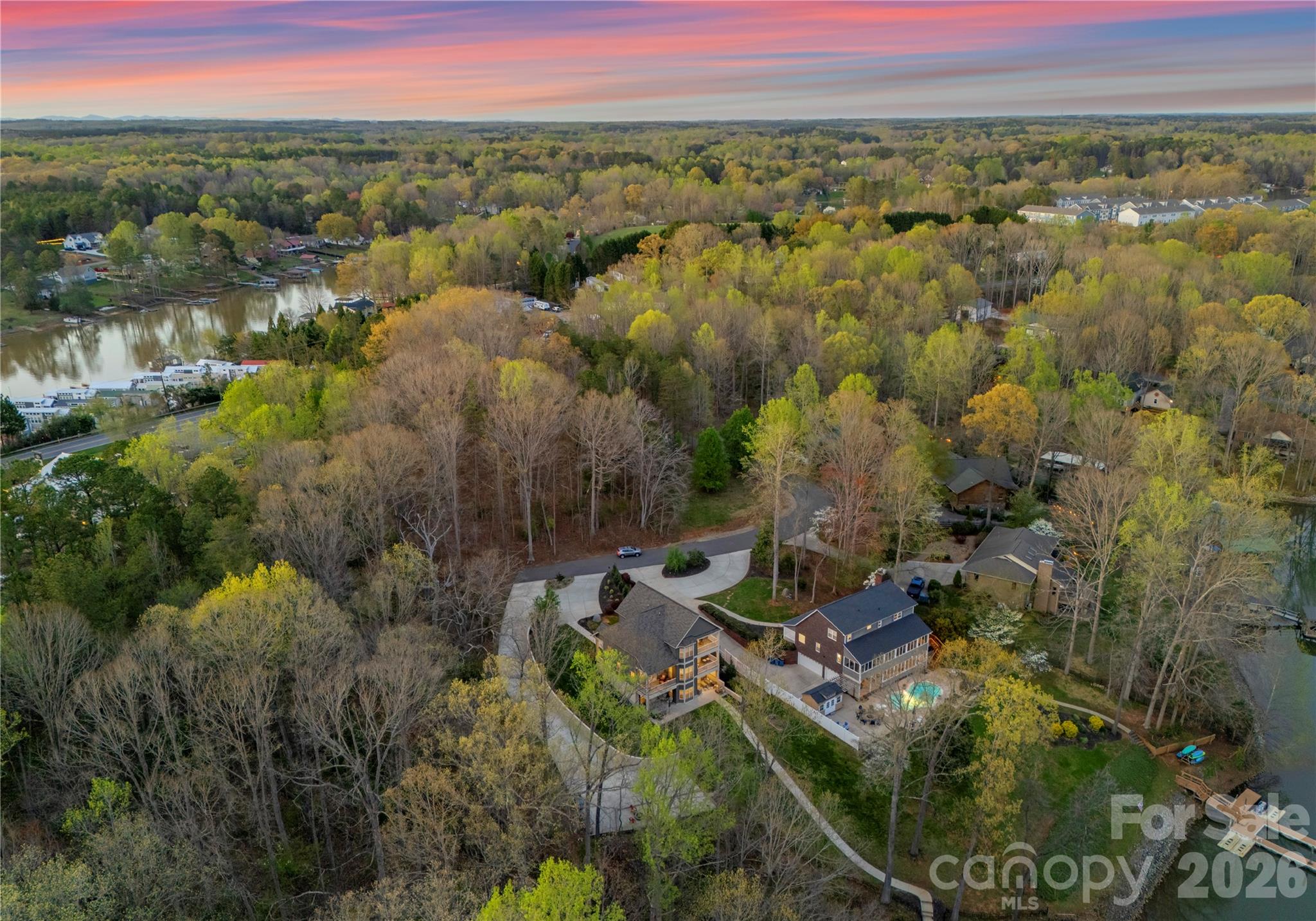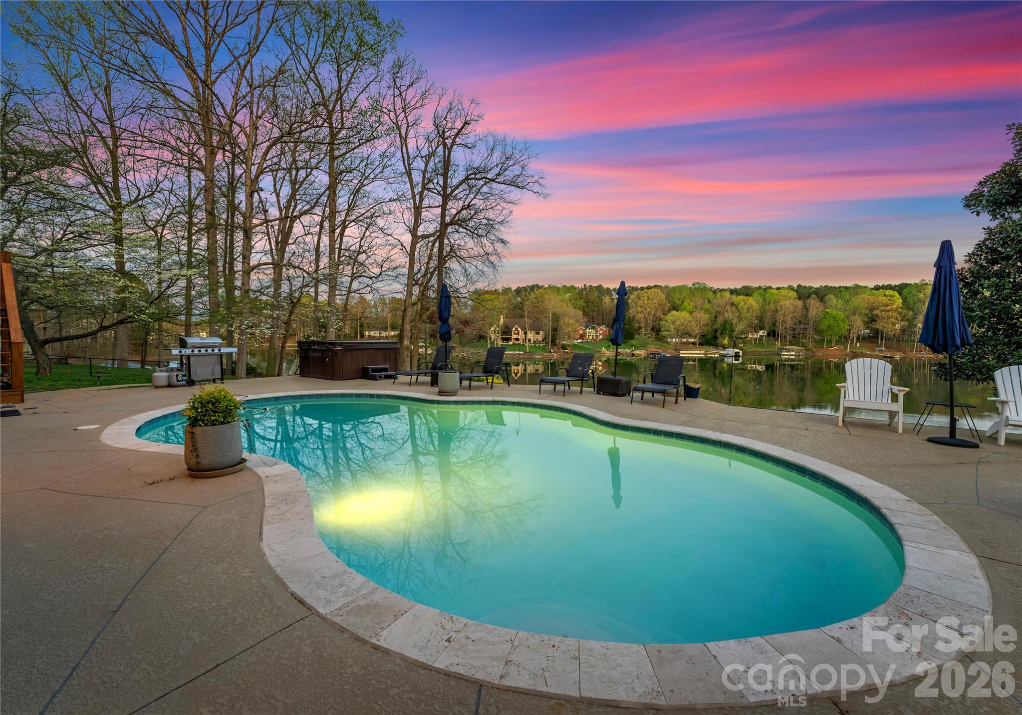 Live the Lake Norman lifestyle in this exceptional waterfront residence, nestled in a large cove with year-round deep water access. positioned on approximately 0.68 acres with no homeowner’s association, this fully furnished property presents a turnkey opportunity for primary residents, investors, or a second-home retreat. Designed for effortless indoor-outdoor living, the residence features a heated pool and spa, and a tiered outdoor layout with distinct zones for entertaining and relaxation. A two-story great room with fireplace opens to a traditional kitchen with granite countertops, two islands, wood cabinetry and a tile backsplash. The expansive sunroom, currently used as a dining room, spans the rear of the home and connects to both a screened-in porch and an open-air porch with steps to the pool. The main-level primary suite overlooks the water and includes a private screened porch, oversized walk-in closet and a spa-style bath with soaking tub, dual vanity, and custom tiled shower. Upstairs are two spacious bedrooms, two full baths and a second laundry. The walkout basement, ideal for hosting, includes a second full kitchen with bar seating, recreation space, a full bath and laundry room. A three-car garage provides ample storage and convenience. The private dock accommodates boating and jet skiing, while the calm cove is ideal for paddleboarding and protects your vessel from main channel exposure. Recent upgrades include a newer roof (2023), well pump (2022), resurfaced pool deck with propane heating (2021), main level and basement HVAC (2024), and A1 Pest Control service. Located just 40 minutes from Charlotte and minutes to The Village Shoppes, Publix, Starbucks and Chick-fil-A, this residence blends lakeside serenity with urban accessibility.