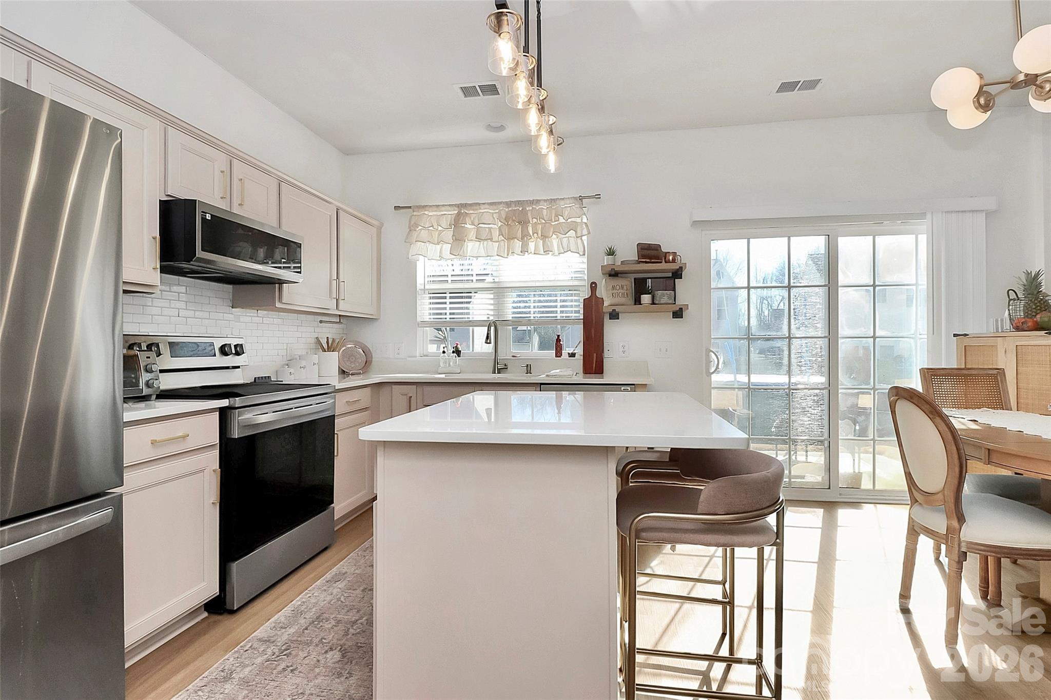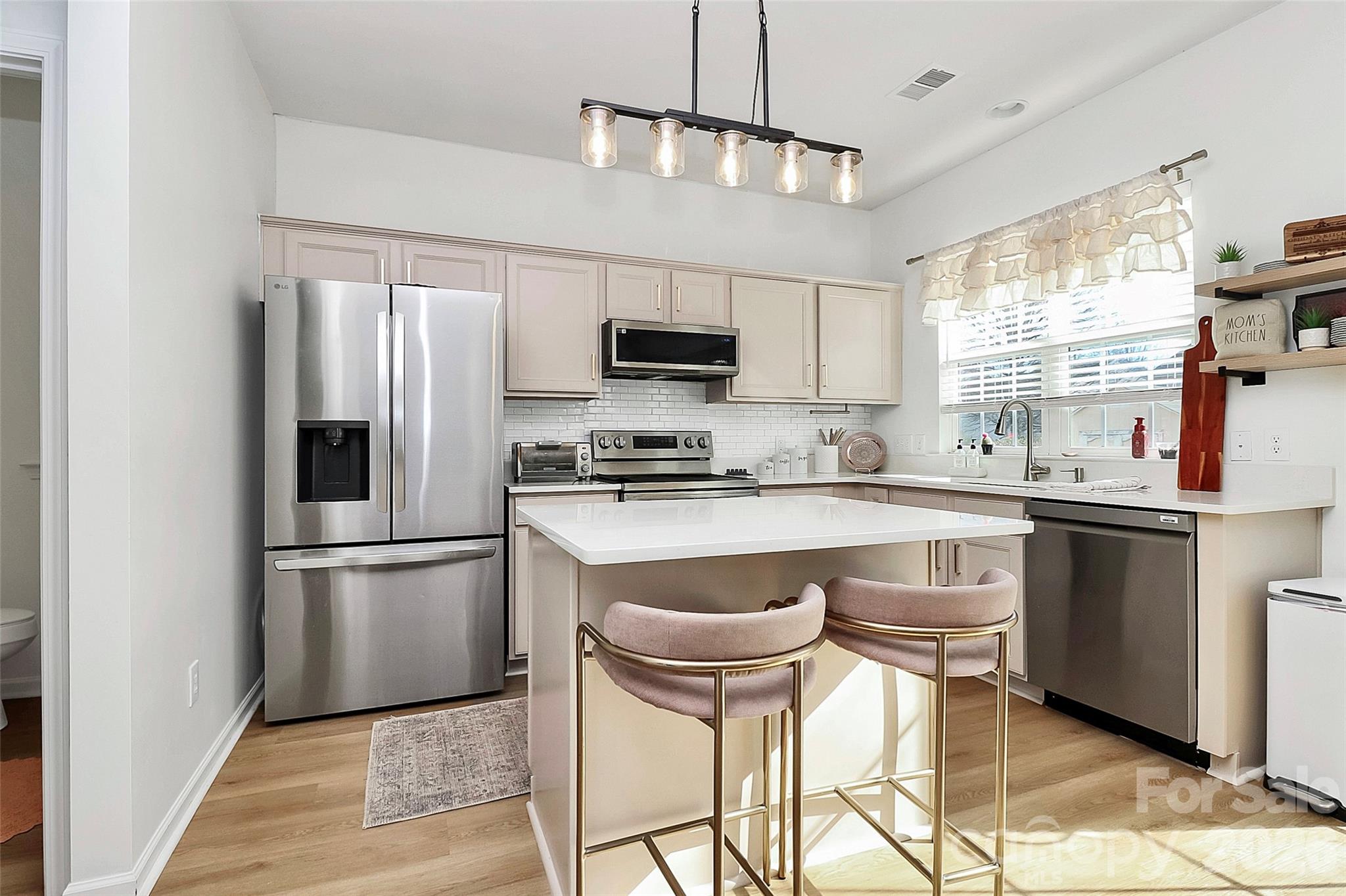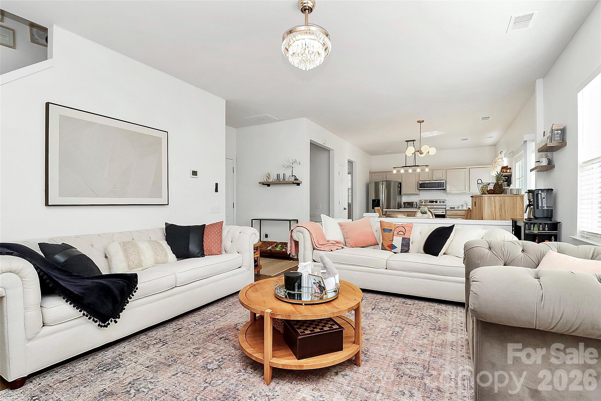 Welcome to this beautifully updated 4-bedroom, 2.5-bath home featuring a bright, open floor plan and an unbeatable location just minutes from I-85, I-485, and I-77, with Starbucks and Trader Joe’s within walking distance and only 5–10 minutes from Concord Mills, Northlake, and a wide variety of shopping and dining options. The main level offers 9-foot ceilings, brand-new luxury vinyl plank flooring, and a freshly painted interior—including the kitchen cabinets—complemented by modern brushed gold light fixtures throughout. The warm, inviting kitchen shines with new quartz countertops installed in January 2026, stainless steel appliances from 2025, a new sink, faucet, and disposal, while recent upgrades also include a new roof (2024) and new toilets (2025). Enjoy community amenities such as a pool and playground, and for a truly move-in-ready experience, THE SELLER IS WILLING TO INCLUDE ALL FAIRLY NEW QUALITY FURNITURE WITH A FULL PRICE OFFER.