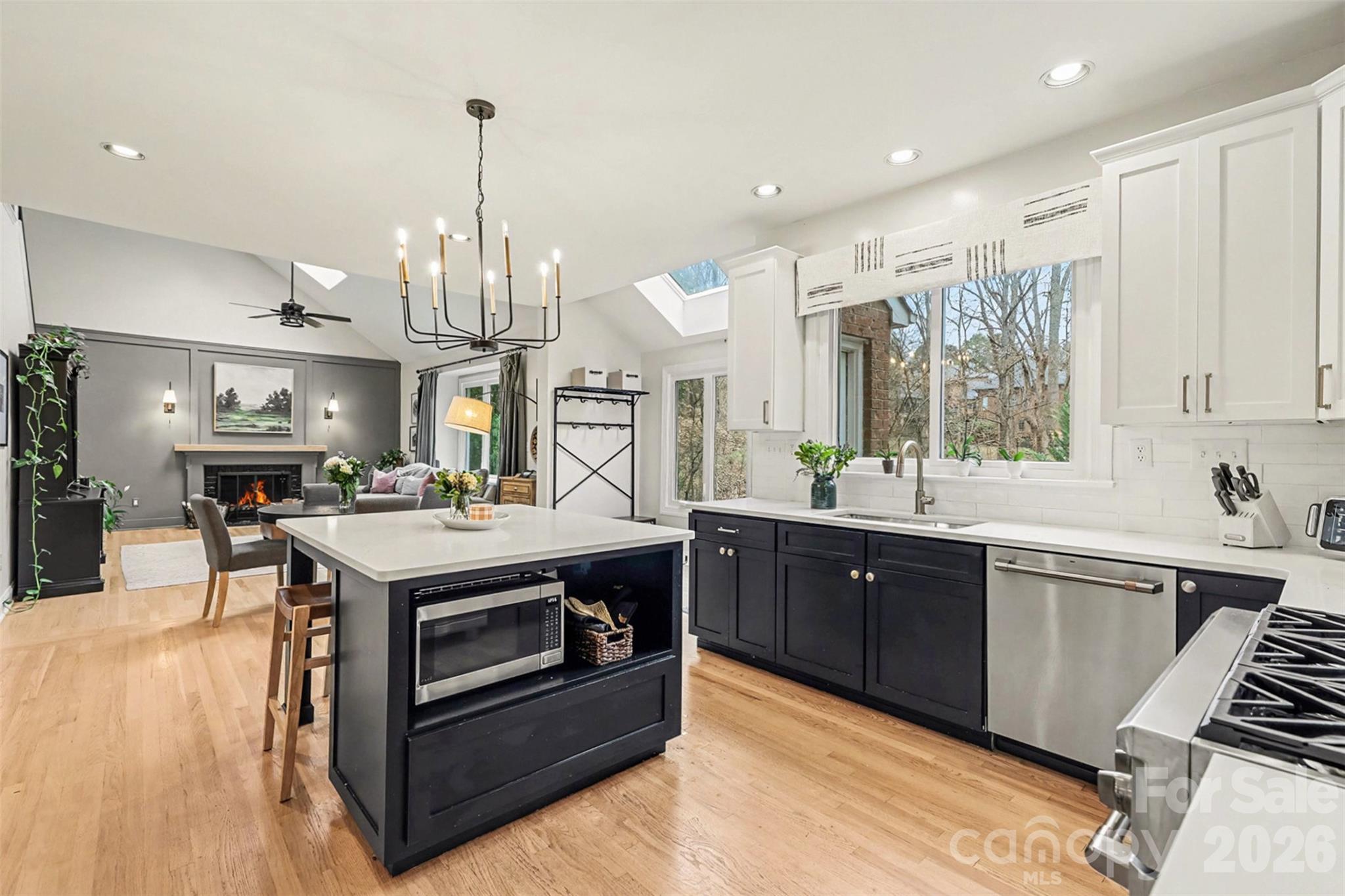 Step inside to find a light-filled floor plan featuring completely updated, gourmet kitchen that serves as the centerpiece of the main level. The kitchen boasts premium finishes and modern appliances, perfect for the home chef. On chilly evenings, gather in the spacious living area anchored by a classic wood-burning fireplace, offering a cozy ambiance.