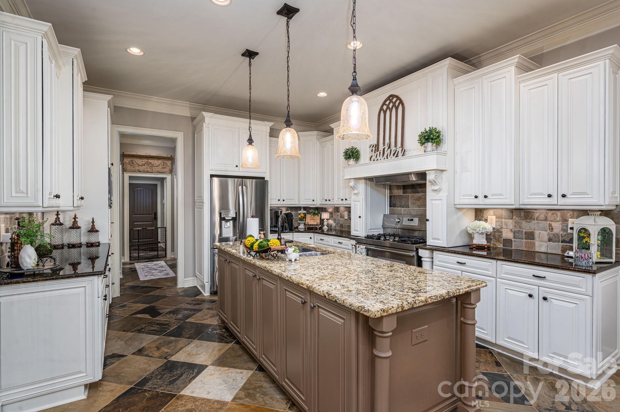 The heart of the home is the chef’s kitchen, recently updated, premium high-end appliances and a custom pantry system for effortless organization. Loads of custom cabinetry and spacious center island. Kitchen is open to hearthroom/den and breakfast area. Every inch of this home exudes quality, from the rich Brazilian Cherry hardwoods underfoot to the heavy, artisanal moldings and extraordinary designer lighting fixtures and multiple fireplaces making each area super cozy. In addition to the 3 spacious beds (each with private baths) upstairs, there are 2 other large living spaces that could easily be additional bedrooms if needed.
