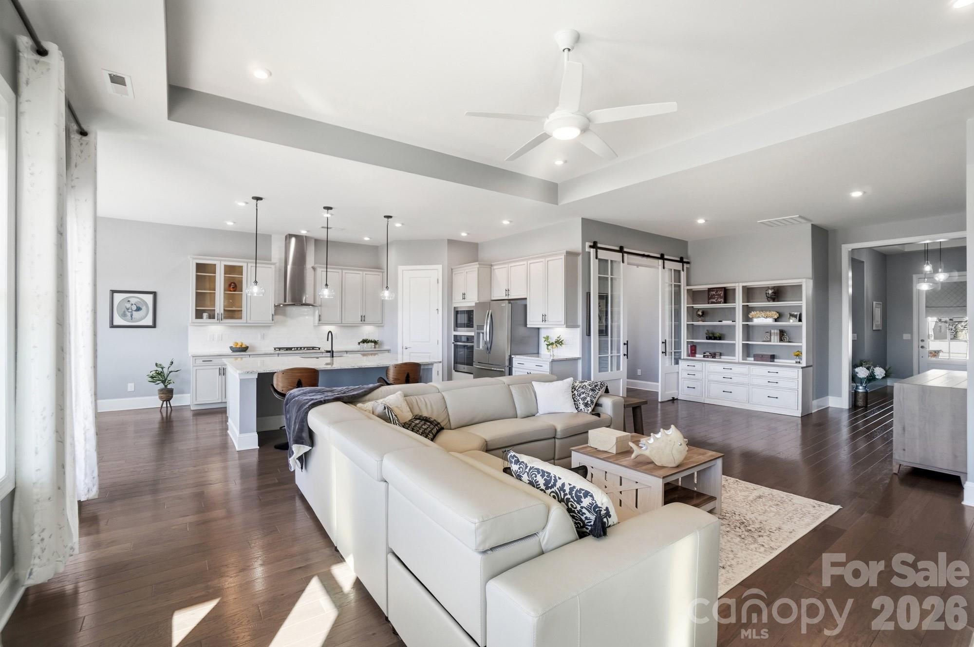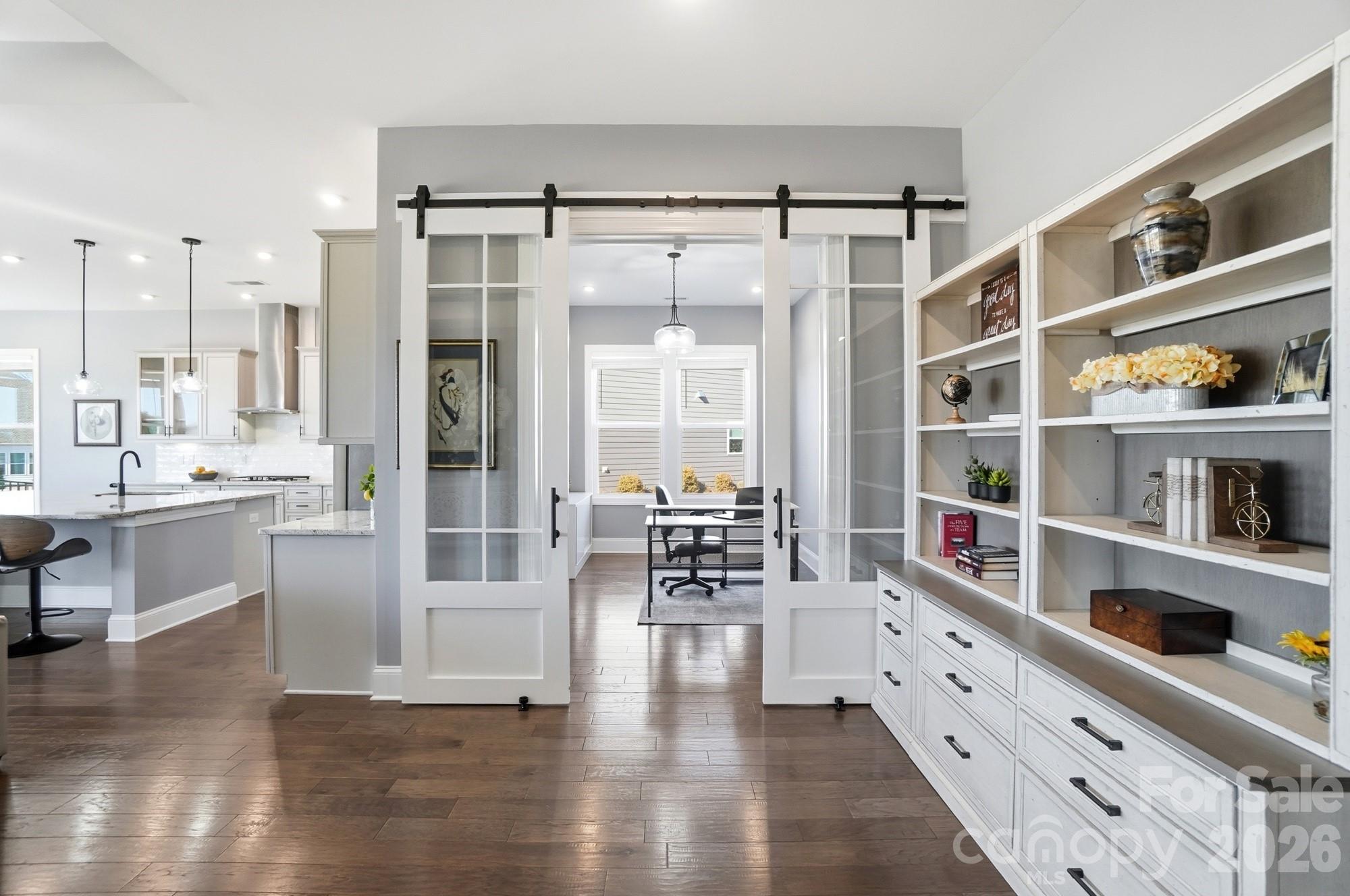 Thoughtful upgrades include custom closets in the primary and front bedroom as well as the laundry room. A stylish barn door leads to the serene and spa-like primary bath, adding both character and function.