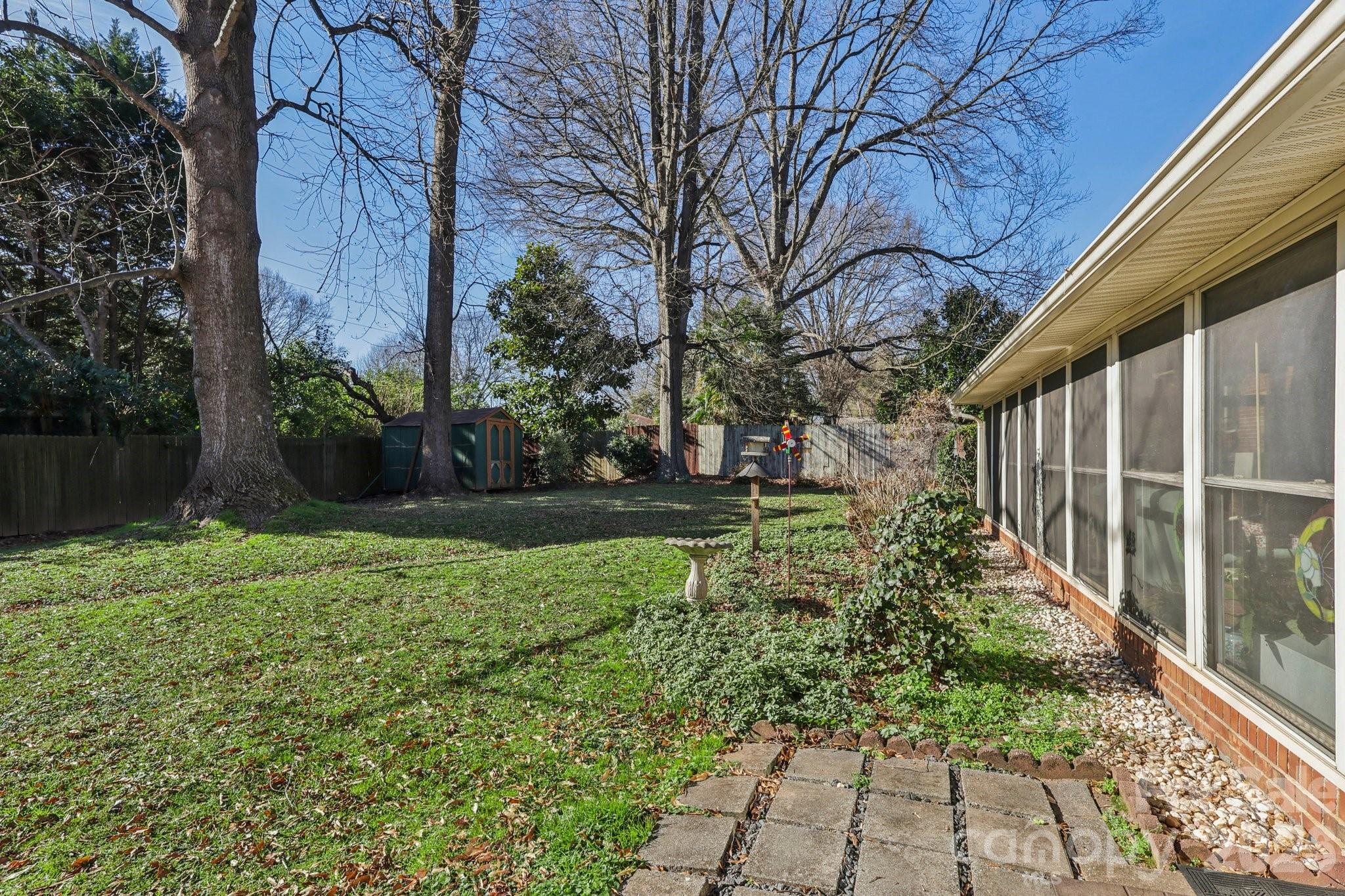 Walk to everything! Walk to Ebinport Elementary, restaurants like Casa Tequila, shops, medical providers and the new Crumble Cookies and Swig at the new Sharonwood shopping center. Full brick ranch with 3 bedrooms and hardwoods throughout the main floor. Extra large Kitchen with granite countertops, stainless appliances, breakfast island and lovely bay window. Kitchen flows into Living Room with Masonry fireplace. 600 square foot sunroom has infinite possibilities, floor to ceiling windows and access to flat backyard. Primary bedroom has bay window, updated ensuite and walk in closet. You will love the private backyard with mature shade trees and landscaping featuring gigantic Azaleas. Attached 2 car garage with storage room. NO CITY TAXES! Just a few minutes to I77 access. 3 minutes to Millwood shopping center