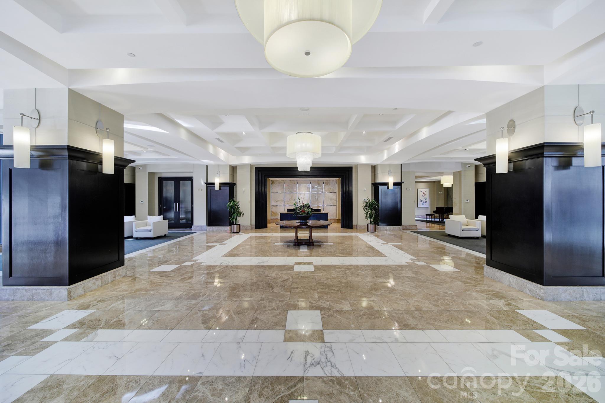 This is the lifestyle you have been looking for! High floor in an A++ building. This extra large corner condo overlooks bustling S. Tryon Street and has sparkling night views. Oversized patio includes direct piped grill and ample space for entertaining or relaxing. Open split double master plan is thoroughly upgraded including flooring, lighting fixtures, black stainless appliances and new HVAC in 2025. Concierge, fitness center, pool and community rooms with billiards. Secure building. 2 designated parking spaces in attached deck. 1 block from Romare Bearden parks' huge lawn and fountains. Easy walk to Baseball, Panther stadium, arena, museums and lots of restaurants. 1 Block to light rail. You can travel and just lock the door and not worry about a thing. But you will always look forward to coming home.