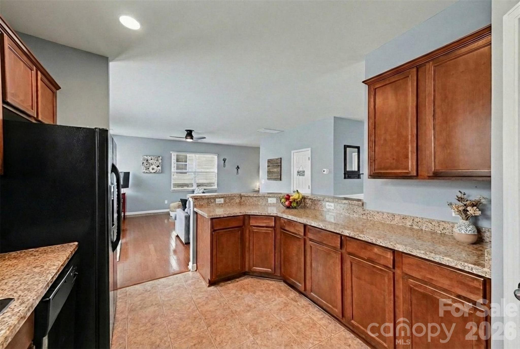 Step inside to a bright entrance foyer that leads to a generous living area centered around a cozy gas fireplace—perfect for relaxing evenings. The kitchen features warm cabinetry, granite-style countertops, a breakfast bar, and plenty of space for entertaining. A dedicated dining area adds charm and flexibility for gatherings.