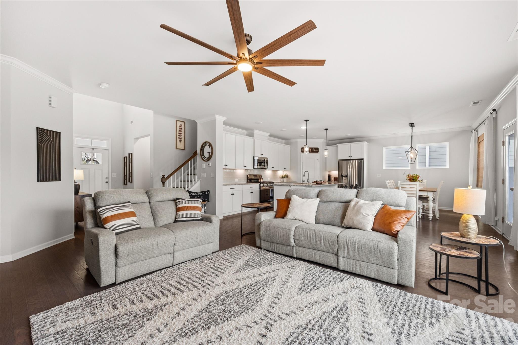 Beautifully maintained 5 bedroom, 3 full bathroom home in the well sought after neighborhood of Massey, located in the award-winning Fort Mill School District. As you enter the home you're greeted with an inviting foyer with large ceilings and custom woodwork, making the space warm and inviting. An open concept living room w/ a gas log fireplace and large windows, bringing in tons of natural light. The kitchen is equipped with tons of granite countertop space for cooking, plenty of cabinets for storage and a large pantry with custom wood shelving. It flows seamlessly into the breakfast area creating an open feel that's perfect for everyday living and entertaining. Downstairs you'll also find an office w/ built-ins and french doors, a full bedroom and full bathroom, perfect for a guest room or a playroom. Upstairs is 4 additional bedrooms, the laundry room and 2 full bathrooms. This home is situated right in front of a large flat green space, perfect area for kids to run around and play while you relax on the front porch. Don't forget about all the amazing amenities this neighborhood has to offer including a fitness center and pool. You won't want to miss this opportunity.