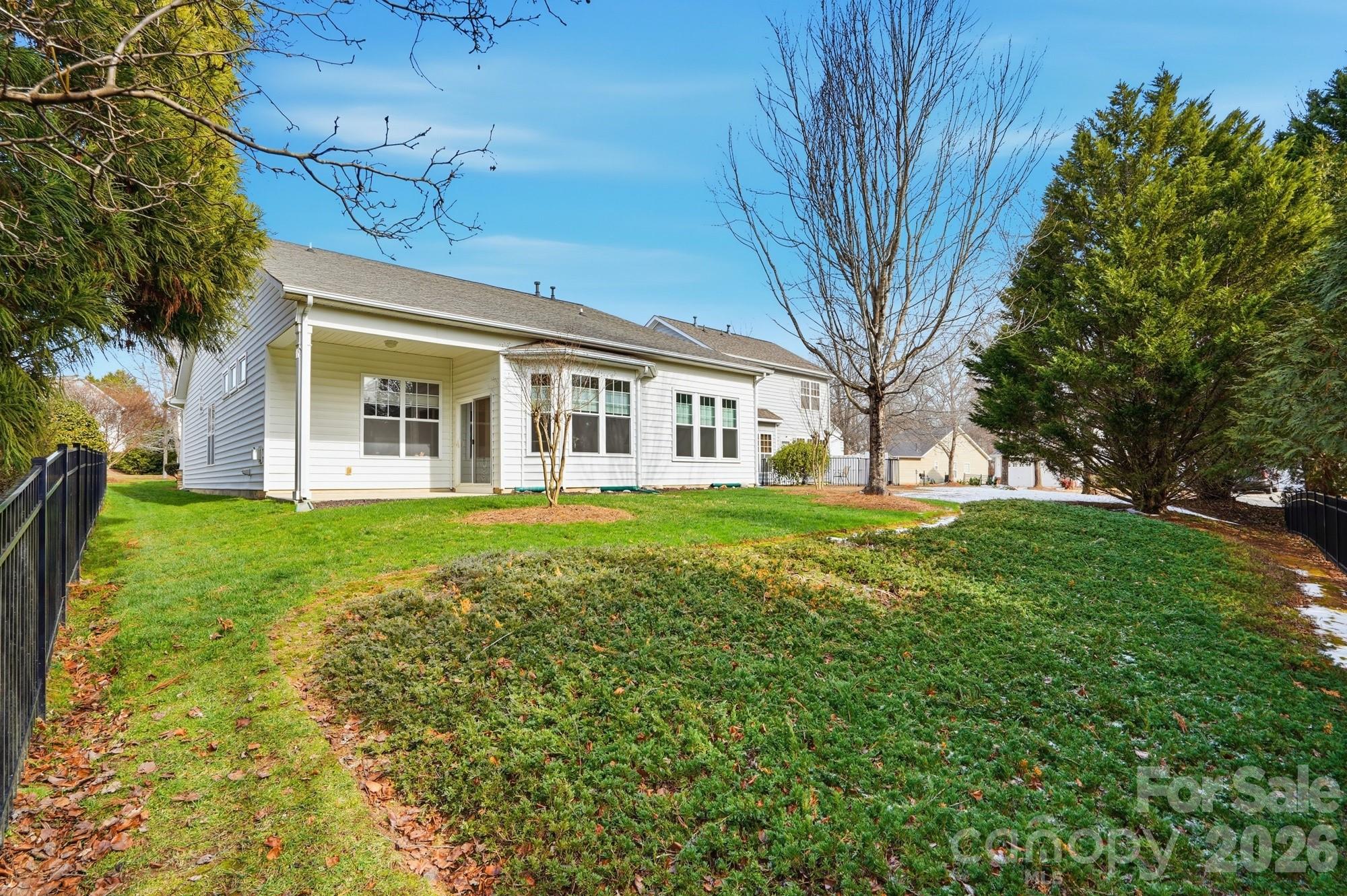 Meticulously cared for 3 bedroom 2 bath one story home in Union County's desirable Callonwood neighborhood. Features include rocking chair front porch, attached 2 car garage with built-in shelves, new roof in 2020, some new windows in 2023 & 2025, new furnace in 2021, extremely high ceilings in common area, beautiful entry hall from front door, lots of cabinets and Corian solid surface counter tops in spacious kitchen, dining area with bay window, gas logs fireplace and built-ins in huge great room, tray ceiling in primary bedroom, garden tub with separate shower & walk-in closet in primary bathroom, cover patio in back overlooks partial fenced back yard, and lots of community features including swimming pool and dog park. This home is conveniently located close to retail, grocery, and restaurants. Also, just around the corner is newly opened exit 54 for I-485.