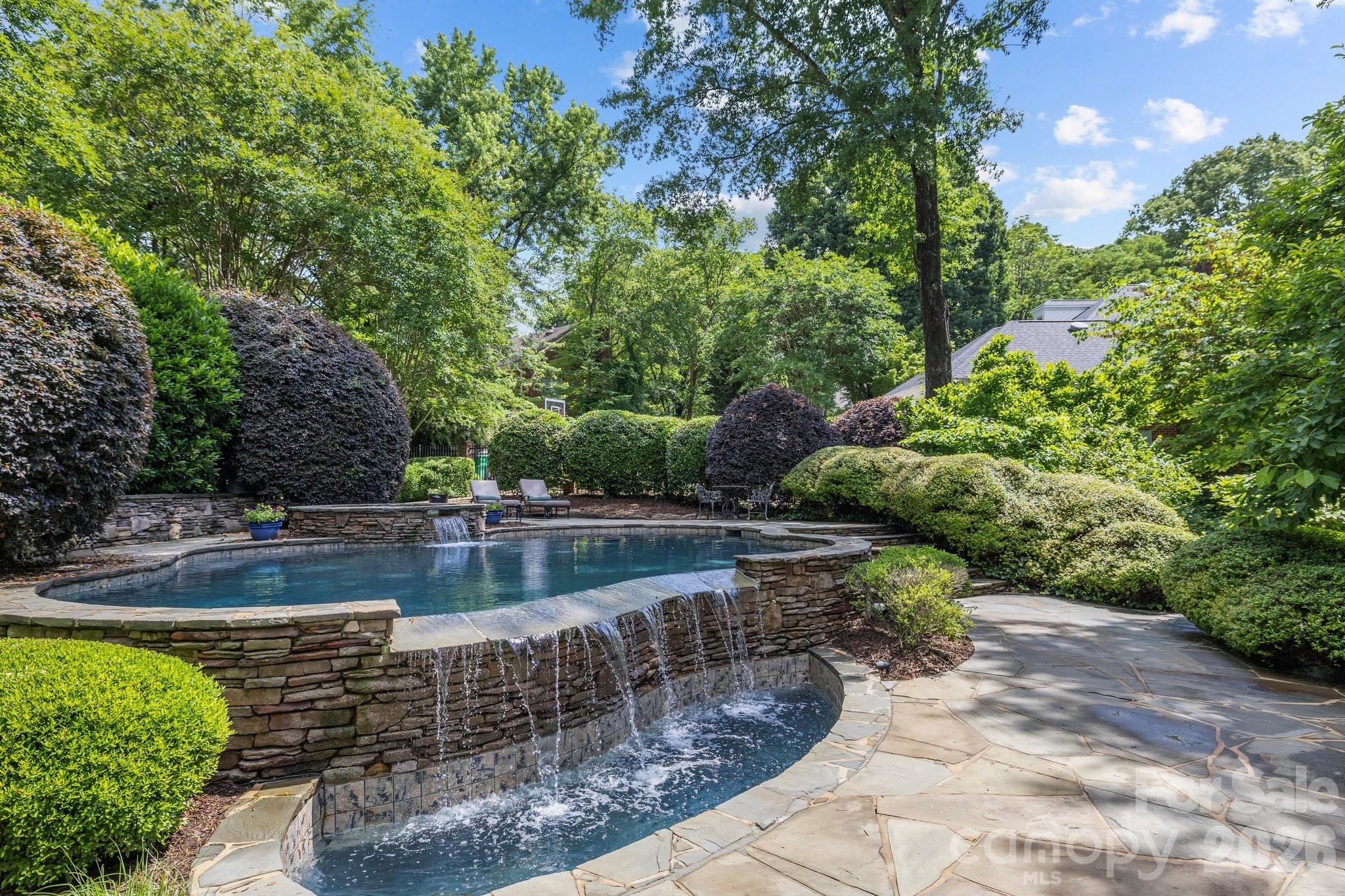 Spectacular property in Quail Hollow on over an acre. This 6 bedroom home is perfectly positioned on a quiet street with an incredible private backyard retreat. Elevate your outdoor living and entertaining with the resort like pool cabana & pool surrounded by gorgeous mature landscaping & lighting. The main level features 9ft ceilings, custom moldings & built-ins and natural light. The traditional floor plan includes formal living & dining rooms, a wood paneled office, a spacious family room with a fireplace with gas logs, a bar with an ice maker & beverage fridge. The gourmet kitchen has ss appliances & an island and is centrally located near the dining room & family room. Other amenities include a side entrance drop zone/mud room, a dedicated laundry room & a sunroom with vaulted ceiling and incredible light. The primary suite on the main level has a fireplace & walk-in closet & a spa bathroom with heated floors and steam shower. The second level includes 4 bedrooms, each with their own half bath & shared tub/showers. Third floor has great flex space and a full bathroom offering a multitude of uses - a gym, a second office or an additional bedroom. The lower level is perfect for entertaining & accesses lower level patio. The outside living includes many options. Enjoy the upper deck off of the family room & kitchen overlooking the backyard or the lower patio off of the basement. The pool & pool cabana are an absolute dream. The huge custom cabana has it all - ceiling heaters, speakers, wood burning fireplace, bar seating and an outside kitchen. The heated saltwater pool and hot tub complete the gorgeous atmosphere. There is also an outside shower & a pool bathroom with a changing area. Attached 2 car garage with an extended parking pad and a circular driveway.