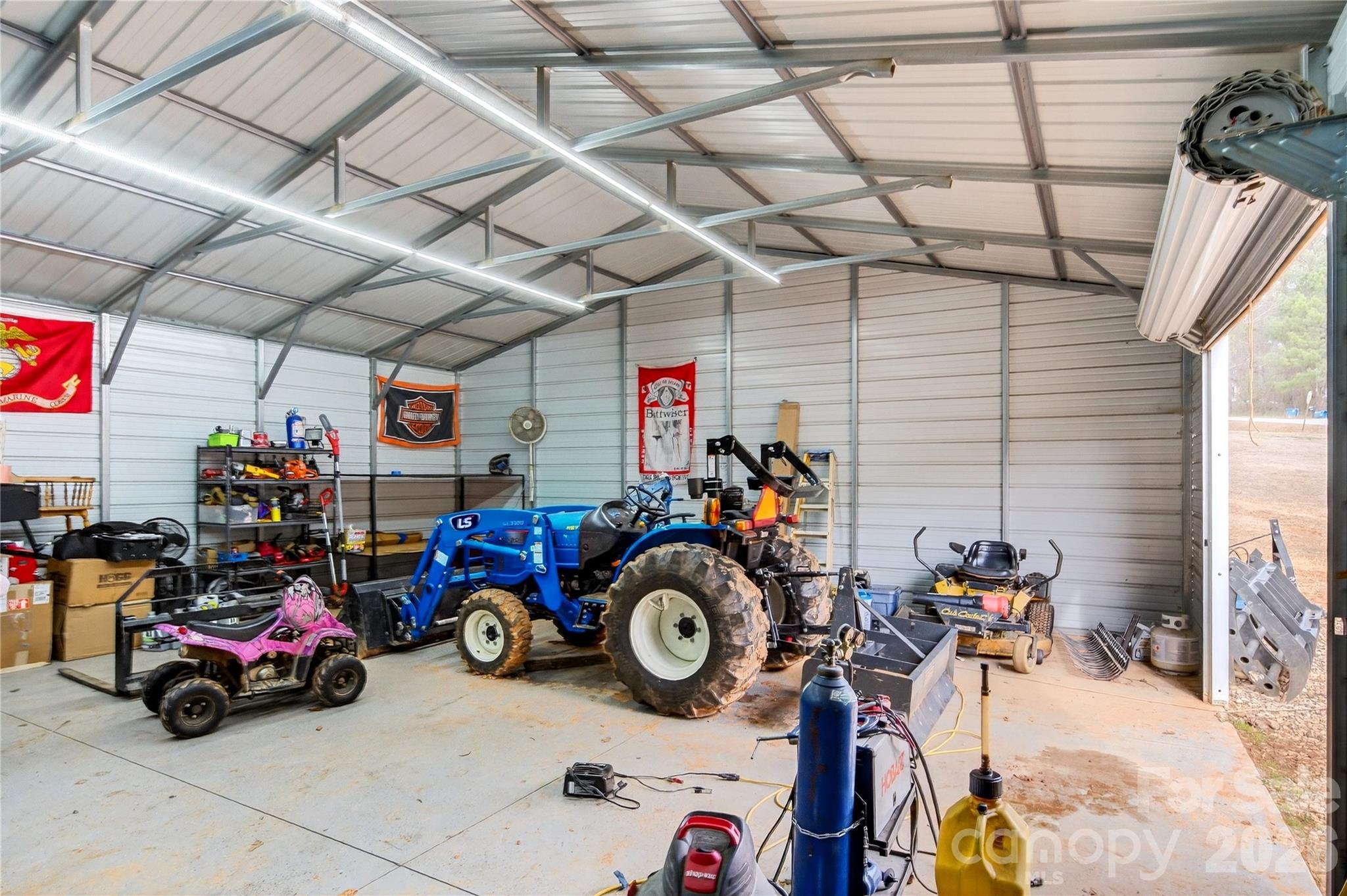 Detached workshop space like this is difficult to find on residential property. This 30 x 40 metal building is wired for 220-volt service and constructed with a six-inch reinforced concrete slab designed to accommodate heavier equipment or potential future lift installation. Properties offering this level of functionality do not stay available long.