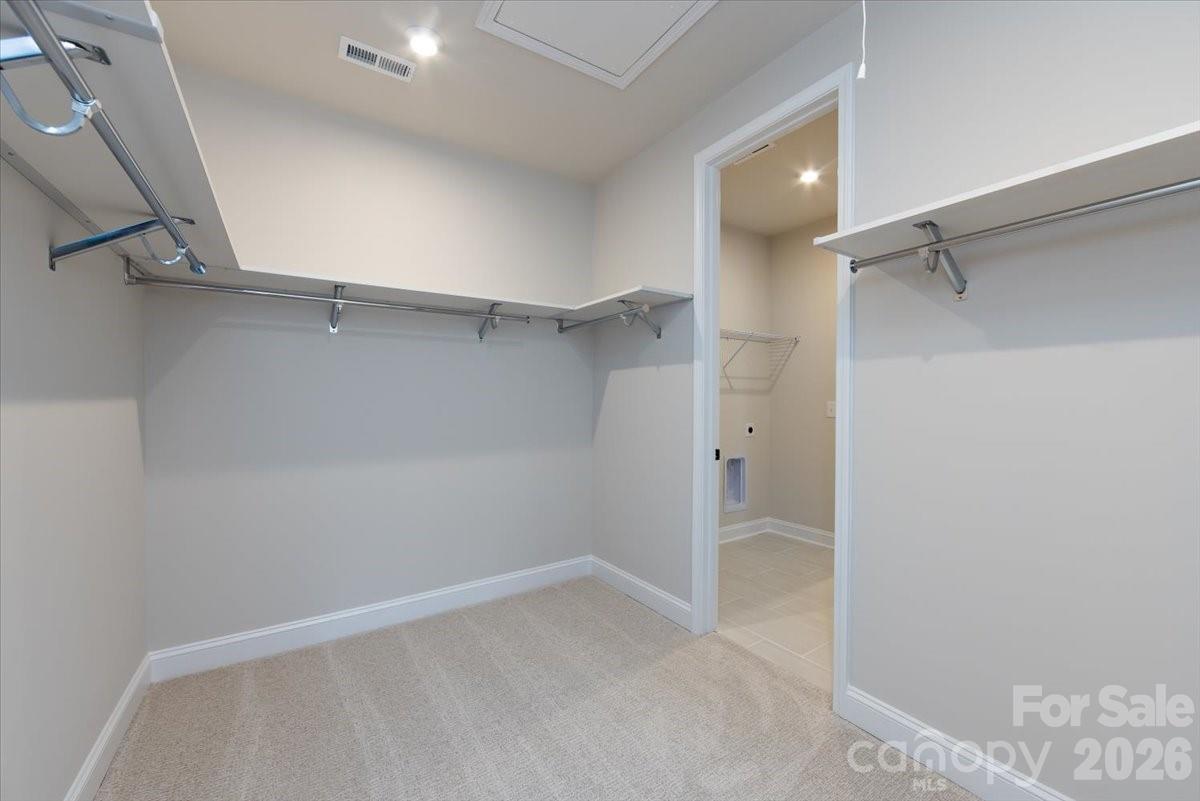 Designed for everyday comfort and easy living, the Falcon plan at 155 Landy St offers a welcoming layout with thoughtful details throughout. A front-load two-bay garage leads into a convenient drop zone that keeps daily routines organized. Inside, oak box stairs with painted vertical balusters and a trim-accented ceiling in the foyer create a polished first impression. The kitchen anchors the main living space with crisp white cabinetry, white quartz countertops, a GE 30-inch free-standing gas range, and a large sink with a Delta Essa touch faucet, making it a natural place to gather. Step outside to the extended 8' x 8' patio with wooded views for quiet mornings or relaxed evenings. Upstairs, a flexible loft adds extra living space, while the primary suite feels elevated with tray ceilings, a tiled shower with tile floor pan, and a walk-in closet that connects directly to the laundry room for added convenience. The secondary bathroom features tiled walls above the tub for a clean, finished look. Located in Camryn at Southbridge, residents enjoy community amenities including walking trails, a playground, and access to top-rated schools, all just minutes from downtown Fort Mill and I-77 for easy commuting.