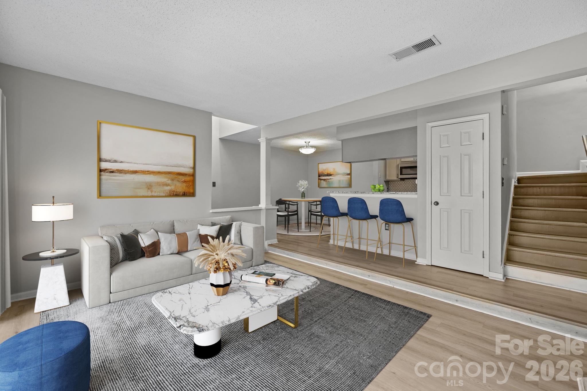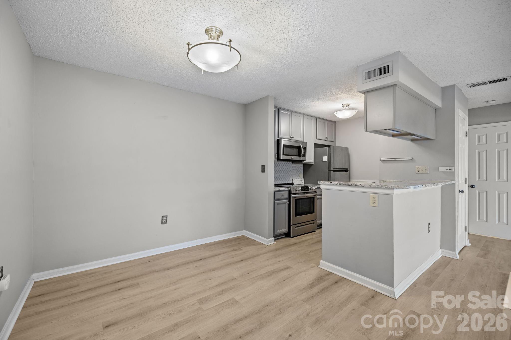Move-in ready rare two story condo in Fourth Ward, right in the heart of Uptown. Walk to Tryon Street, parks, restaurants, and grocery stores and enjoy true center-city living at an affordable price. The efficient open floor plan connects the kitchen, living, and dining areas, maximizing space and flow. Modern updates include LVP flooring and upgraded appliances throughout. Relax or entertain on your private patio with outdoor storage, and take advantage of the community pool open all summer. Includes one designated parking space. Prime location, low-maintenance living, and unbeatable walkability.