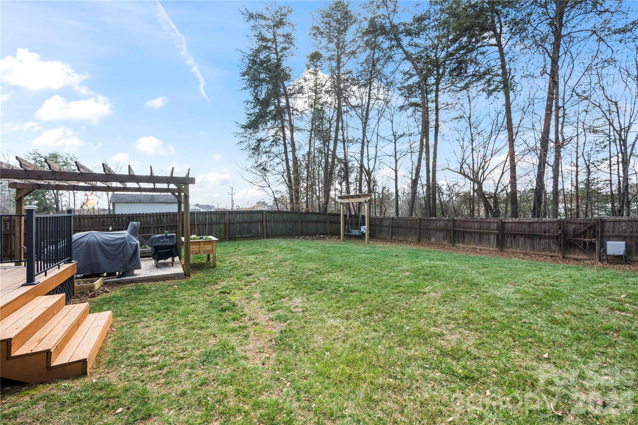 Welcome home to this beautifully situated 3-bedroom, 2.5-bath home on a cul-de-sac lot. Enjoy relaxing mornings on the charming rocking chair front porch before stepping inside to a bright, open floor plan filled with tons of natural light. The spacious kitchen is perfect for both everyday living and entertaining, featuring granite countertops, a double oven, and an open layout overlooking the main living area. The massive primary suite is a true retreat, complete with a private sitting area ideal for an office, reading nook, or lounge space, along with a large walk-in closet and spacious primary bath. Recent updates include new laminate flooring with a luxury vinyl plank look. Step outside to your fenced backyard retreat featuring an extra-large deck with pergola, stamped concrete patio, and an outbuilding that conveys with the property, providing excellent storage or workshop space. Located on a desirable cul-de-sac, this home offers the perfect blend of space, comfort, and outdoor living—ideal for entertaining or relaxing.