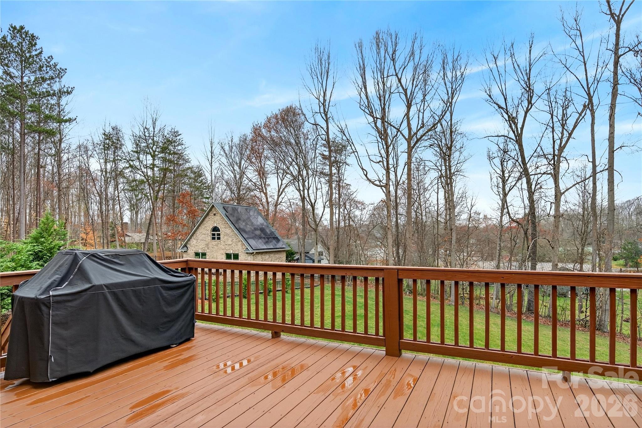 Refined estate in the desirable Winding Forest community, positioned on a private .58-acre homesite surrounded by mature trees and offering seasonal lake views. Built in 2016, this thoughtfully designed residence offers 4BR, 4BA with 3,948 sq ft with a finished walk-out basement, providing exceptional flexibility for living, entertaining and recreation. A welcoming foyer opens to a formal dining room and expansive great room with soaring ceilings, abundant natural light and gas fireplace. The chef’s kitchen features a large island, granite countertops, gas cooktop, generous cabinetry, walk-in pantry and breakfast area overlooking the grounds. The primary suite is conveniently located on the main level and presents a spa-like bath with garden tub, separate shower, dual vanities and walk-in closets. Main level also includes an additional bedroom and full bath. The upper level offers spacious secondary bedrooms, walk-in attic storage and a large bonus room that could easily function as an additional bedroom. The finished walk-out basement includes a rec room, full bath, flex space and potential bedroom ideal for guest quarters, office or fitness area. An elevated deck overlooks the peaceful wooded yard and water view. Three-car side-load garage and extended concrete drive complete this impressive property. Community is pool just up the street for summer fun!