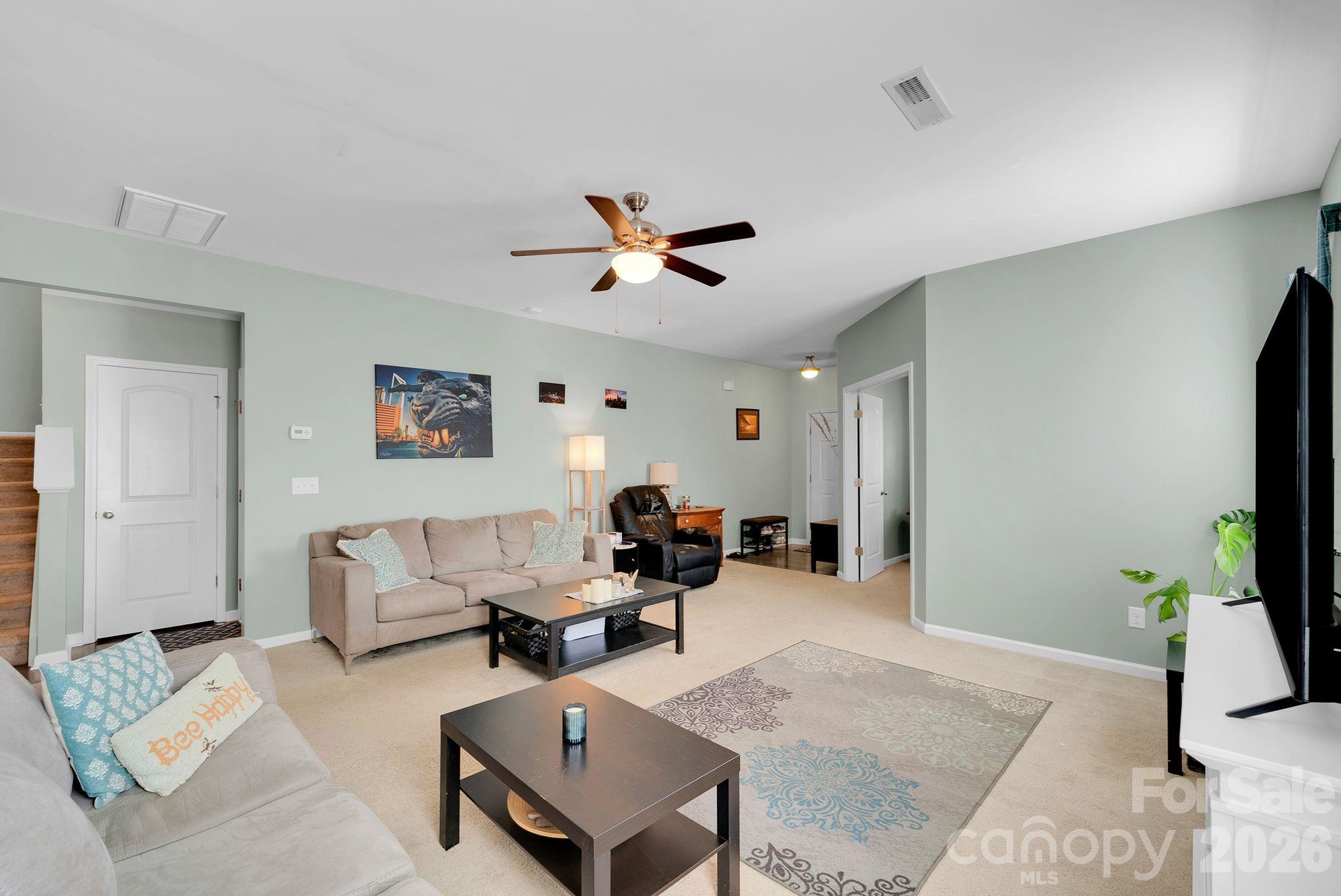 Located in the popular BelleGlade community, this spacious 4-bedroom, 2.5-bath home offers the perfect balance of convenience and peaceful surroundings in Mint Hill. Enjoy the feeling of country living while being just minutes from shopping, dining, everyday amenities and quick access to I-485 for easy commuting around the Charlotte area. Relax on your back patio or side patio area overlooking nature and a private setting. The backyard is partially fenced, with the property line extending beyond the fenced areas. Inside, the main level features a welcoming open floorplan layout with a dedicated office/playroom and living room that opens up to the large kitchen which includes a center island, stainless steel appliances, granite countertops, and ample workspace. A dining area is conveniently located nearby overlooking the tree lined backyard. Upstairs, you’ll find the spacious primary suite, three additional bedrooms, and a laundry room with storage cabinets plus a utility room for added convenience. Driveway allows for extra parking. Beside the home is a sidewalk leading to natural area and wraps around the neighborhood, community has sidewalks and street lights.