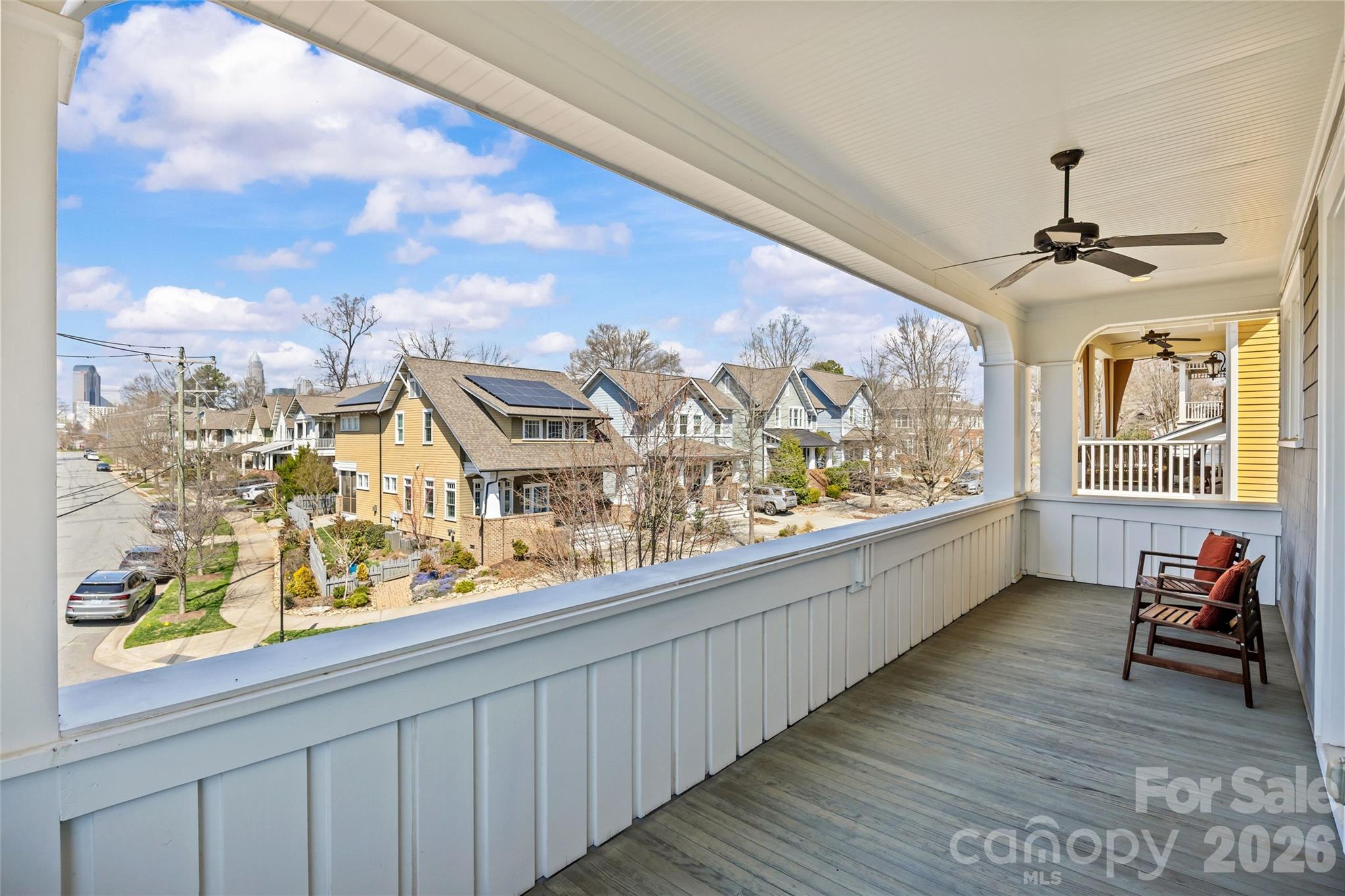 Nestled in the vibrant Cherry neighborhood just blocks from Midtown, this charming Saussy Burbank craftsman bungalow offers the perfect blend of comfort, style, and convenience. Built in 2016, the home sits on an oversized corner lot and is the only residence in the enclave with a detached two-car garage. Offering 4BR/3.5BA and ~3,000 sq/ft, the light-filled interior features an open floorplan with high ceilings, heavy moldings, red oak hardwoods, and plantation shutters throughout. The chef’s kitchen includes custom cabinetry, granite countertops, all stainless steel appliances, center island, and a large walk-in pantry. The living room is anchored by a stone fireplace with built-ins, while a dedicated study adds flexibility. Upstairs, the spacious primary suite features dual walk-in closets and a spa-like bath with heated floors, soaking tub, and zero-entry frameless glass shower. Three secondary bedrooms—each with direct bath access—and a cozy loft complete the upper level. Enjoy exceptional outdoor living from the rocking-chair front porch, second-level covered balcony with incredible skyline views, or screened porch overlooking the patio with beautiful landscaping, mature plantings, and fruit trees. Just minutes to Uptown, Trader Joe’s, Little Sugar Creek Greenway, and more—this move-in ready home truly has it all.