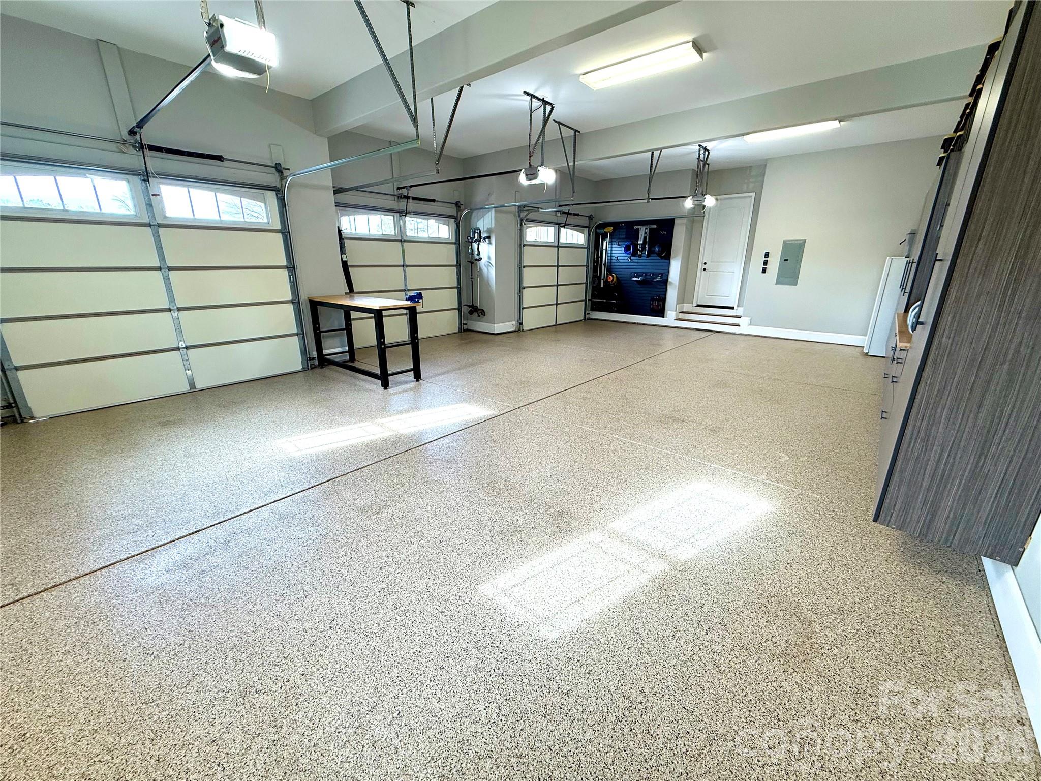 Additional highlights include the custom-finished oversized three-car garage with premium flooring and built-in cabinetry, extra side parking space ideal for boat or RV storage, and an in-ground 500-gallon propane tank serving the home.