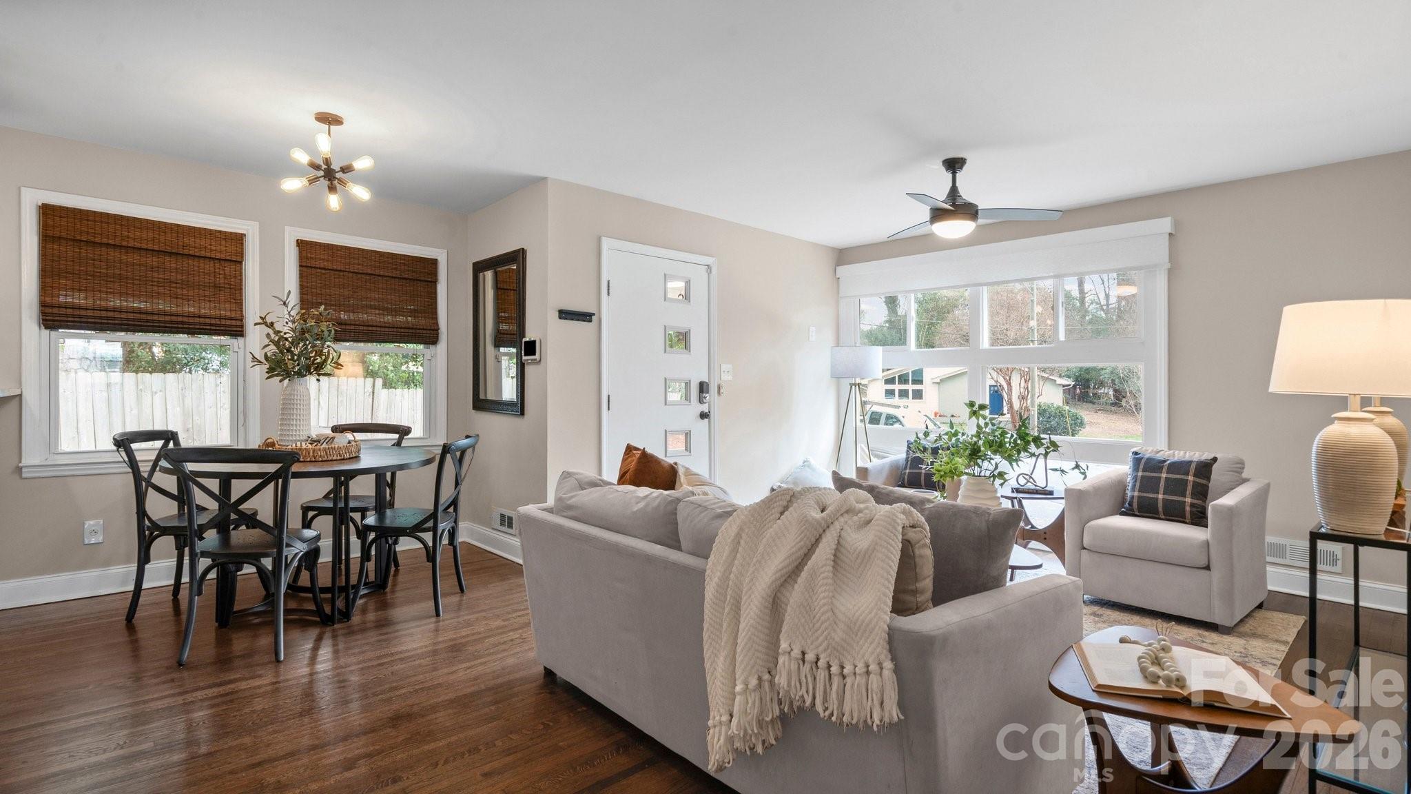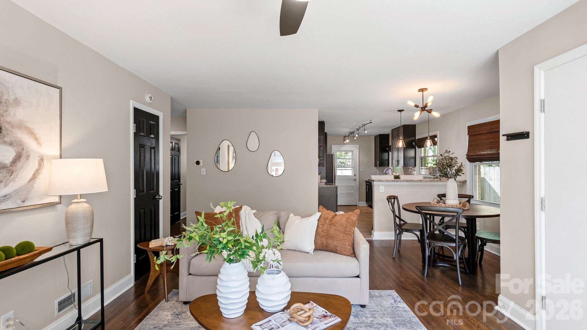 This fully renovated, cozy mid-century modern ranch bungalow in Echo Hills offers the perfect blend of style, comfort, and convenience. Located next to Oakhurst neighborhood and just minutes from Uptown, Plaza Midwood, and South Park areas, this home features an open floor plan and a private, fenced backyard—ideal for quiet enjoyment or entertaining. You’ll be within walking distance of local breweries, Bojangles Coliseum, and Ovens Auditorium.