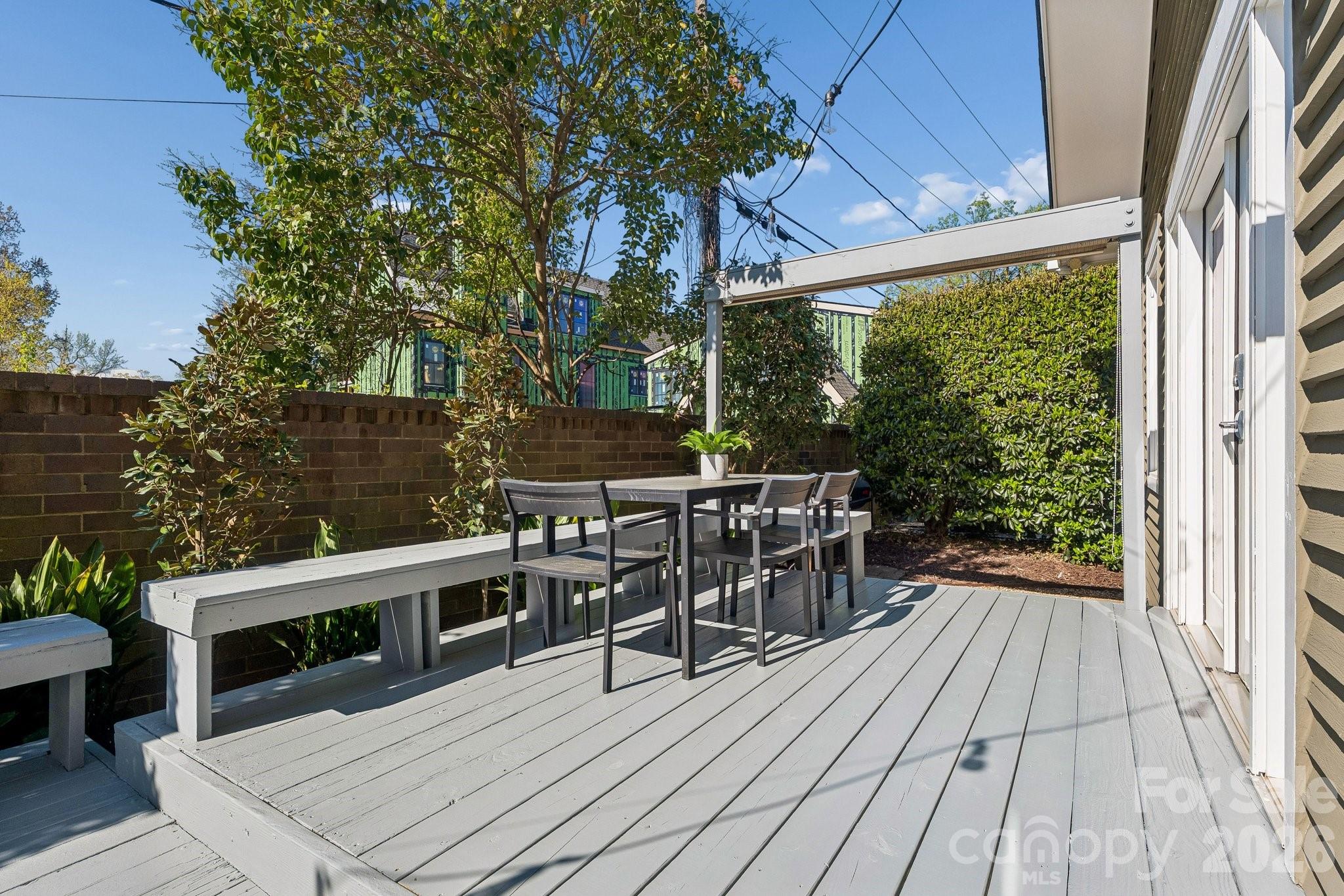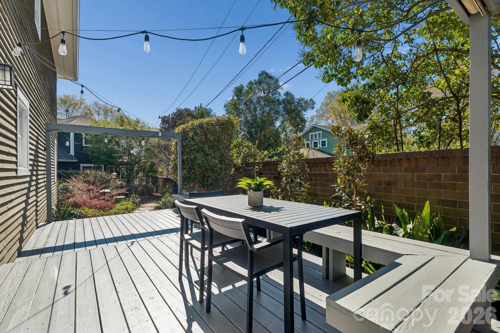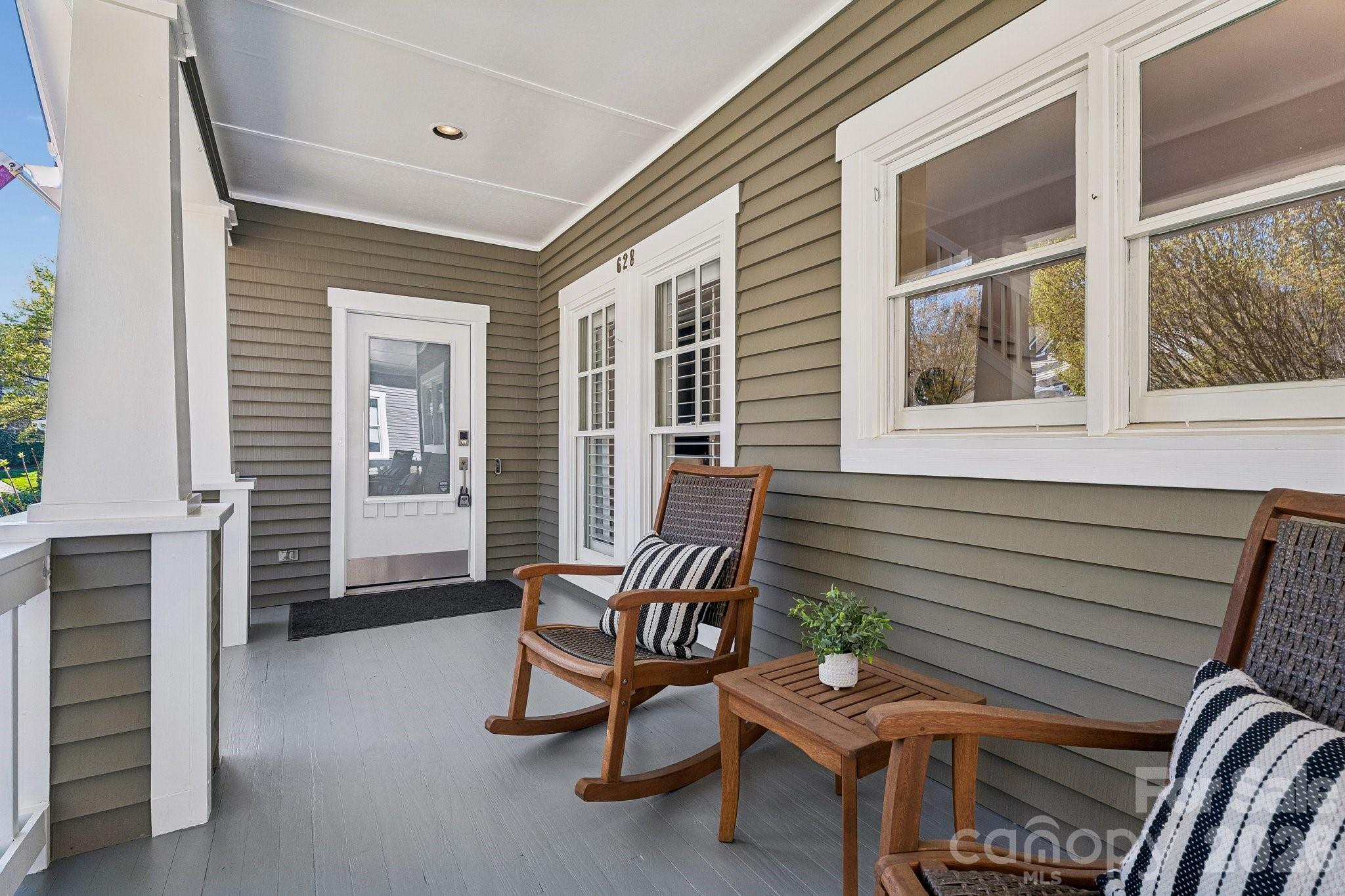 Welcome home to this lovely, renovated Dilworth Bungalow! Great walkability to all of Dilworth, Southend restaurants, shops, parks and light rail to uptown Charlotte. This house is made for entertaining & the manicured yard & rocking chair porch will welcome your friends & neighbors. Inside find soaring 24-foot ceilings in the kitchen and dining areas, gleaming hardwoods on the main and upstairs floor. Plantation Shutters through-out entire home. A fabulous kitchen with Calacatta Marble Island, Beveled Subway Tile Back Splash, a 5-burner gas range with warming oven & wine fridge. The flex room off the kitchen could be a cozy breakfast area or office. You'll love the living area with a custom-made cabinets that flanks the room for the wide screen TV to stream your favorite shows. Large primary suite is on the main level with a granite dual vanity, large tiled shower & walk-in closet with custom shelves. Upstairs 2nd bedroom makes a great office and comes with a built-in Murphy bed when you need it for guest. Nice walk-in attic space off the guest bathroom. Take the entertaining outside with space for both living & dining. Double French Doors to Large Private Rear Deck, Bench Seating, Lush Landscaping side and rear yard with lovely perennials and beautiful walkways. HOA dues include water, sewer and general yard maintenance including mowing, removing leaves, blowing the deck and porches off and mulching the yard. A must see!!