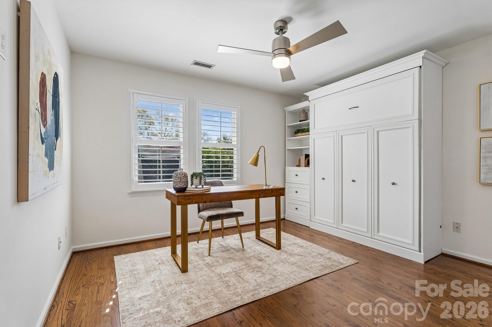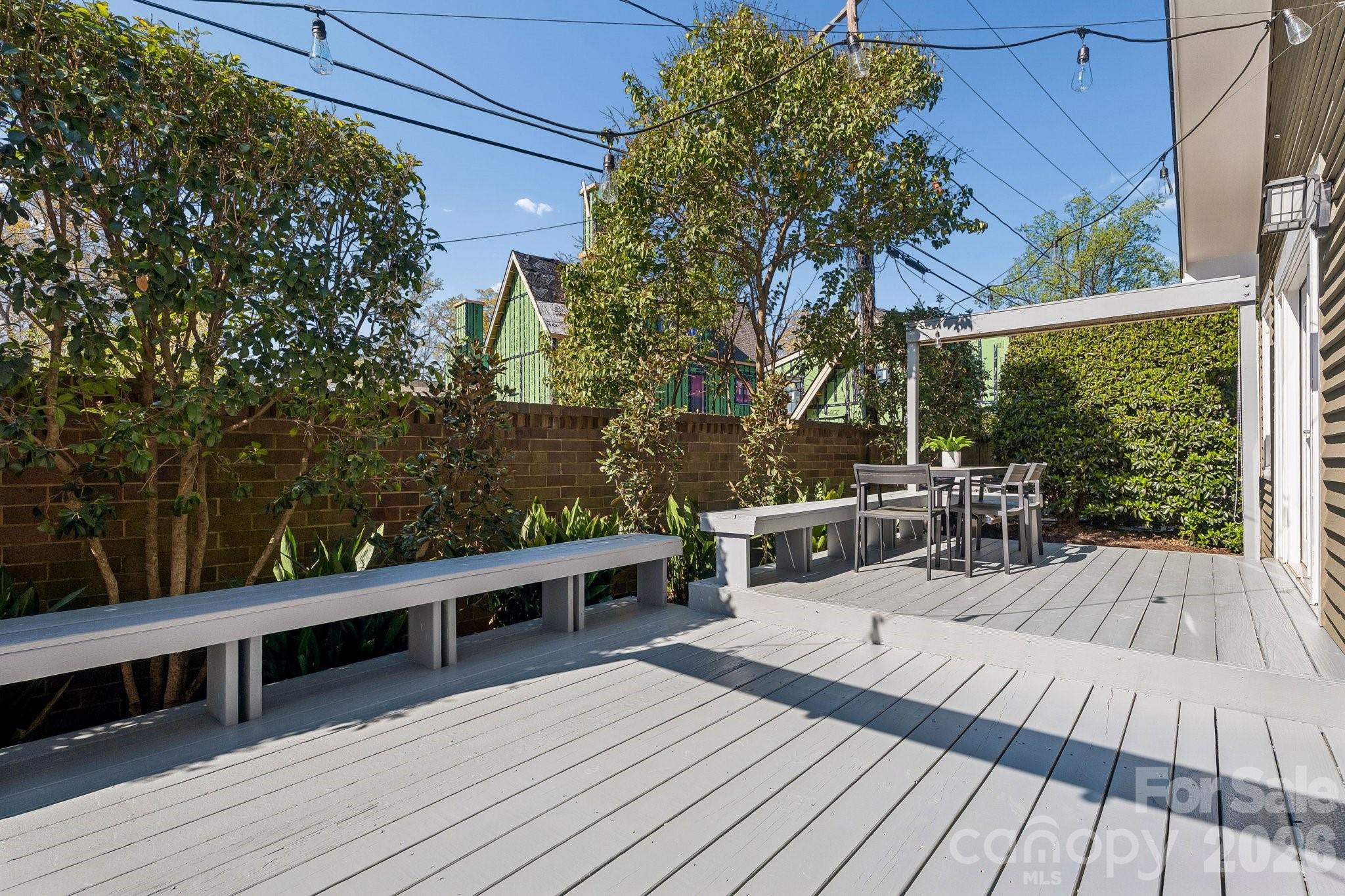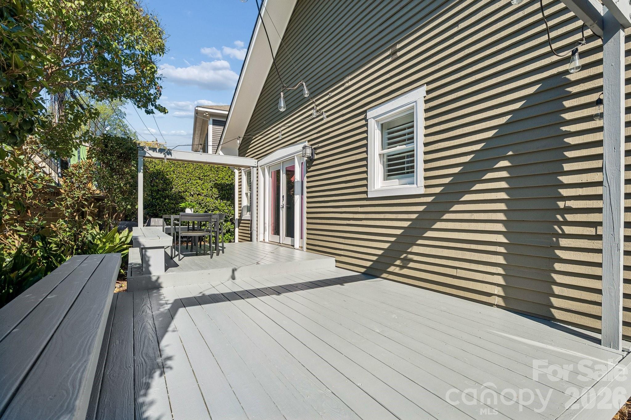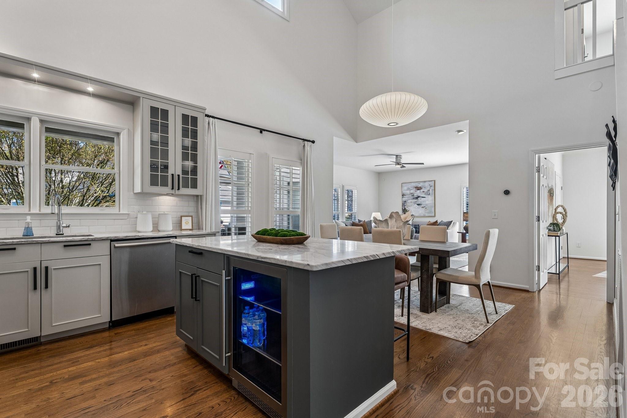 Welcome home to this lovely, renovated Dilworth Bungalow! Great walkability to all of Dilworth, Southend restaurants, shops, parks and light rail to uptown Charlotte. This house is made for entertaining & the manicured yard & rocking chair porch will welcome your friends & neighbors. Inside find soaring 24-foot ceilings in the kitchen and dining areas, gleaming hardwoods on the main and upstairs floor. Plantation Shutters through-out entire home. A fabulous kitchen with Calacatta Marble Island, Beveled Subway Tile Back Splash, a 5-burner gas range with warming oven & wine fridge. The flex room off the kitchen could be a cozy breakfast area or office. You'll love the living area with a custom-made cabinets that flanks the room for the wide screen TV to stream your favorite shows. Large primary suite is on the main level with a granite dual vanity, large tiled shower & walk-in closet with custom shelves. Upstairs 2nd bedroom makes a great office and comes with a built-in Murphy bed when you need it for guest. Nice walk-in attic space off the guest bathroom. Take the entertaining outside with space for both living & dining. Double French Doors to Large Private Rear Deck, Bench Seating, Lush Landscaping side and rear yard with lovely perennials and beautiful walkways. HOA dues include water, sewer and general yard maintenance including mowing, removing leaves, blowing the deck and porches off and mulching the yard. A must see!!