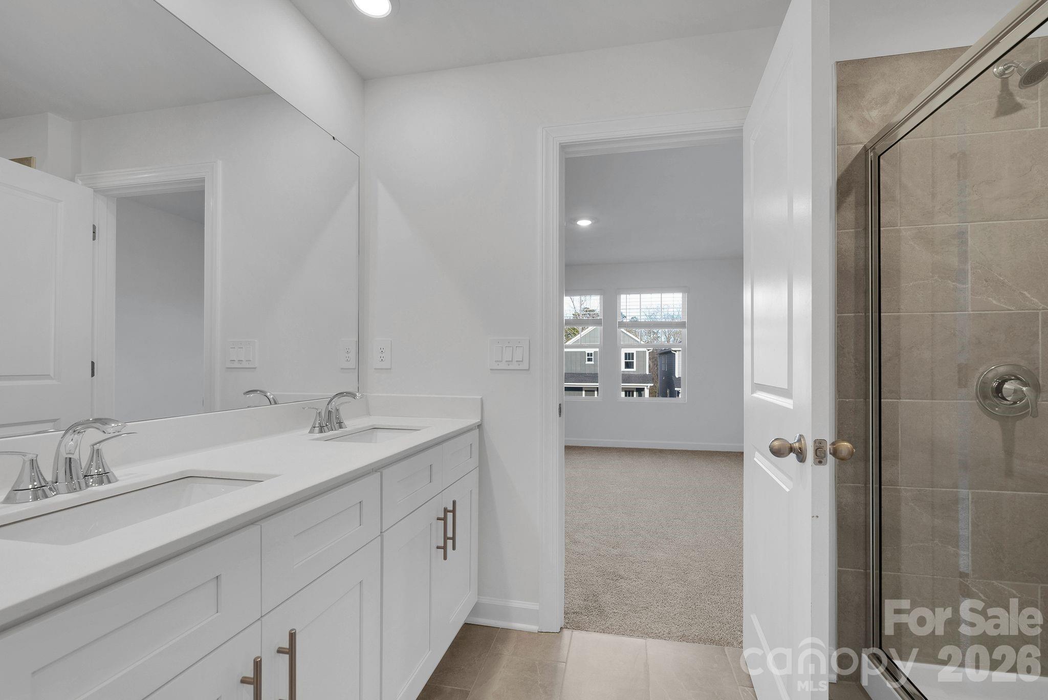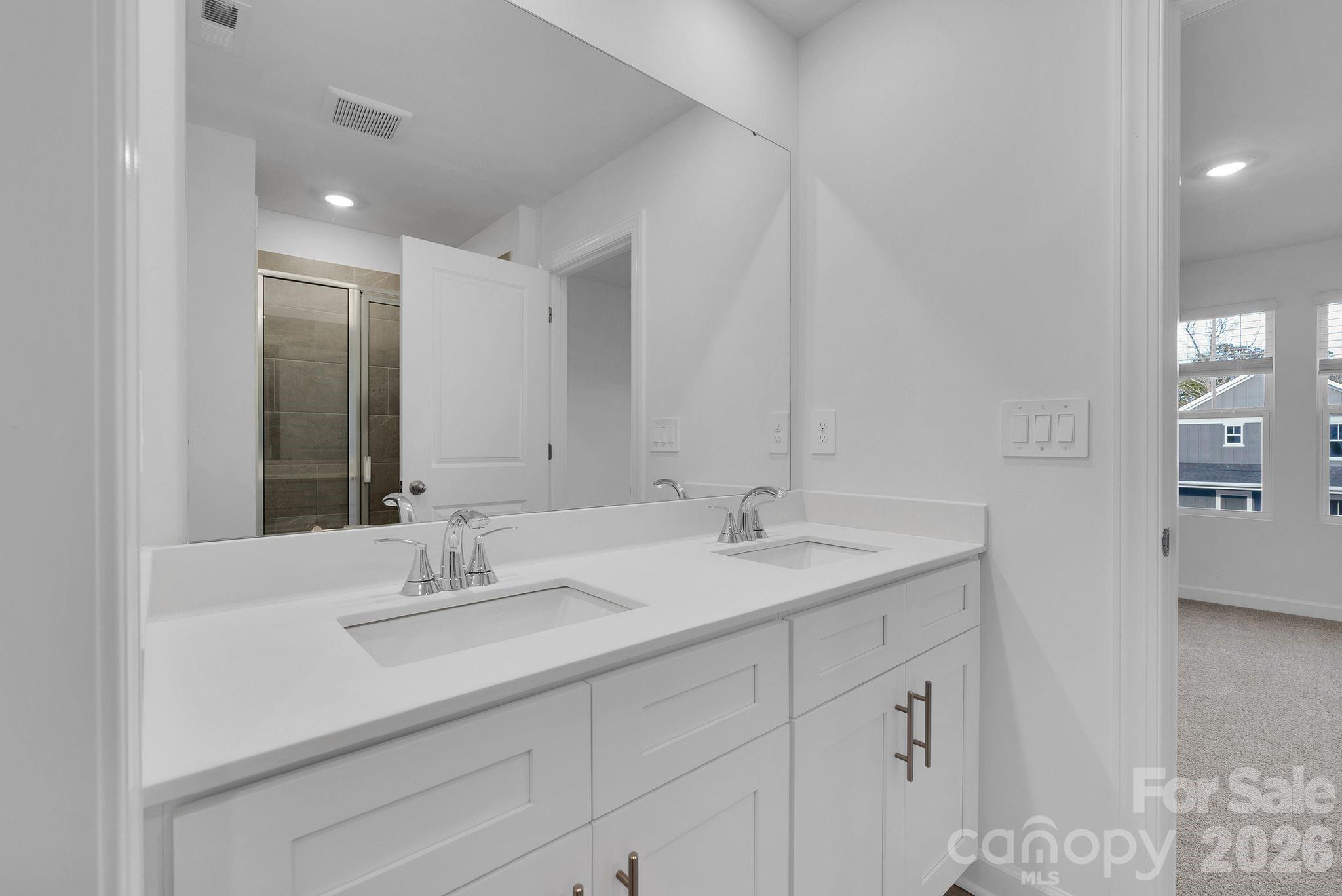 This thoughtfully designed two-story home features with an open-concept main level where the kitchen island overlooks the dining area and great room, creating an ideal space for everyday living and entertaining. The kitchen showcases quartz countertops, modern cabinetry, and stylish finishes throughout. Upstairs, the private primary suite includes dual vanities and a spacious walk-in closet, while a small second-floor flex nook provides the perfect place for a reading chair, desk, or workspace.