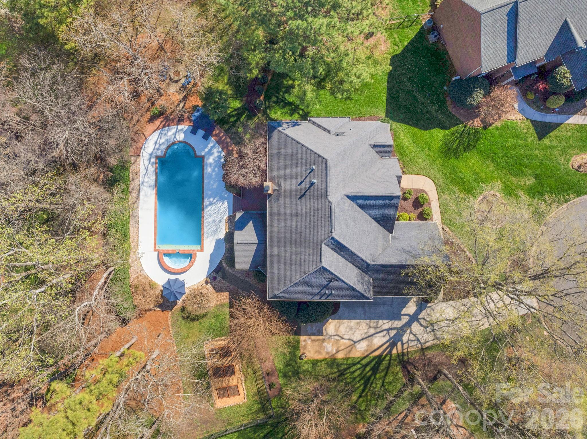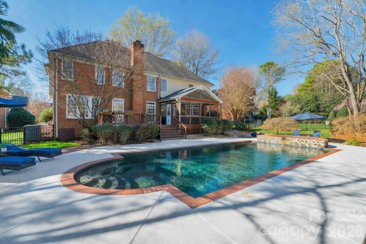 Welcome to 13200 Horsham Court, where everyday living feels like a retreat! Don't miss this beautiful 4 bed, 4 bath home tucked on a charming 0.58-acre cul-de-sac lot, offering exceptional outdoor living, top-rated schools, and an unbeatable South Charlotte location near Providence Country Club and Waverly. Step inside the impressive two-story foyer with gleaming hardwood floors leading to formal dining and living rooms that create an inviting setting for everyday living and special occasions. At the heart of the home, the open-concept family room and kitchen provide seamless flow for gatherings, with plenty of natural light and a cozy fireplace. Designed for effortless entertaining, the home transitions beautifully from indoor to outdoor living. The screened porch and adjoining deck overlook a one-of-a-kind backyard retreat - a private oasis unlike any other with distinct areas for relaxation and enjoyment. Start your morning in the peaceful garden surrounded by mature trees, birdhouses, and Adirondack chairs. Spend afternoons by the sparkling pool and hot tub or unwind in the quiet hammock retreat beneath mature trees. In the evenings, gather around the custom stone firepit with built-in seating - perfect for unwinding or stargazing. Beautiful landscaping frames every view, making the outdoor spaces just as special as the home itself. The luxury owner's suite features a sitting area, spacious bathroom with dual vanities, garden tub, separate shower, closet and adjoining multi-purpose room. Upstairs, generously sized secondary bedrooms and a versatile bonus room offer endless possibilities for a media room, playroom or guests. The first-level office is perfect for a work-from home option or can easily function as a guest bedroom given an adjacent full bathroom. Refinished wood floors, fresh paint, and stylish lighting enhance the bright, updated feel throughout the home. New windows throughout front of home plus 10 additional new windows to be installed 3/24. Full irrigation front and back of home; Fully fenced yard. New Carpeting, New Garage Doors, New Wall Oven. Washer, Dryer, and Refrigerator convey. Easy access to I-485, uptown, shopping, entertainment, and more, this rare combination delivers a beautiful house with extraordinary outdoor living, prime cul-de-sac location in a desirable neighborhood, top-rated schools, and unmatched South Charlotte lifestyle. Don't delay - Schedule a Visit Today!