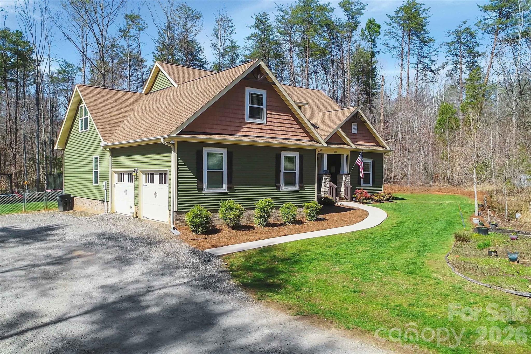 Coming Soon!!! Front porch presence. Fireside comfort. Forever-home feeling. Welcome to 211 Holly Ridge Road—where privacy, character, and everyday comfort come together in a setting that just feels right. From the moment you arrive, the details start telling the story… a big covered front porch anchored by stone veneer columns, a bold red front door, and a homesite surrounded by mostly wooded acreage that gives you space to breathe. This is the kind of place where mornings start slow and evenings linger a little longer. Step inside and you’re immediately drawn to the heart of the home—a warm and inviting living room featuring a stone fireplace, beamed ceiling, and paddle fan overhead, creating a space that feels both elevated and comfortable. The layout flows effortlessly into the kitchen, where bar seating, stainless appliances, and thoughtful design make it perfect for gathering. Function meets flexibility with a dedicated home office, plus an expanded pantry/laundry room complete with a sink—because the little things matter more than people admit. The split-bedroom floorplan offers privacy, while the owner’s suite delivers a true retreat with direct access to the screened-in rear porch, a stand-alone soaking tub, custom tile flooring, and a furniture-style double vanity that brings a touch of luxury to everyday living. And that back porch? It’s the kind of feature that changes how you live—screened, covered, and accessible from both the living room AND the owner’s suite, seamlessly connecting indoor comfort with outdoor peace. Step outside and it only gets better… A big fenced backyard is ready for fun, while the concrete fire pit sitting area sets the stage for nights you won’t want to end. Beyond the yard, private trails lead down to a creek, giving you your own slice of nature right out your back door. Need more space down the road? You’ve got it—an expansive unfinished upstairs area is already in place and ready for whatever comes next. Add in a side-load two-car garage, ceiling fans in every bedroom, quality modular construction, and a fully encapsulated crawlspace for improved efficiency and peace of mind, and you’ve got a home that checks boxes you didn’t even know you had. This isn’t just a great house on a great lot—this is a place where the possibilities are wide open, and the lifestyle is already waiting. Because at the end of the day, “home isn’t where you live… it’s where life feels right.”