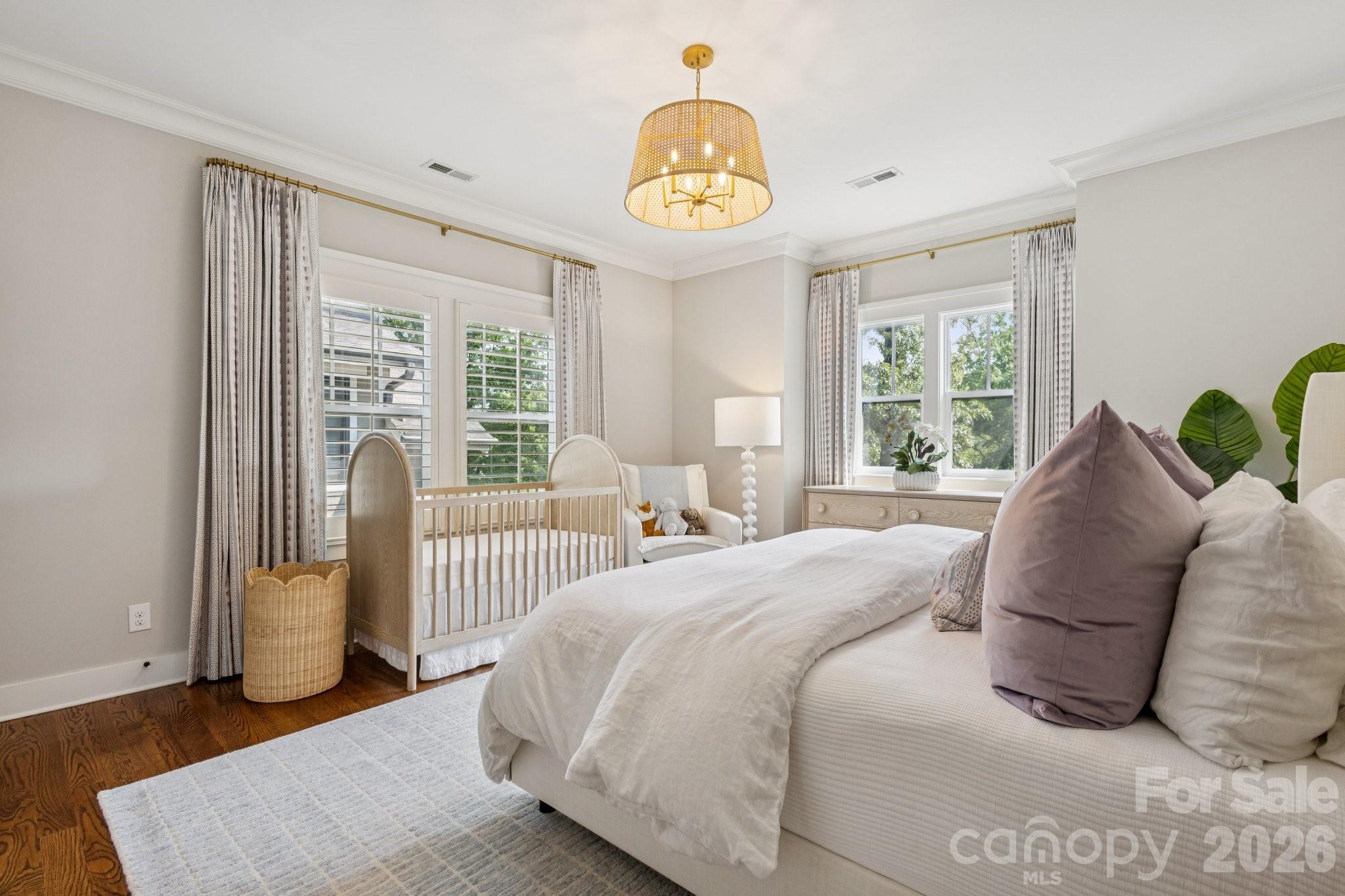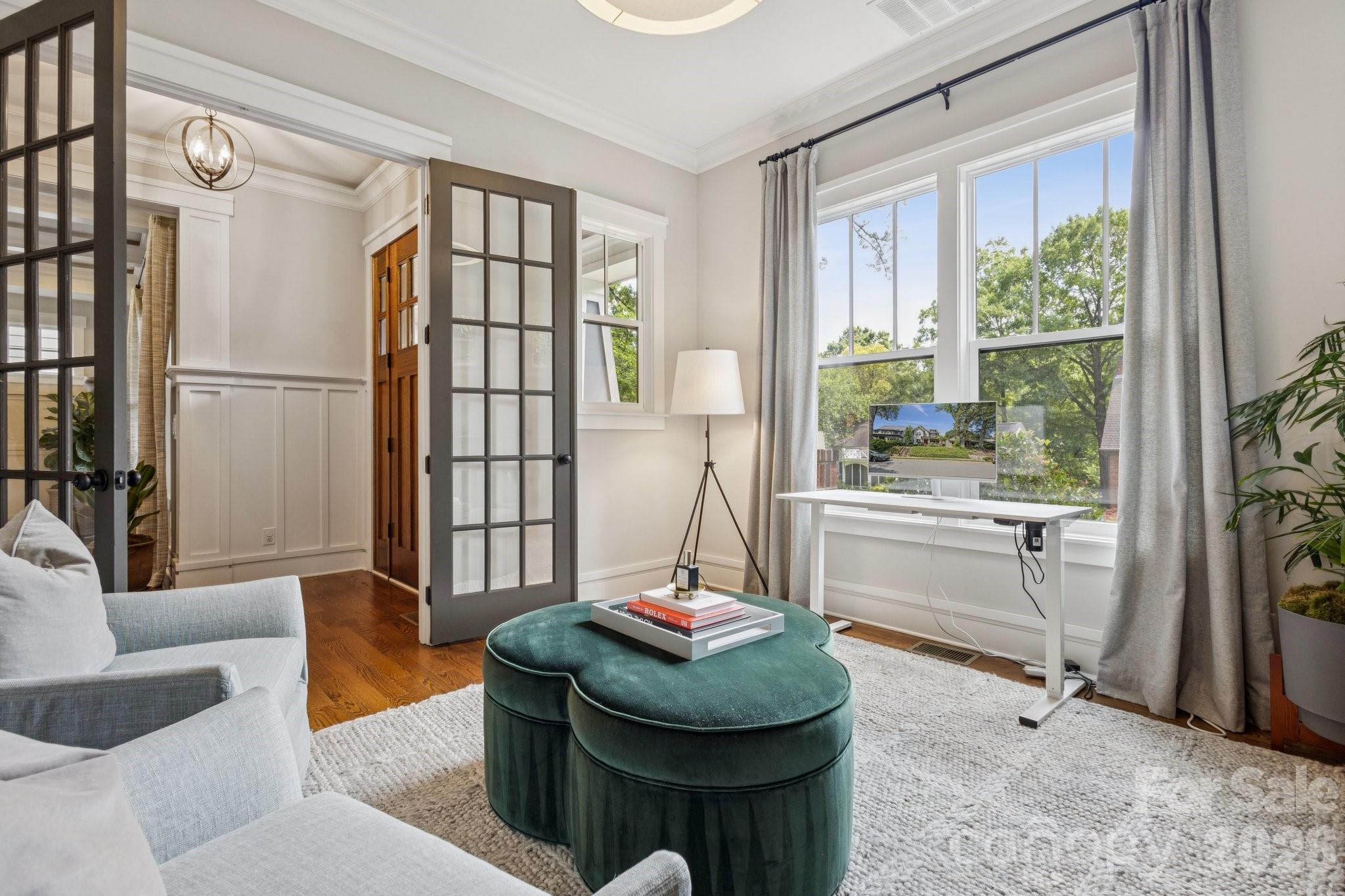 This custom-built Craftsman-style residence has 5 bedrooms and 4 baths. It is Located in the heart of Elizabeth, one of Charlotte’s most walkable and historic neighborhoods. Known for tree-lined streets, character homes, and close proximity to Uptown Charlotte. Just minutes from dining, shopping, parks, Greenway trails, Midtown, Plaza Midwood, Atrium Health and Carolinas Medical Center. The home includes two primary suites, one on the main level and one upstairs, along with spacious secondary bedrooms with walk-in closets. The layout provides flexible living with guest accommodations, office options, and multiple indoor and outdoor gathering areas. Inside, refined craftsmanship includes ten-foot ceilings, oak hardwood floors, designer lighting, and custom cabinetry throughout. Natural light fills the living spaces through well-placed windows and French doors. The foyer opens into a spacious great room with a fireplace, built-in cabinets, coffered ceilings, and detailed woodwork. French doors provide access to the front porch and create a strong connection between indoor and outdoor living.Near the foyer is a private office or guest bedroom with access to a full bath and powder room. The chef’s kitchen features KitchenAid range, retractable blinds, marble countertops, custom cabinetry, beverage refrigerator, and an oversized center island. The kitchen flows into the dining and living areas, creating an open layout ideal for everyday living and entertaining.