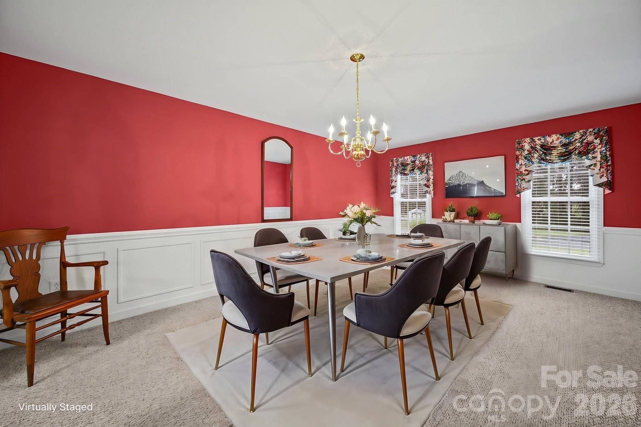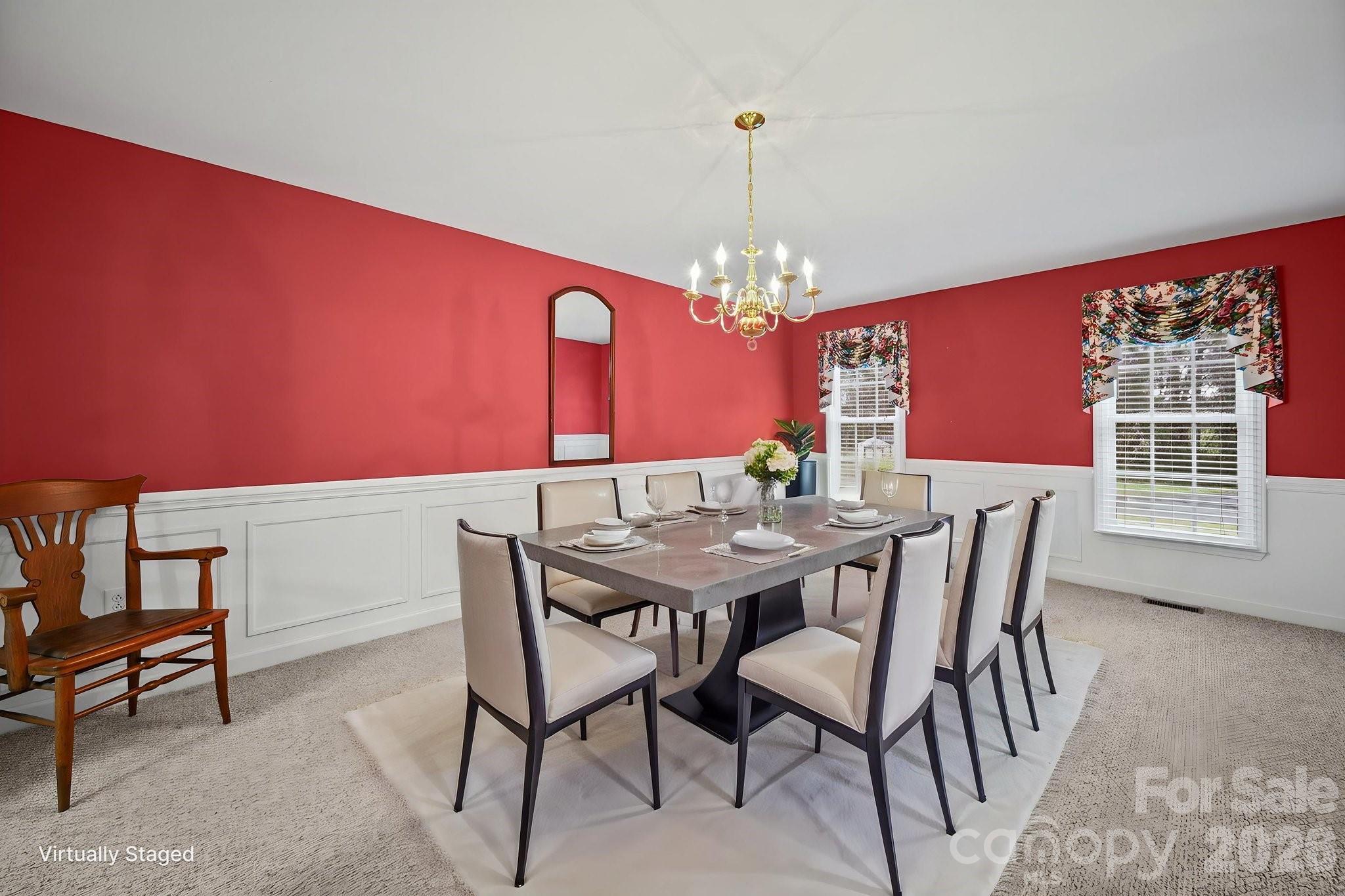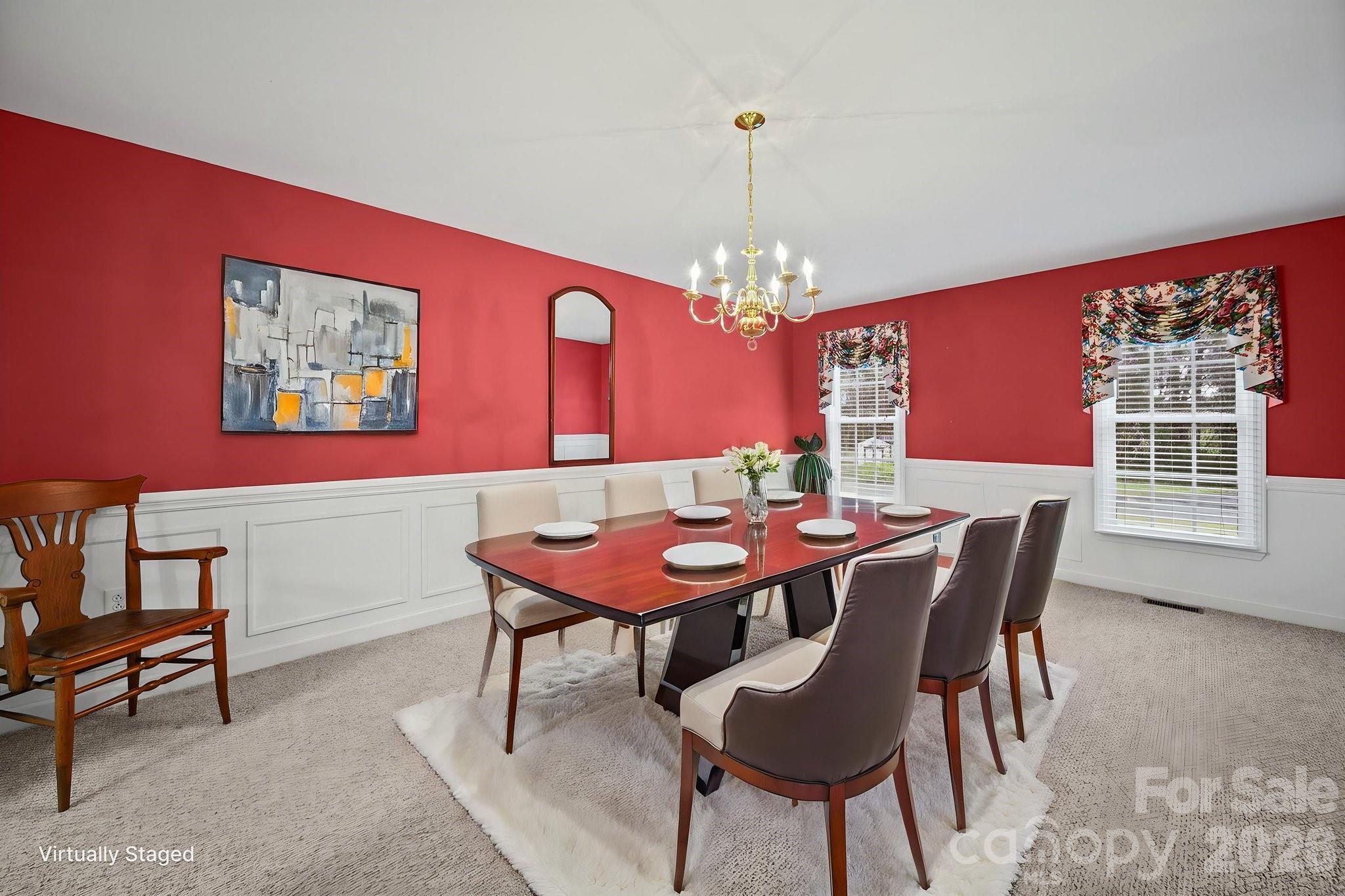 The kitchen flows seamlessly into a bright breakfast nook, while a dedicated dining room sets