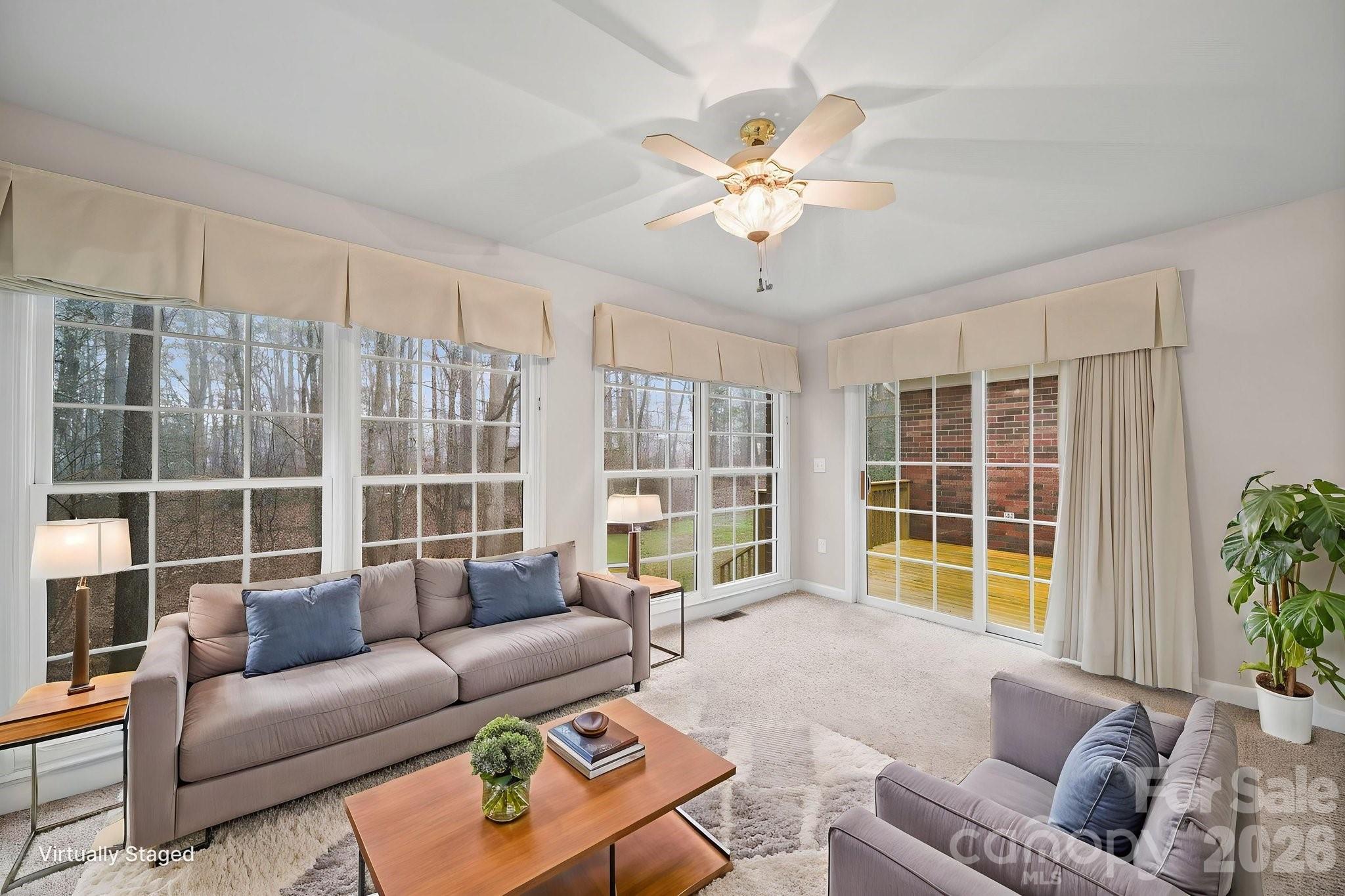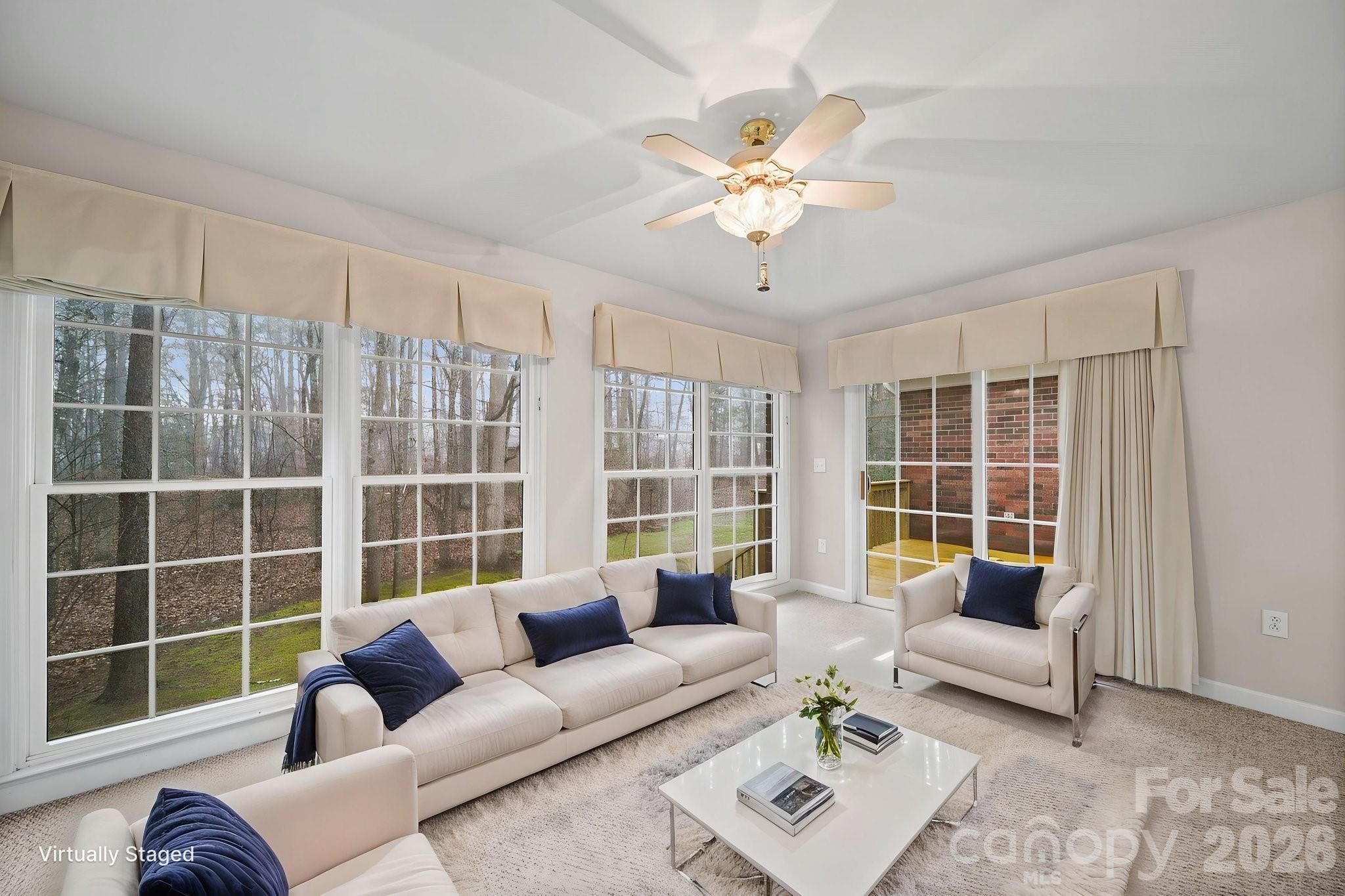 the stage for more formal moments. A sunroom filled with natural light invites you to slow down