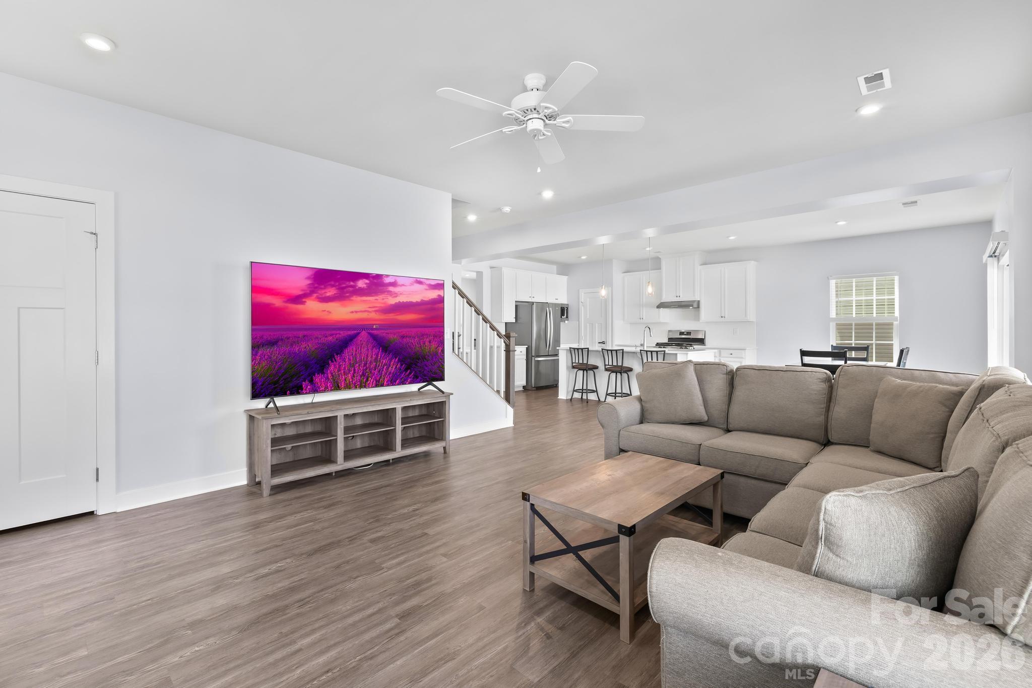 Inside, low-maintenance luxury vinyl plank flooring runs throughout the main level, bathrooms, and laundry room. Just off the entry, a versatile flex room can easily serve as a home office, den, playroom, or additional living space to suit your needs.
