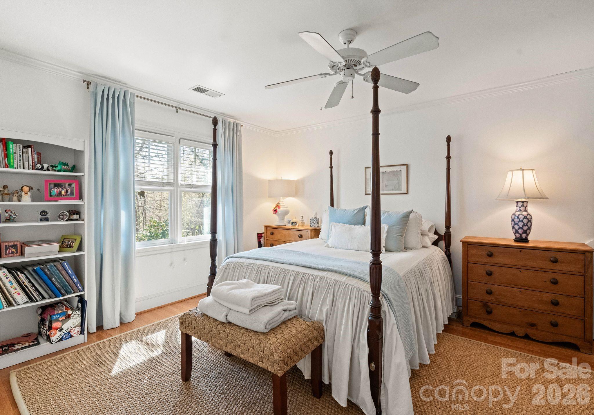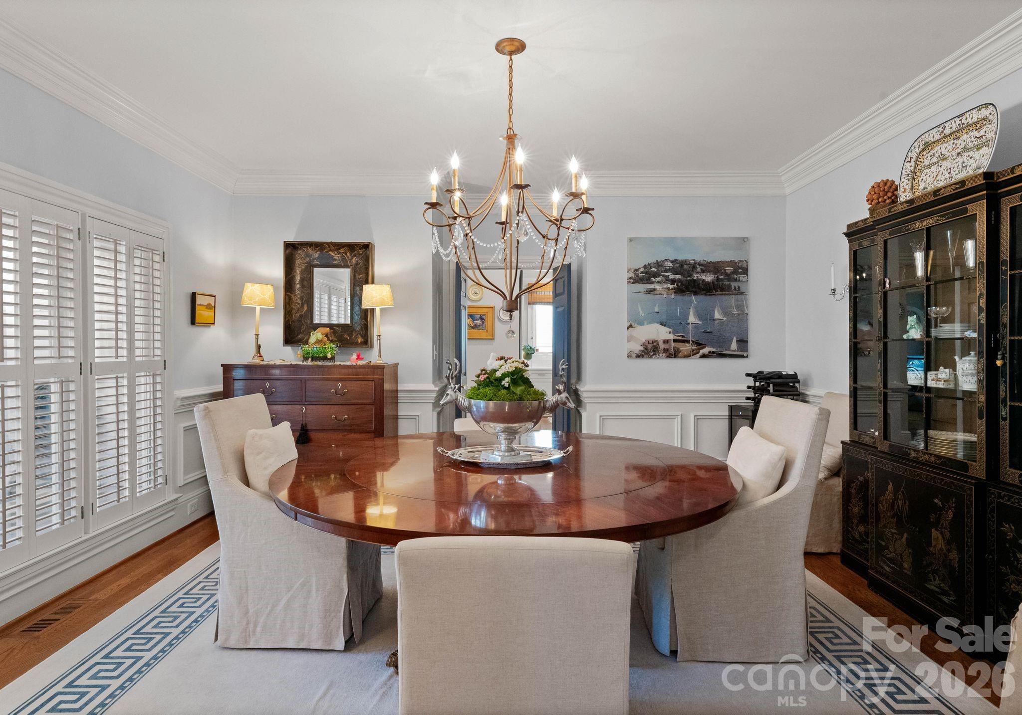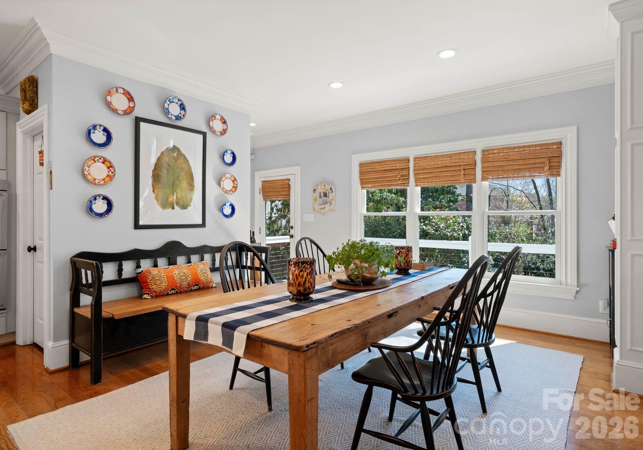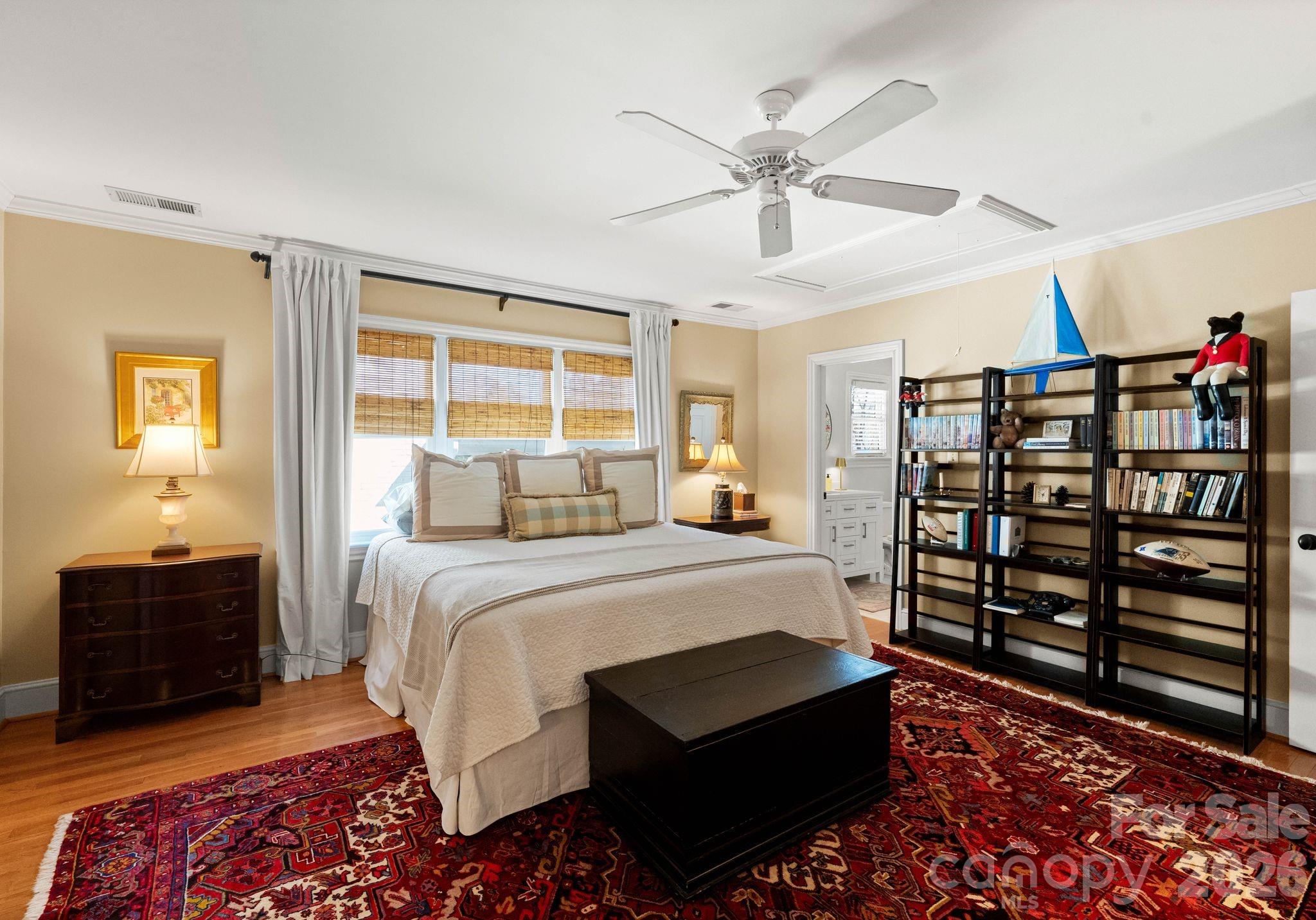 Welcome to this classic traditional home filled with natural light, charm, and style. A welcoming foyer off the covered front porch is flanked by formal living and dining rooms, leading into a stunning two-story great room with fireplace and built-ins that seamlessly opens to the updated kitchen with high end appliances, large island, wet bar walk in pantry and breakfast area. The main-level primary suite features dual walk-in closets and a spacious, updated bath. A convenient laundry room with sink is located just off the attached garage. Enjoy year-round living on the inviting screened porch with oversized shutters, which opens to a wooden deck overlooking a beautifully manicured, private, fenced backyard. Upstairs, two staircases lead to four additional bedrooms, two full baths, an oversized yet cozy bonus room, and a versatile rec space perfect for a home gym or playroom. Ideally located in a sought-after neighborhood close to SouthPark, shopping, dining, and top-rated schools.