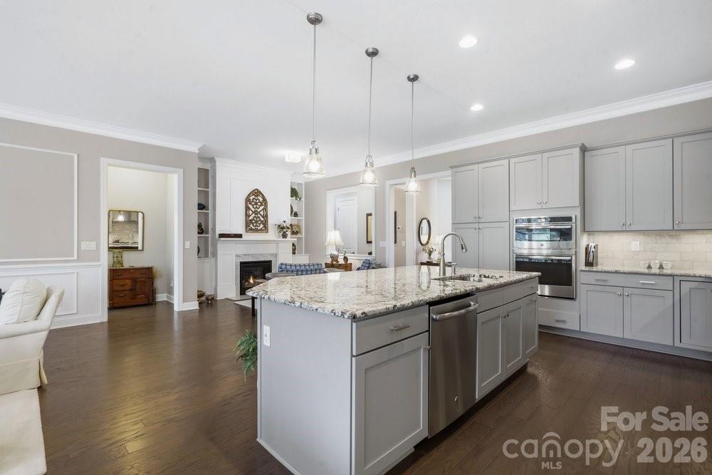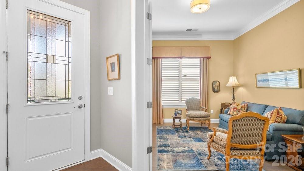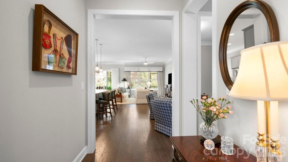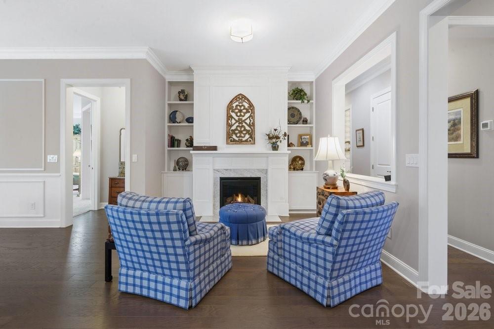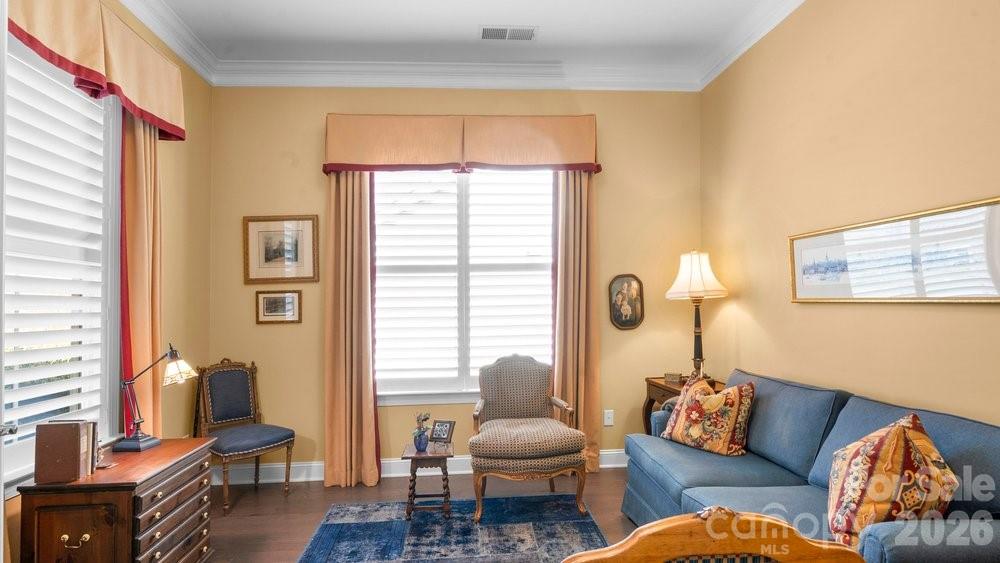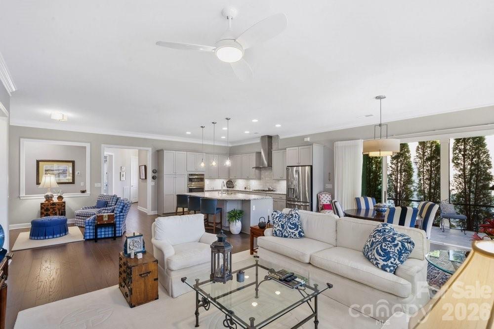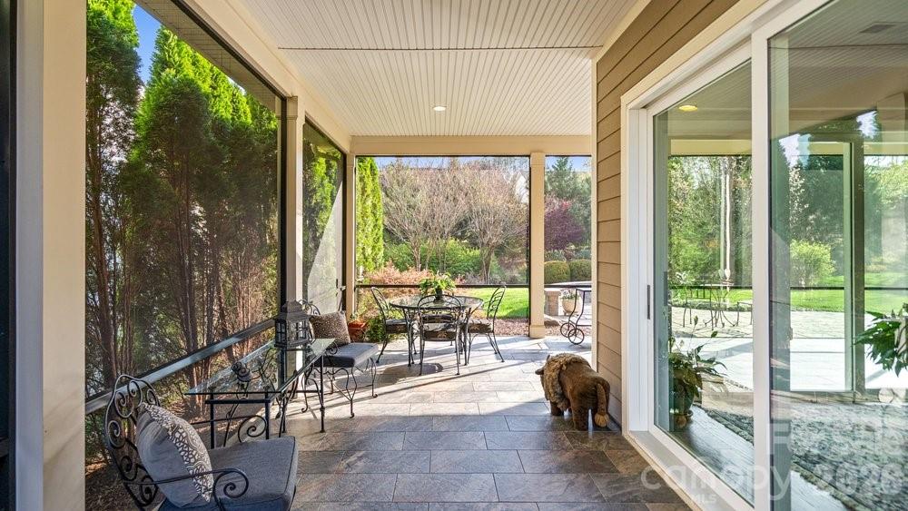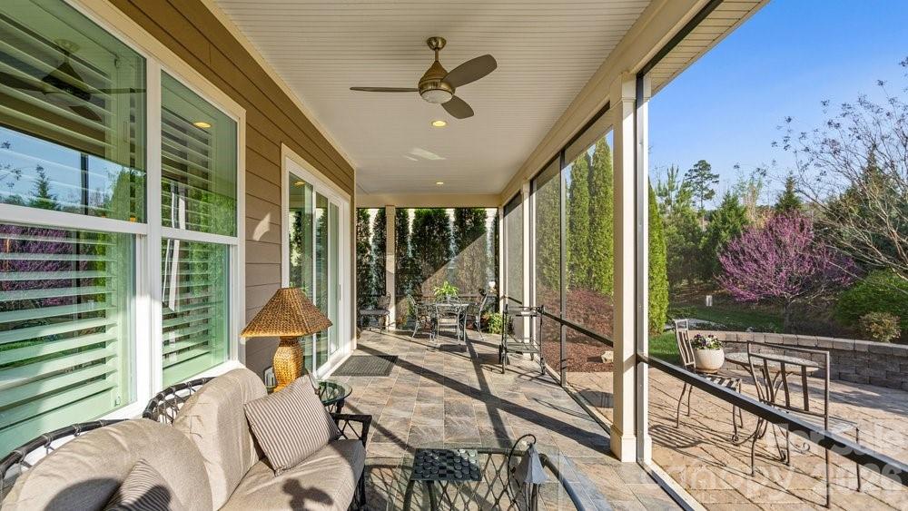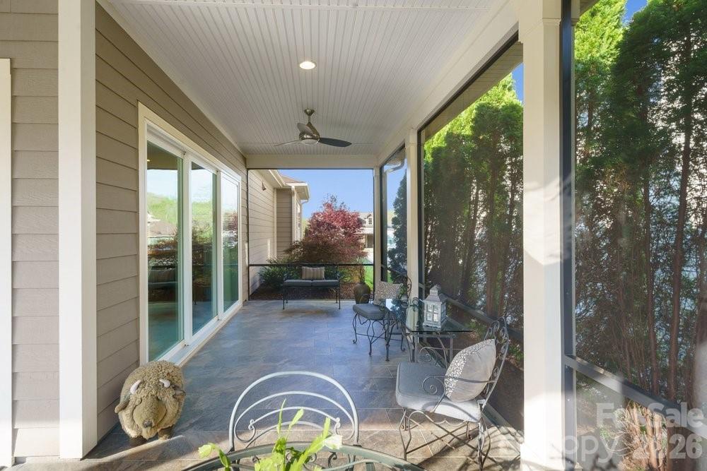 On an oversized premium cul de sac lot, within walking distance to the Twin Mills Club, this Captivate plan has been exceptionally landscaped for privacy and solitude. Relax on the tiled front entry and watch the sun set with your favorite beverage. Light and bright multi use interior includes an office/flex space with privacy doors that could easily be a third bedroom. Great room offers many seating/entertaining options, gas log fireplace flanked with built in custom bookshelves and dual walls of sliding glass flowing on to the screened tiled wrap around lanai and extended paver patio expanding in and outdoor entertaining areas. Kitchen features GE Profile appliances, 5 burner gas cook top and wall oven, refrigerator, light colored custom kitchen cabinetry, tile backsplash plus a large island w/storage on both sides. Custom lighting and walk in pantry, wood flooring, 10' ceilings, 8' doors plus crown molding throughout. Spacious primary BR suite with bump out bay window, large walk-in custom closet, dual vanities & tiled walk-in shower. Plantation shutters throughout. Smart space/laundry includes washing machine/dryer, wash sink & cabinets with desk work area for added storage. 2-car garage with 4 foot extension features a work bench. Great opportunity to be in this highly desirable and welcoming resort style living community that includes the Freedom Boat Club on Lake Norman plus award winning amenities
