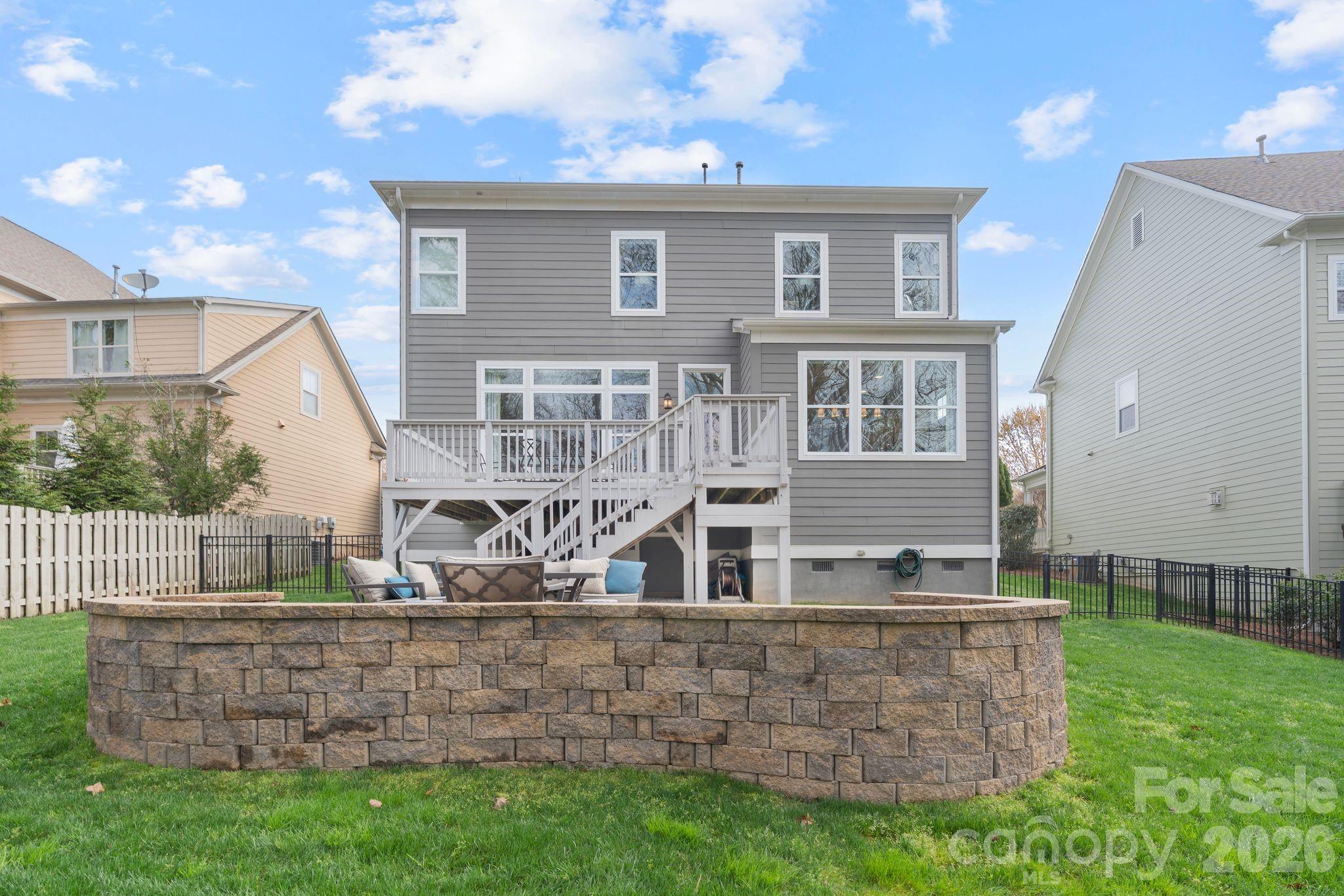 Outdoor living is just as inviting with a spacious deck, patio area, and fire pit overlooking a private backyard with serene nature views.