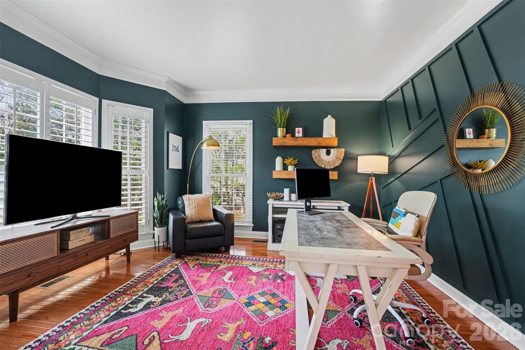 Dual staircases lead to the upper level, where you’ll find a spacious primary suite with a tray ceiling and two sizable walk in closets. Three additional bedrooms and a large bonus room offer plenty of flexibility for work, play, or relaxation. Recent updates include the screened in porch, quartz countertops in the kitchen and all baths, updated lighting, and a professionally designed office featuring a unique accent wall.